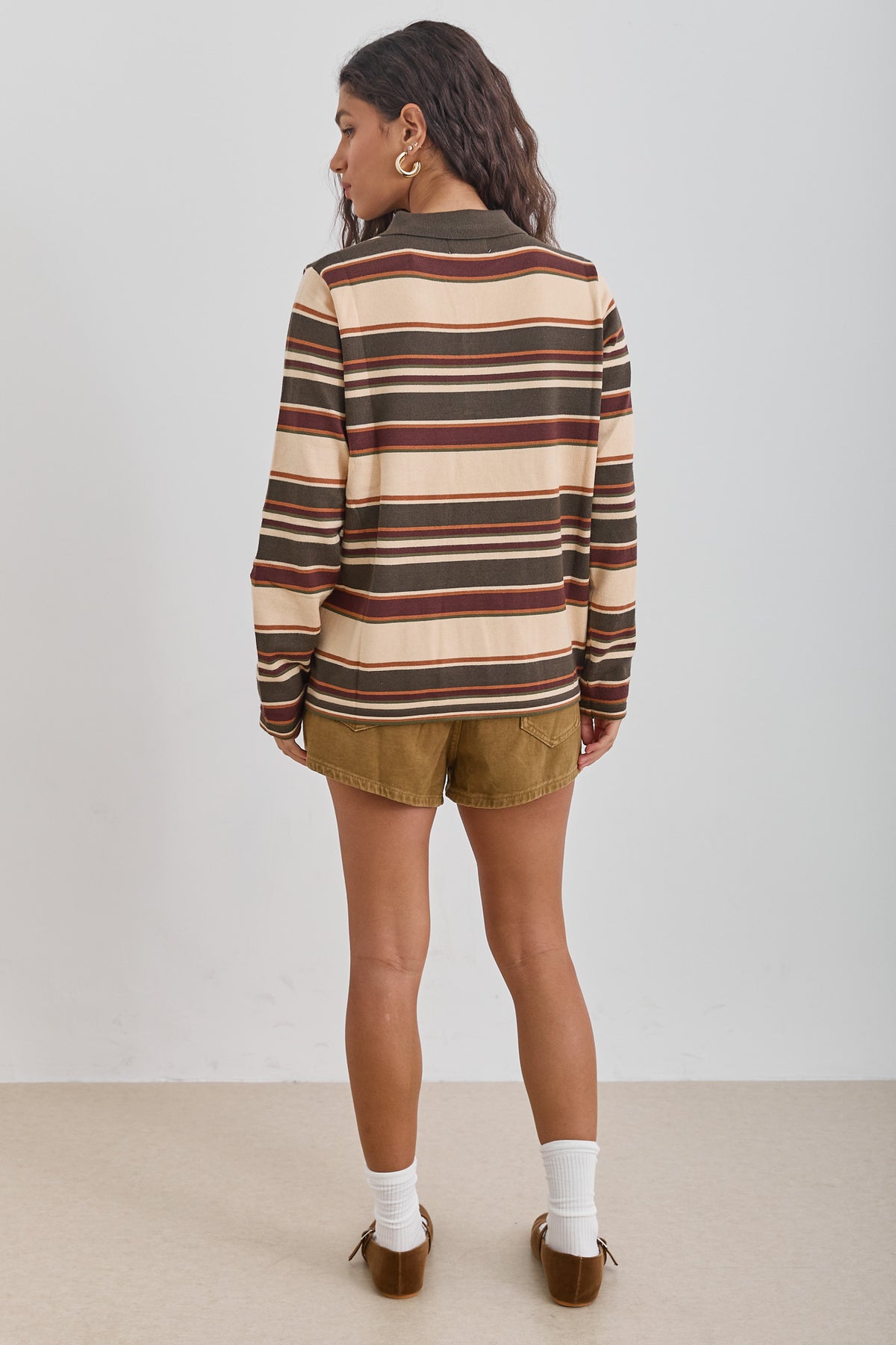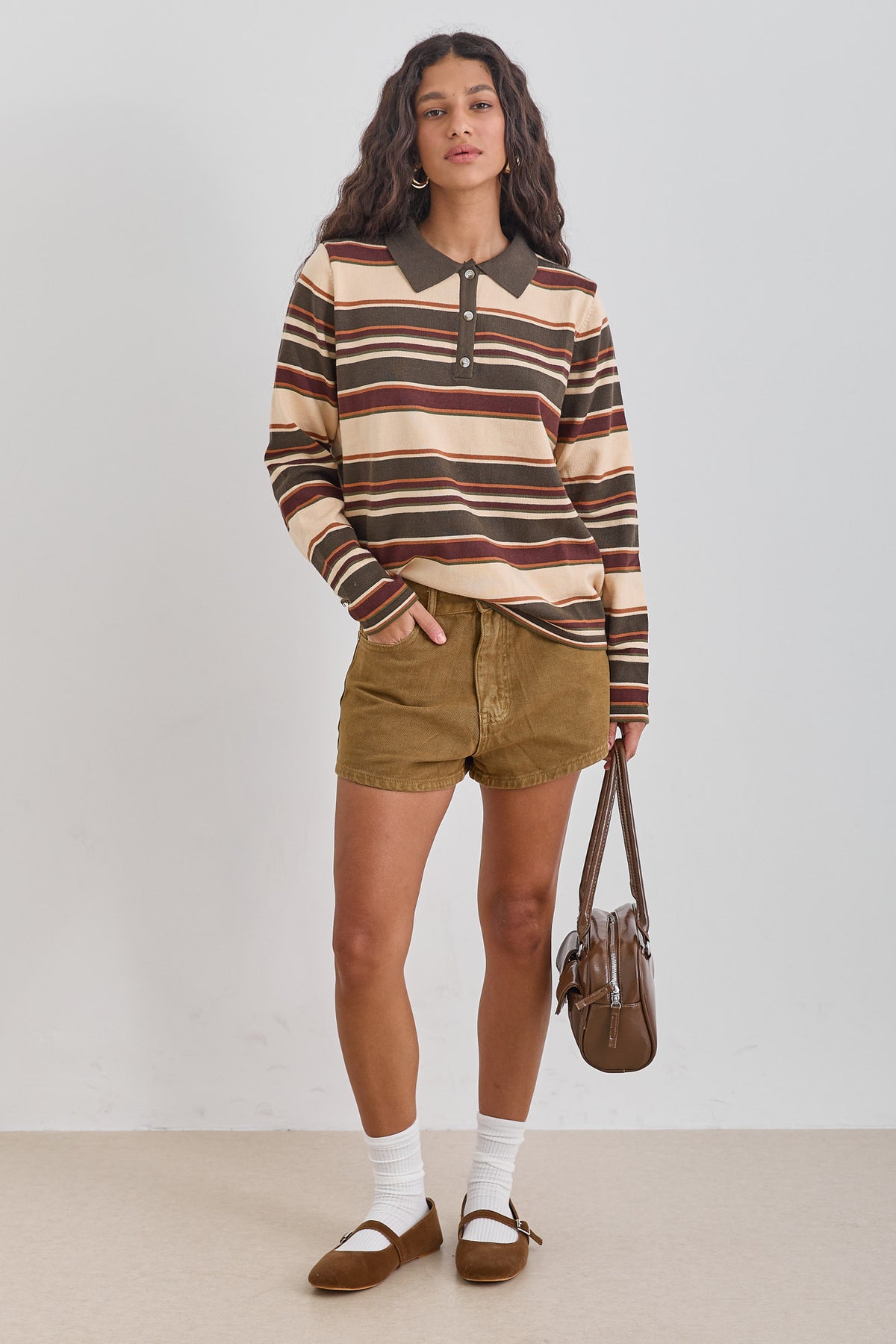סריג צ'לסי סטרייפס צווארון פולו | בז'/ירוק זית
