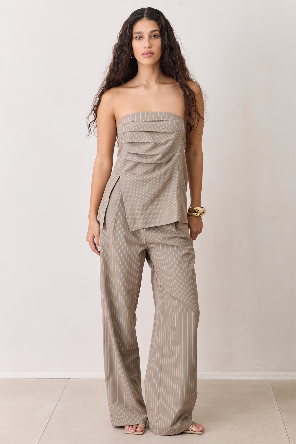 מכנסיים מחויטים בגזרה מתרחבת עם קפלים ודוגמת פסים