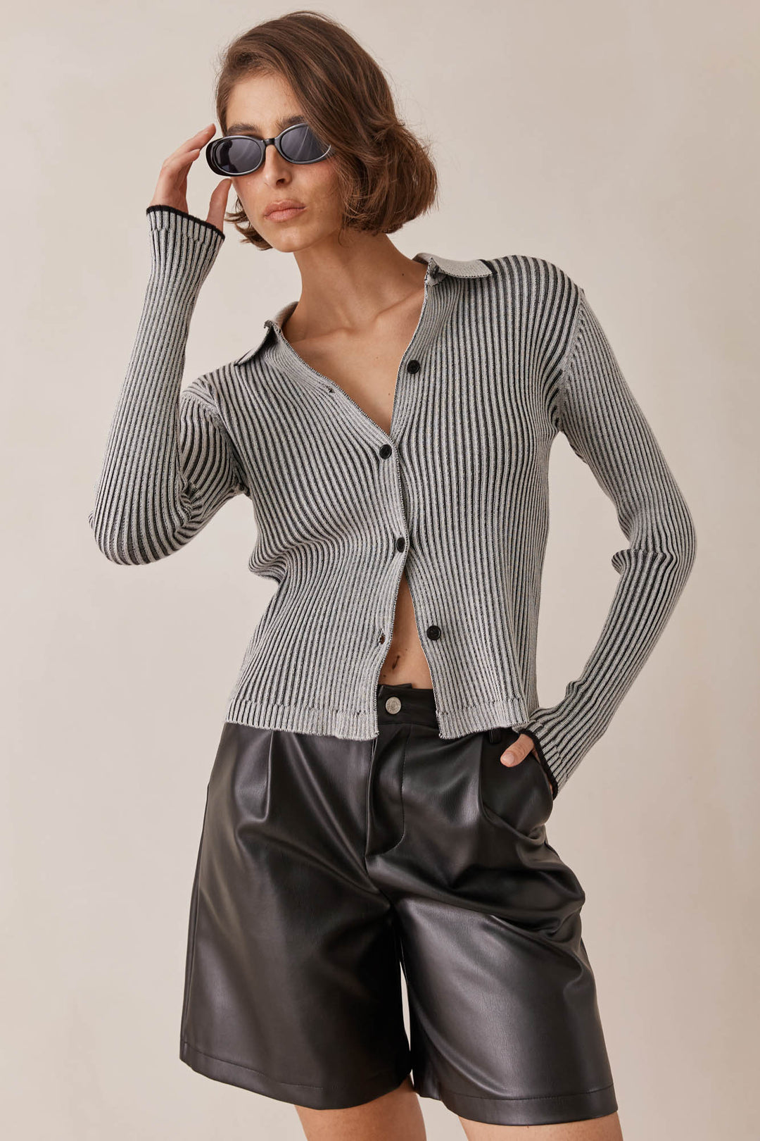 קרדיגן ריב דיאנה בשילוב צווארון | אפור
