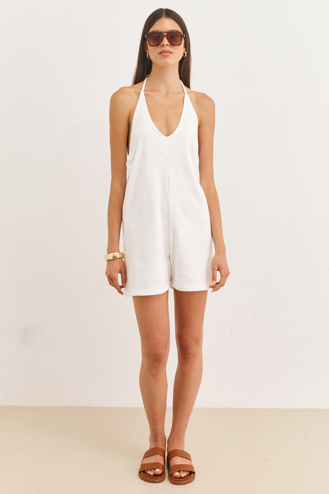 אוברול קשירה פלורנס מחשוף גב | לבן