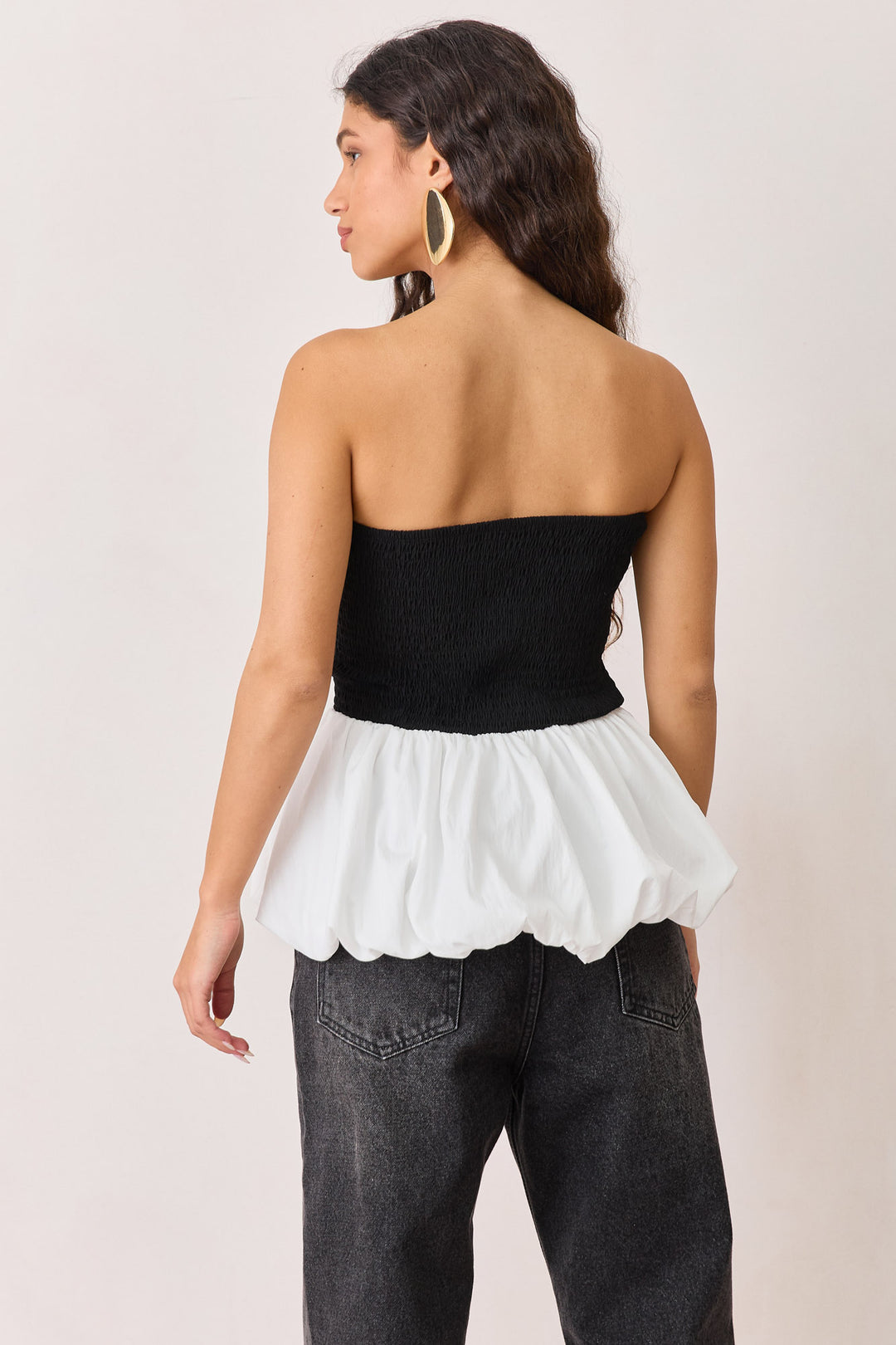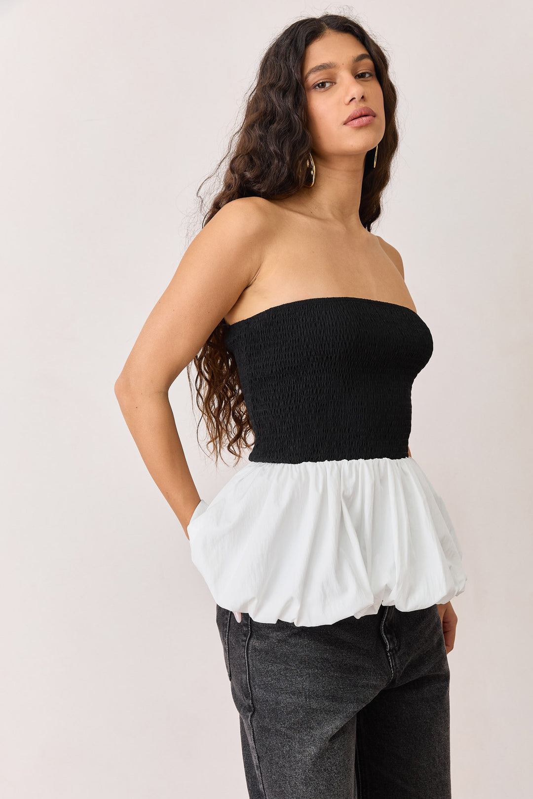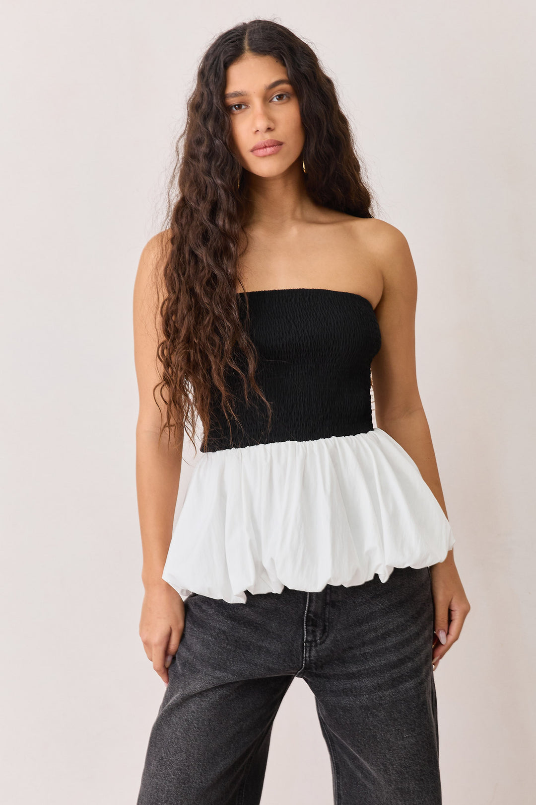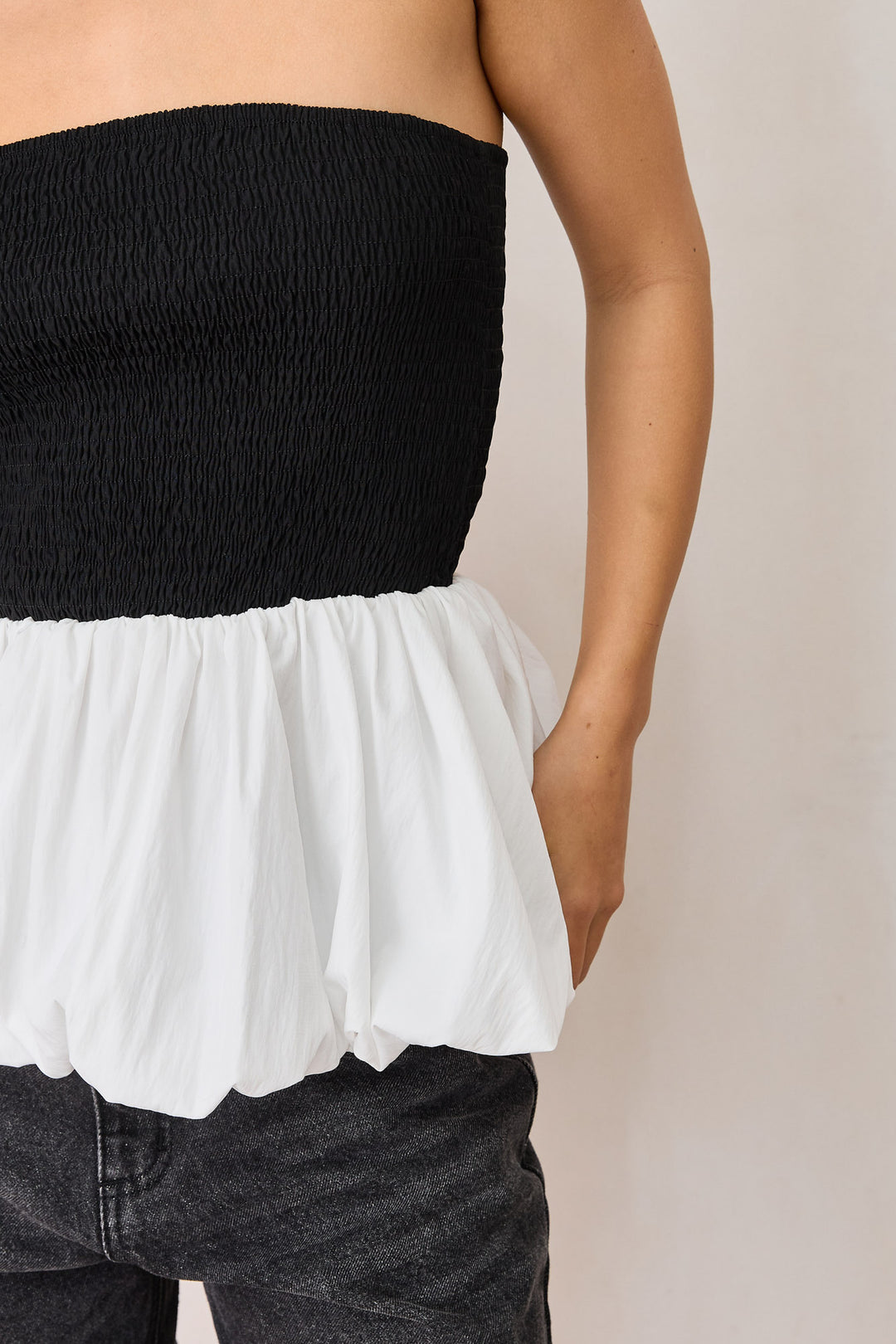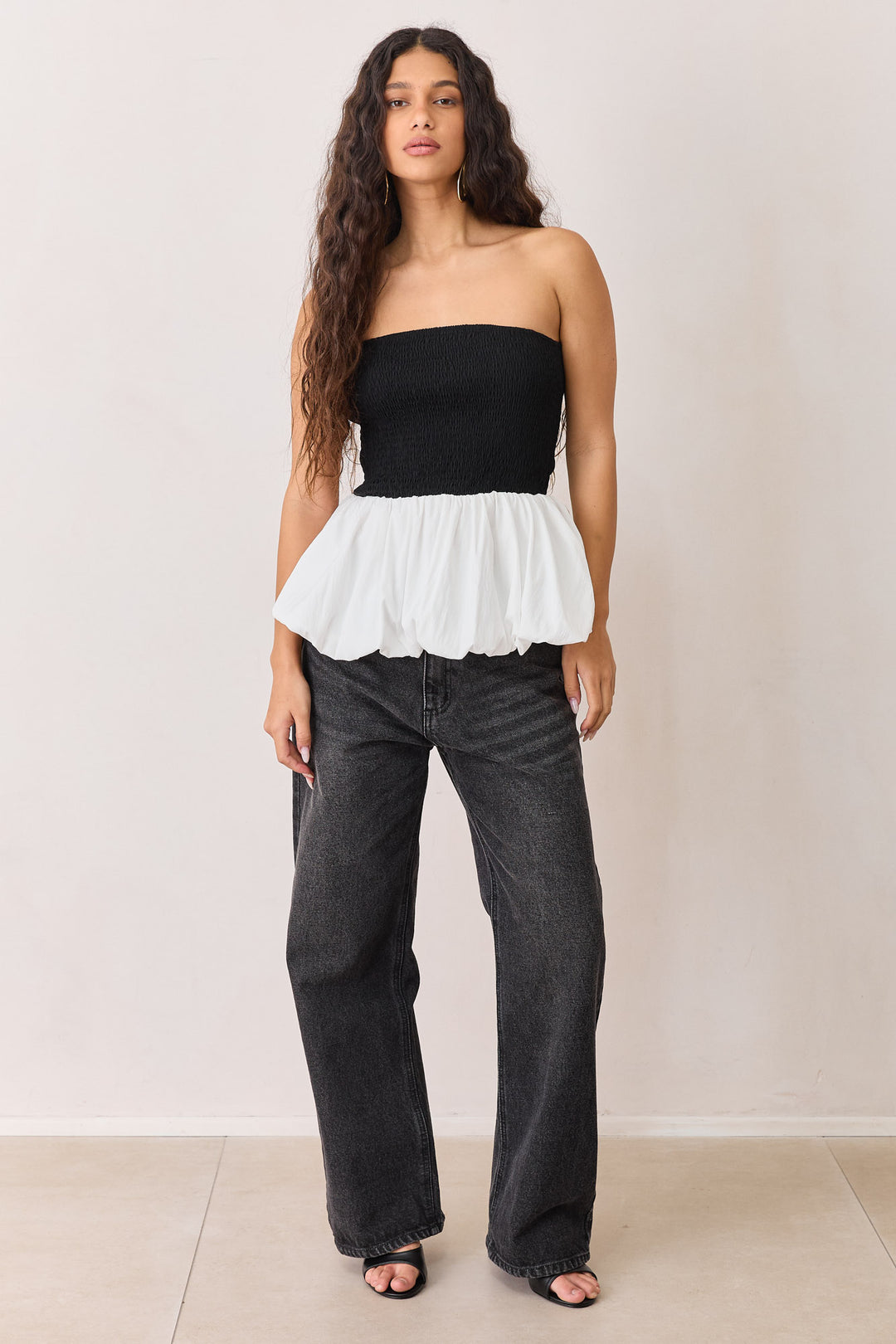 סטרפלס ג'וליה עם פפלום | שחור/לבן
