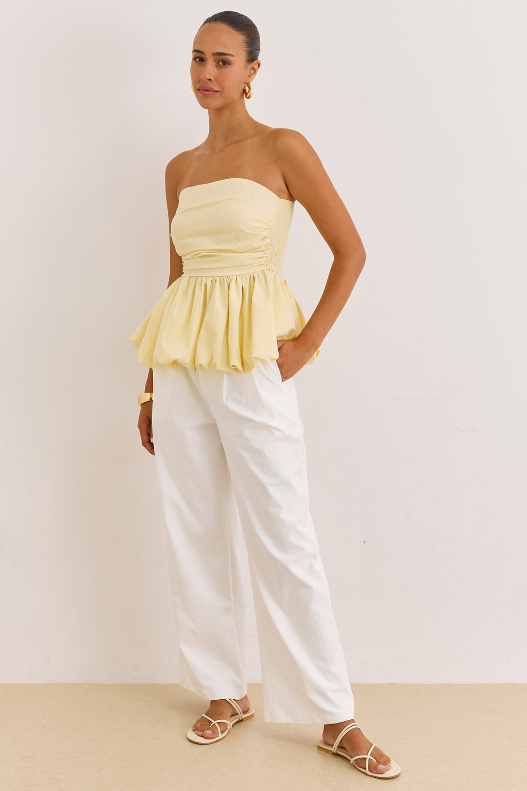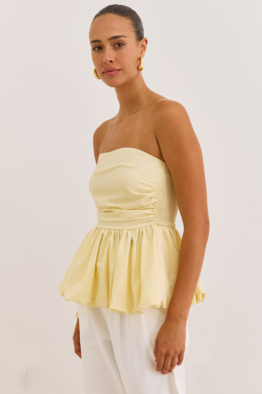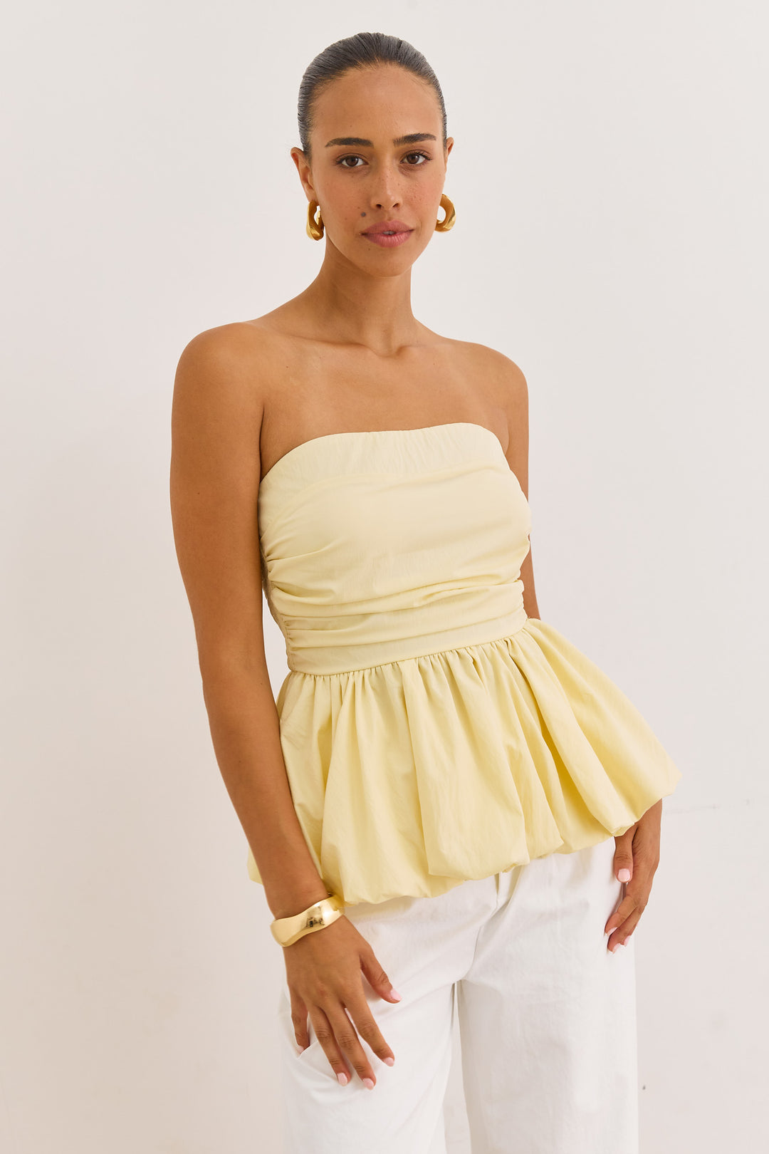 סטרפלס טריה בשילוב פפלום | צהוב חמאה