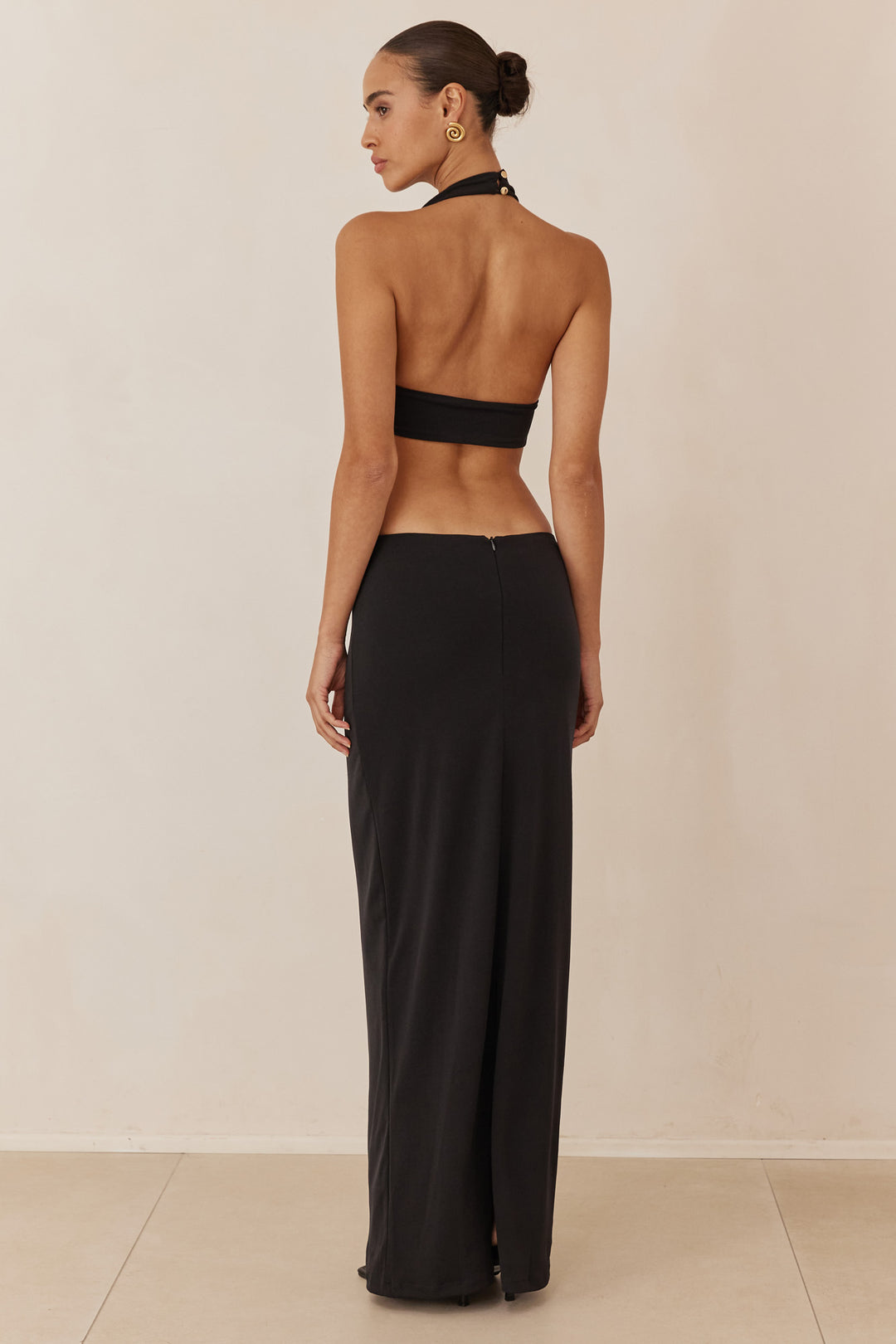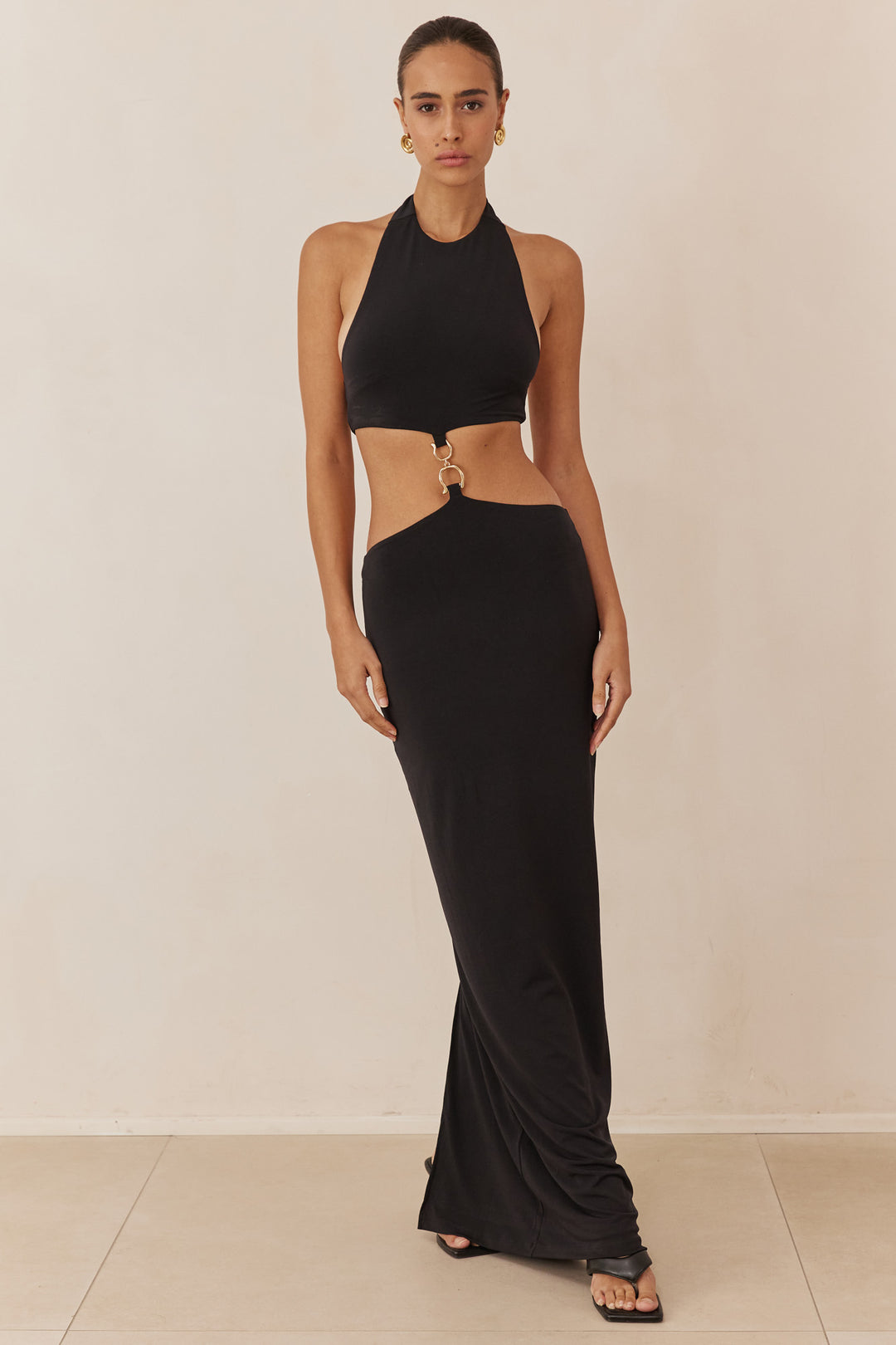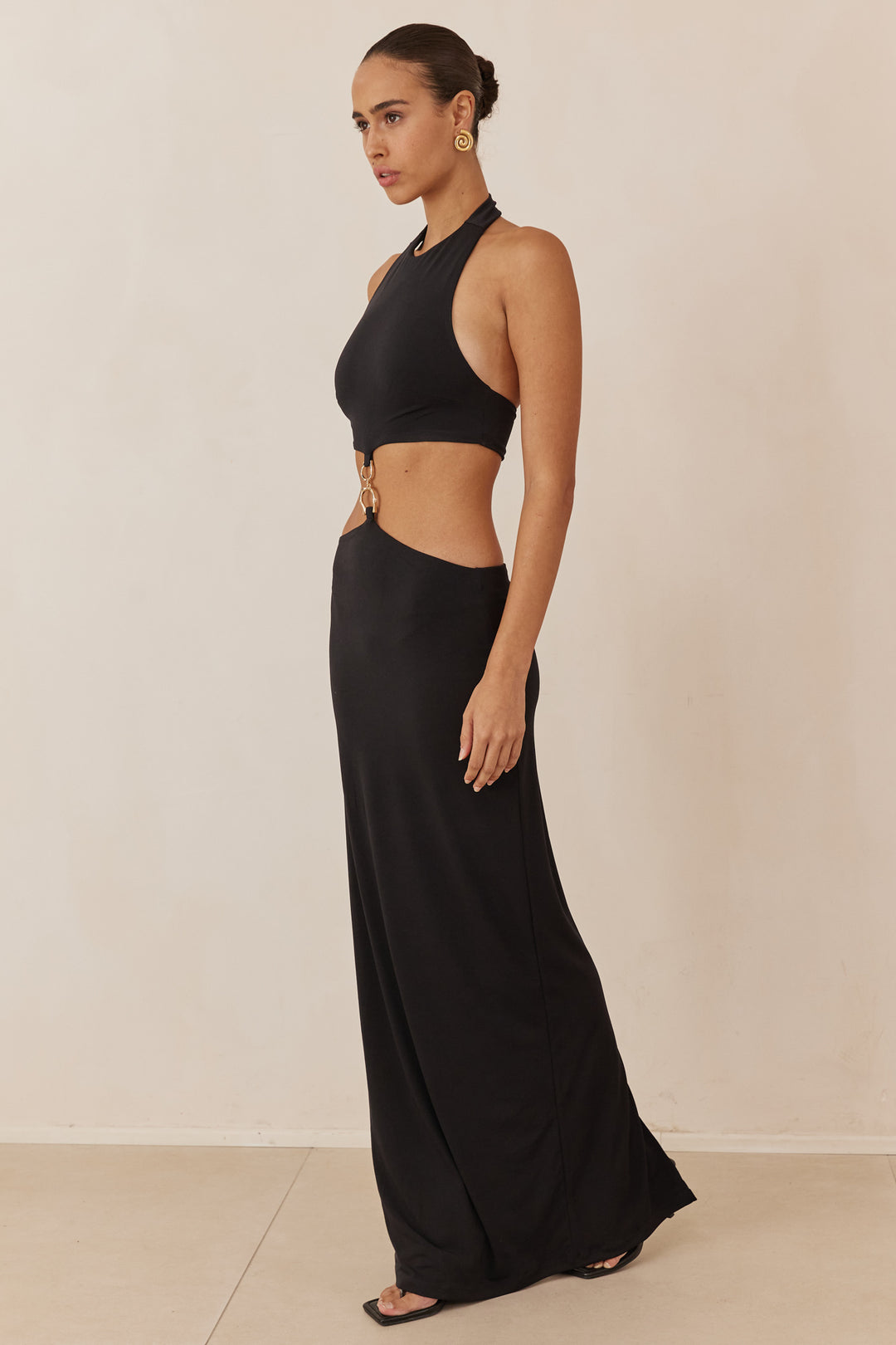 שמלת מקסי אלינור בשילוב אבזם מוזהב | שחור