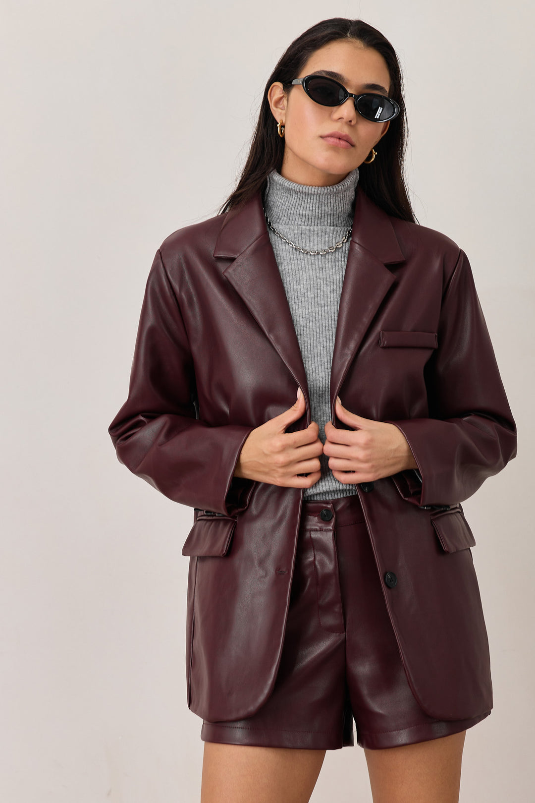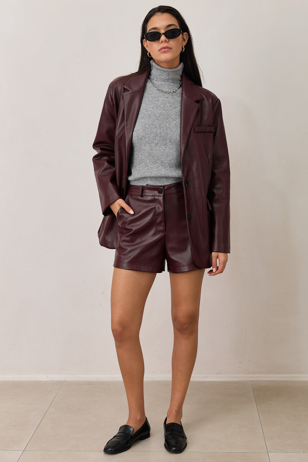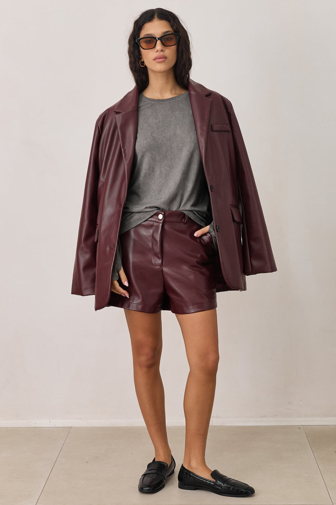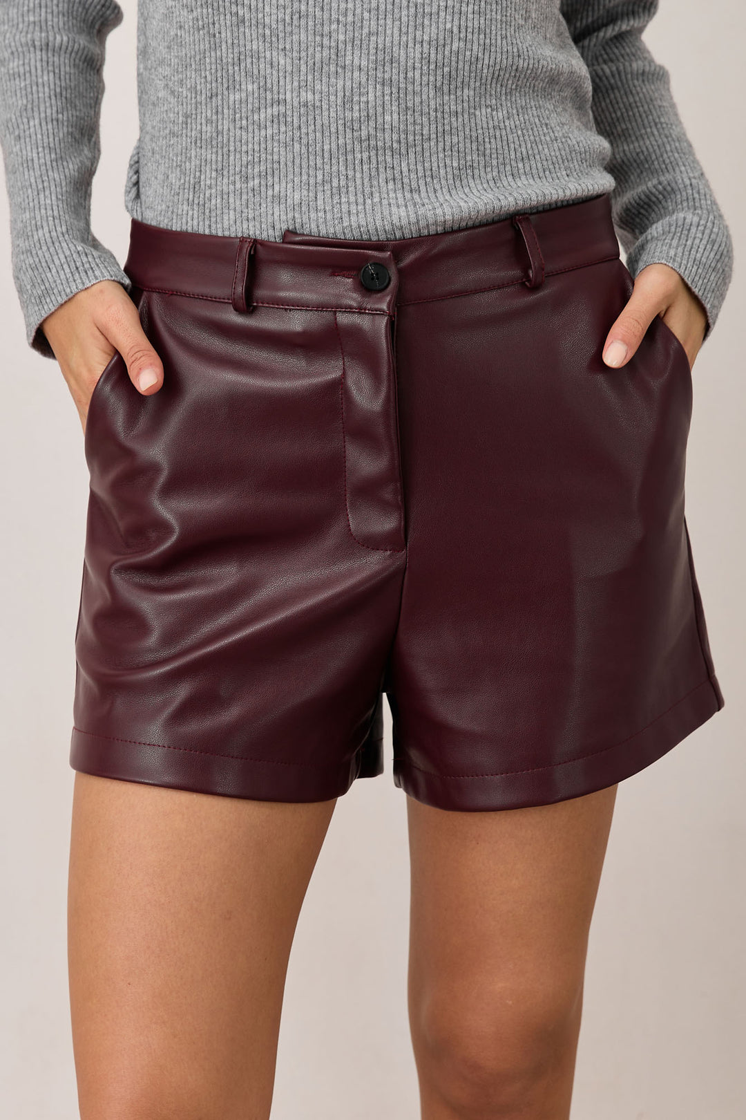 מכנסי אוסטין דמוי עור קצרים | בורדו