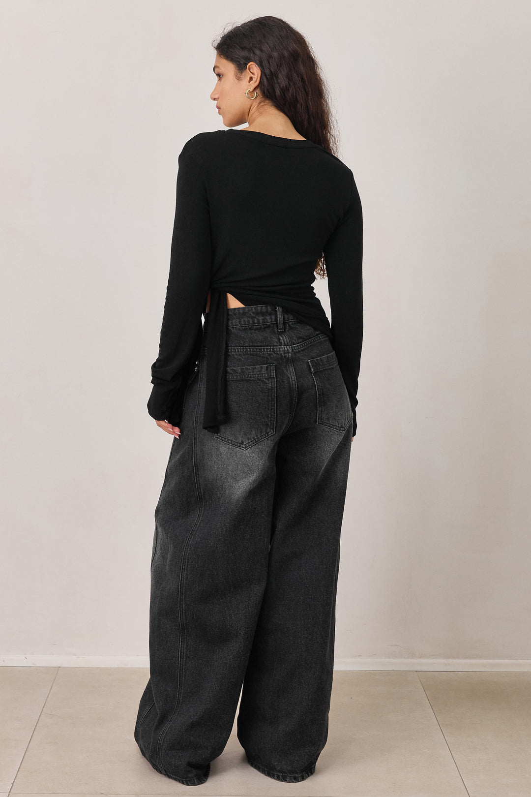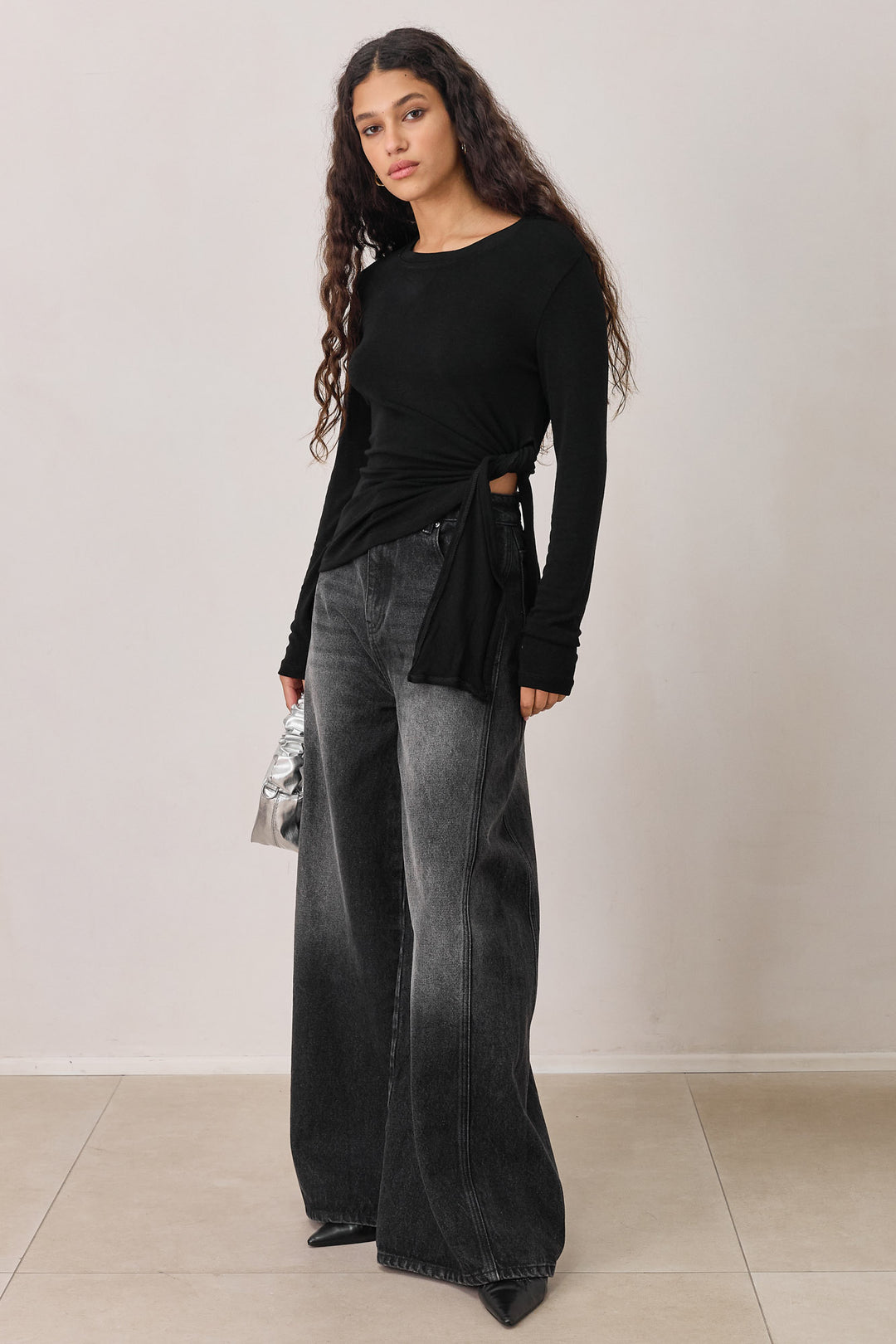 חולצת ויטוריו בשילוב כיווצים | שחור