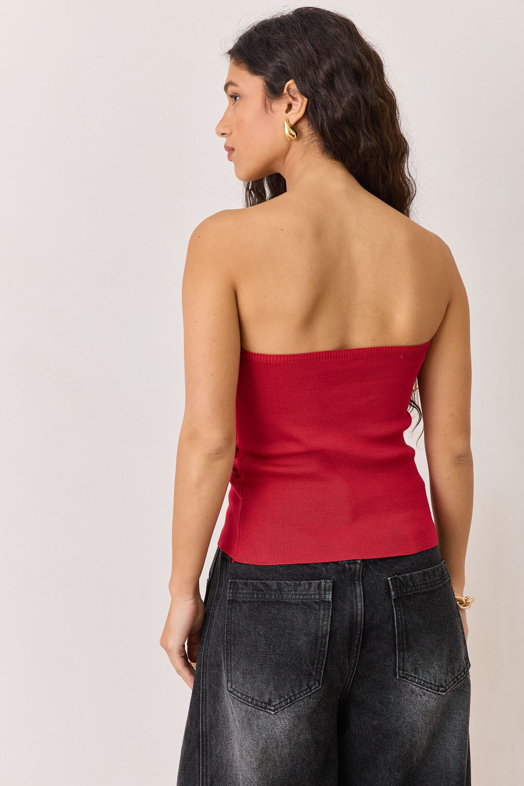 טופ סטרפלס רייצ'ל בשילוב כיווצים ושסע | אדום