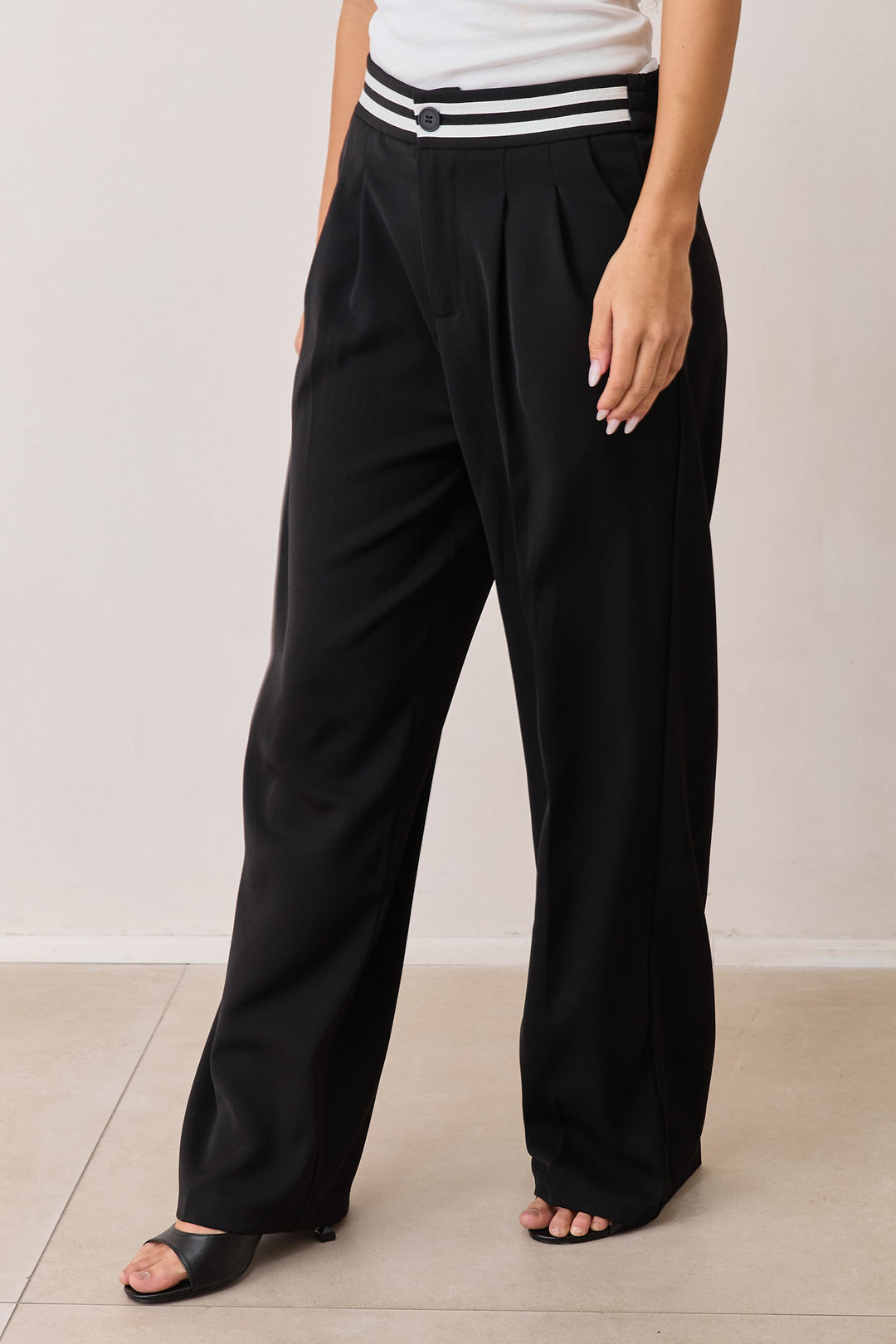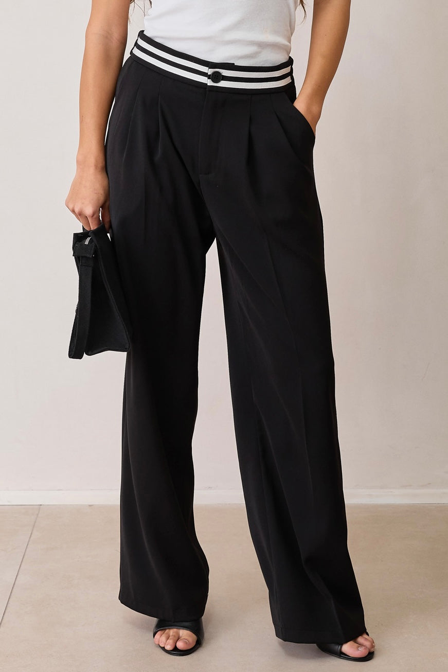 מכנסי גרייס מחויטים חגורת פסים | שחור