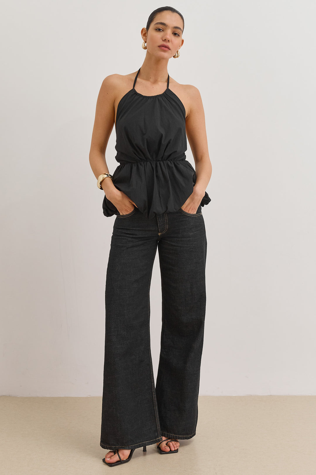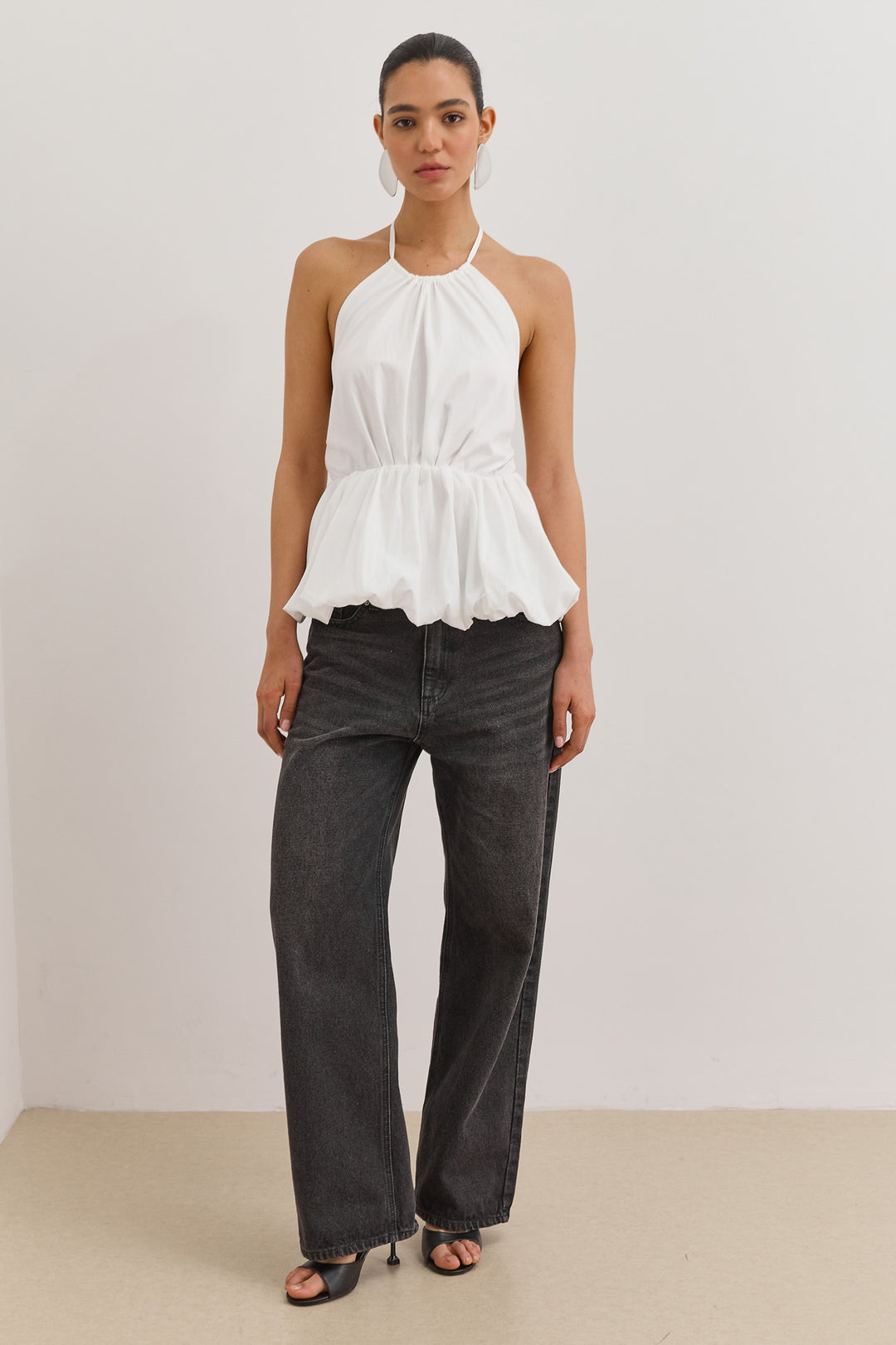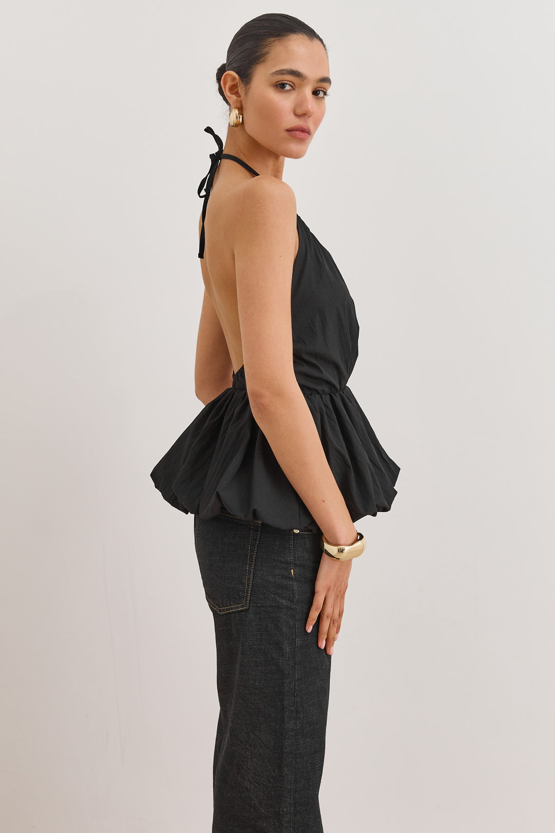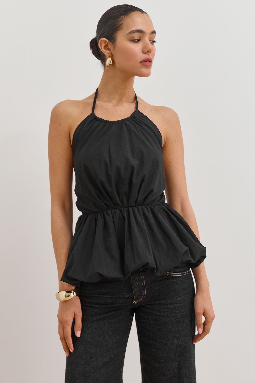 חולצת קולר אריאנה בשילוב פפלום | שחור