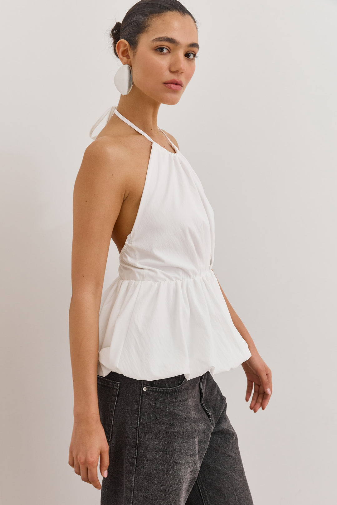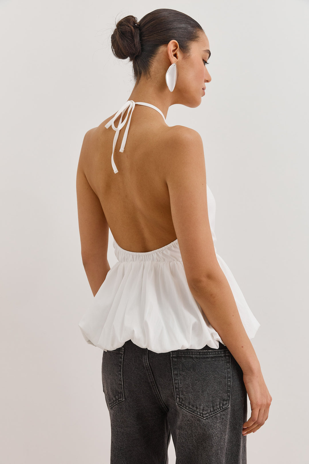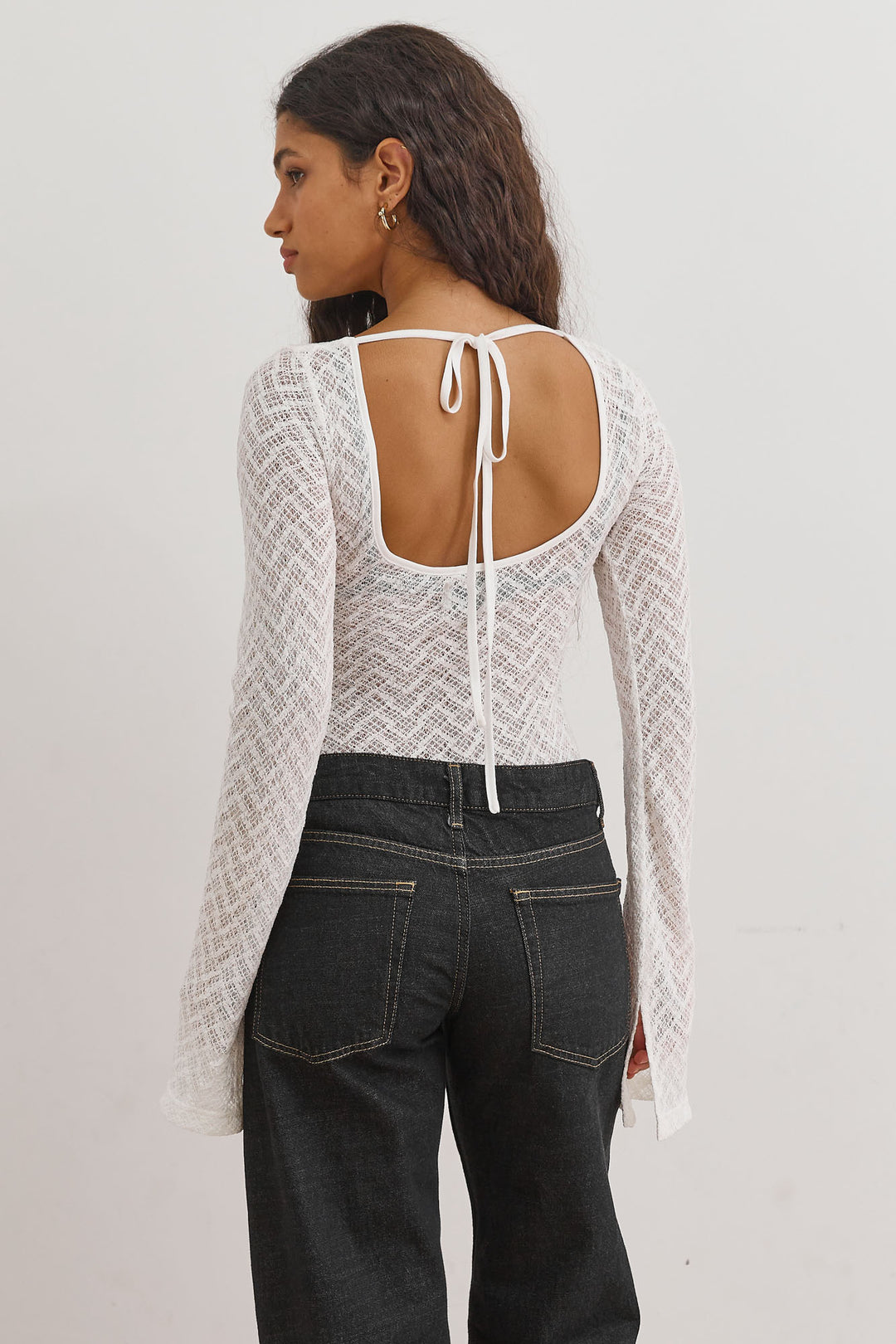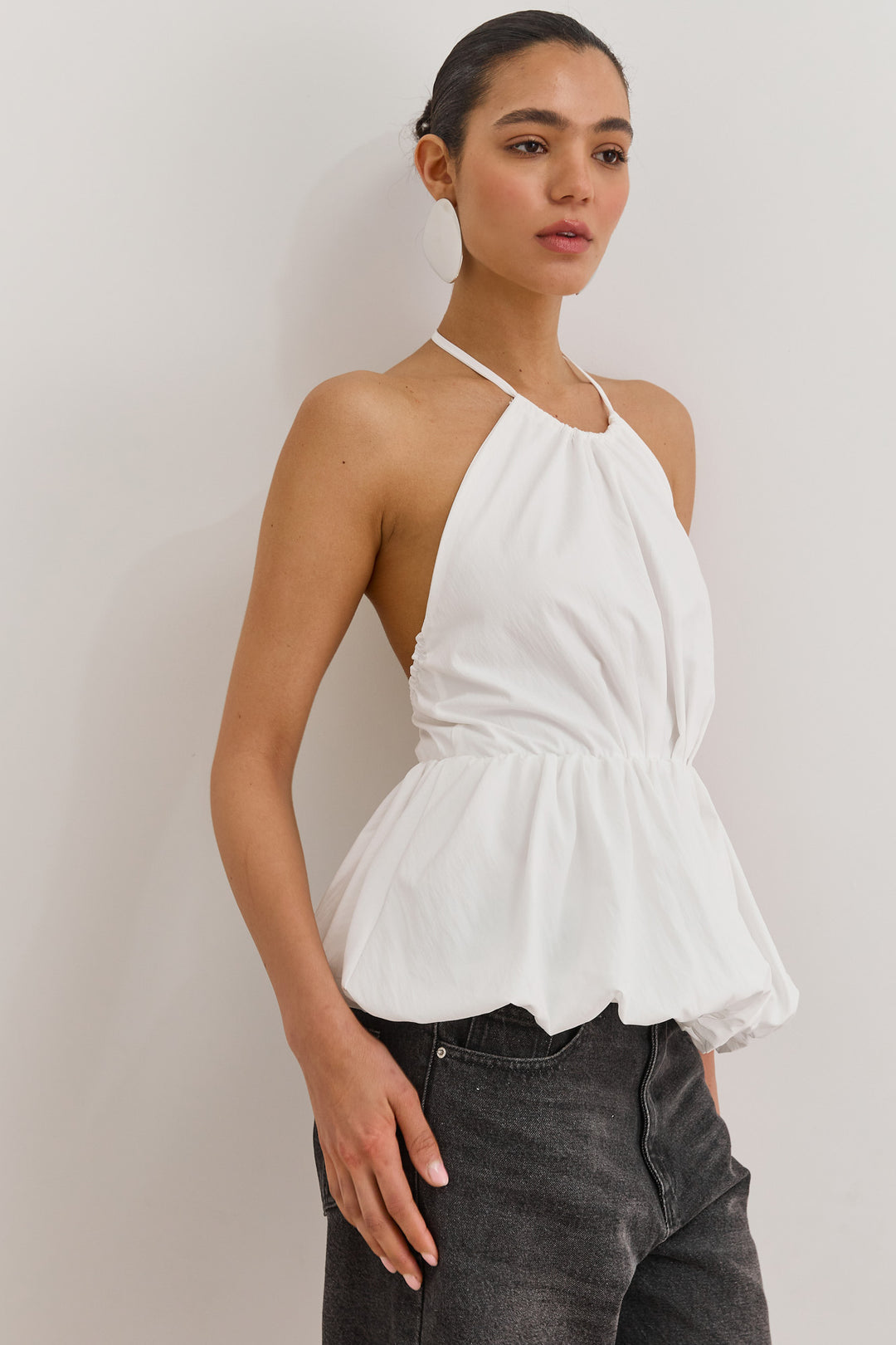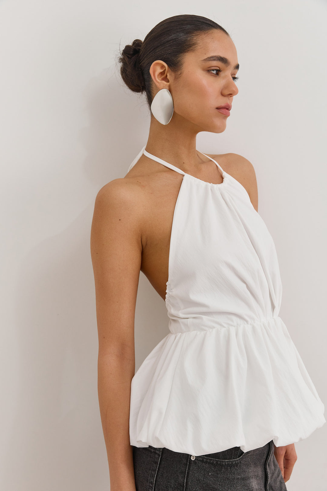 חולצת נסטיה מחוררת פתח בגב | לבן