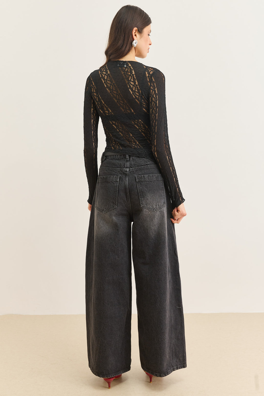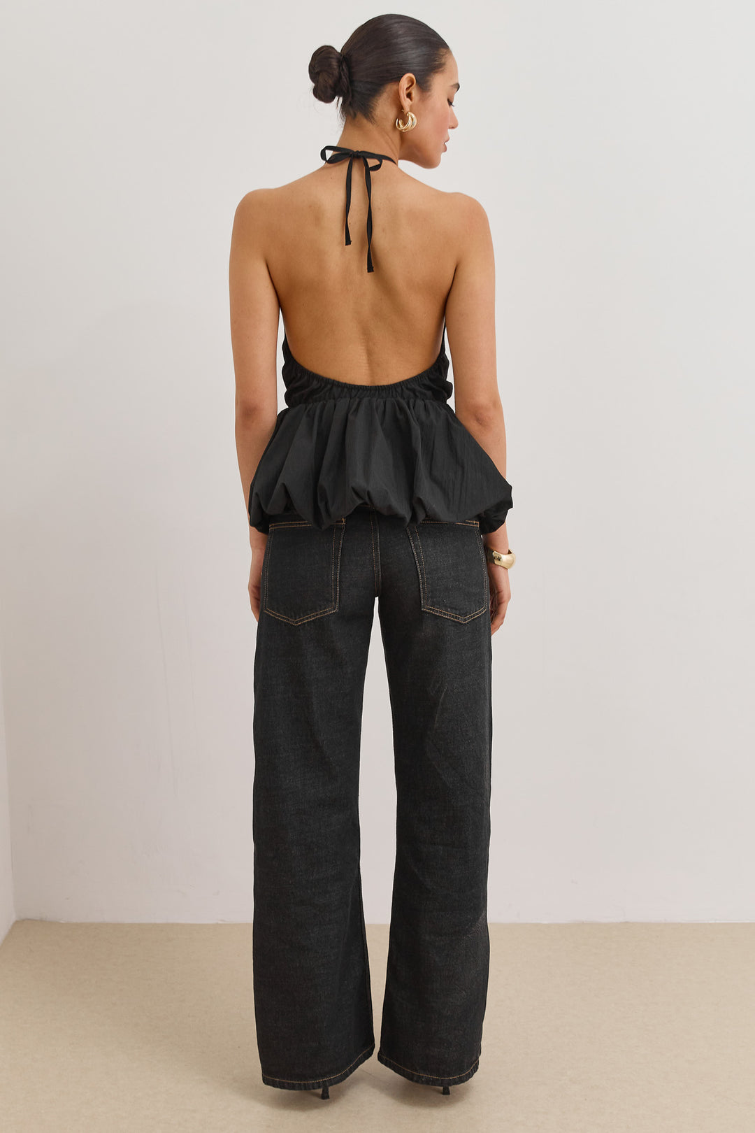 חולצת נסטיה מחוררת פתח בגב | שחור