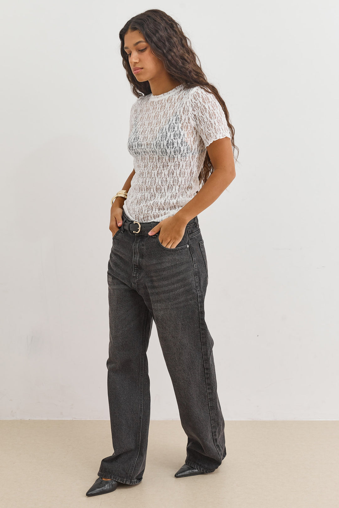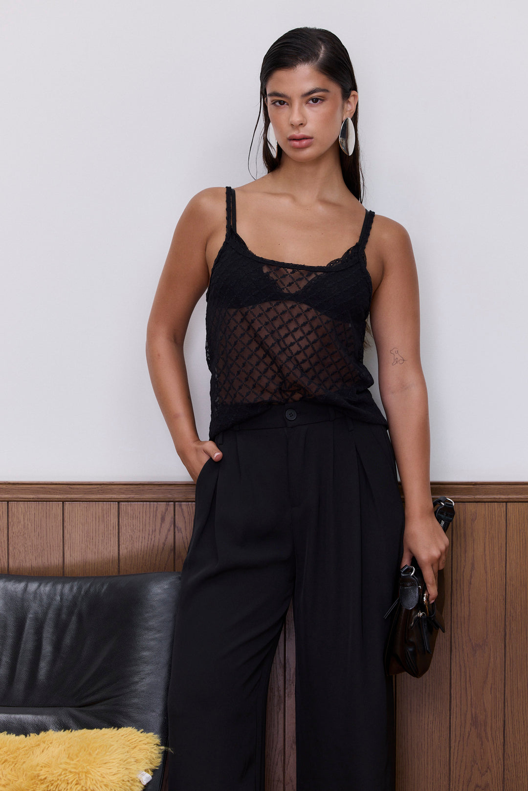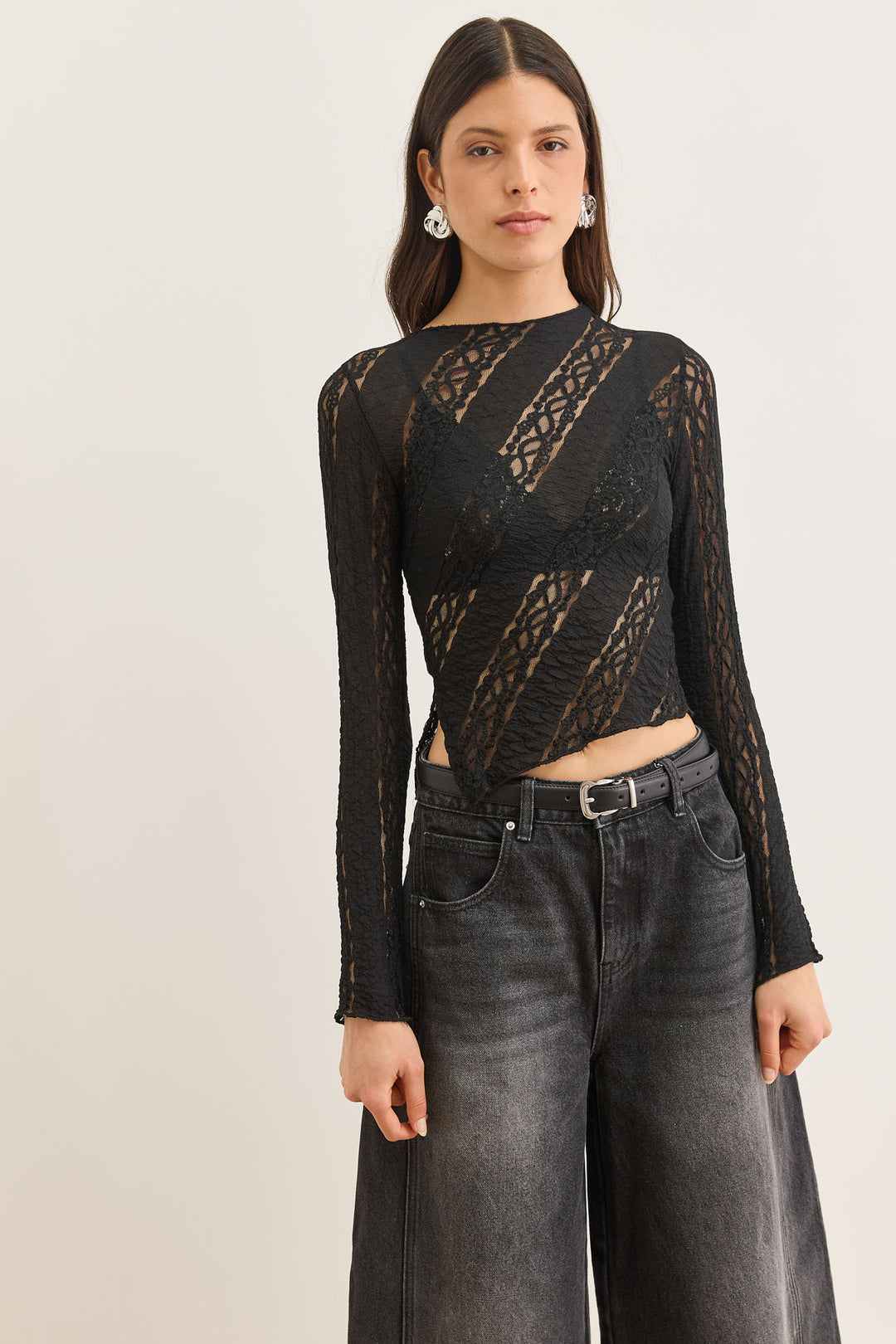 חולצת טינה בד תחרה | שחור