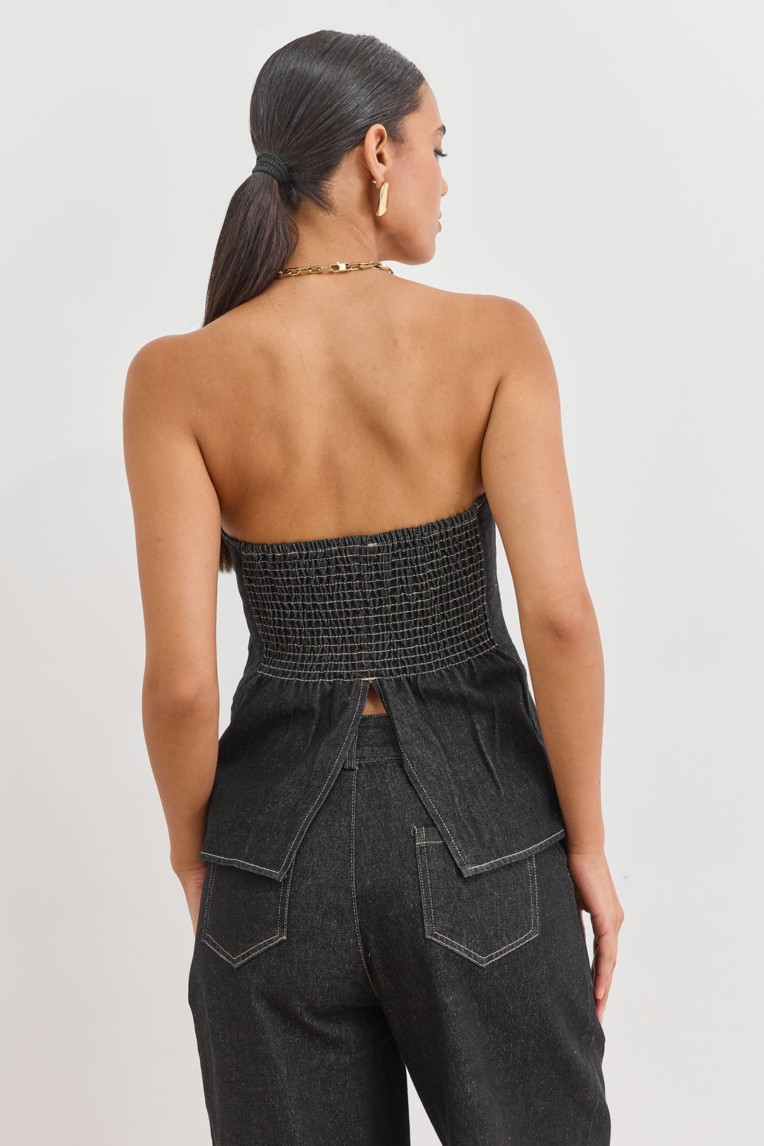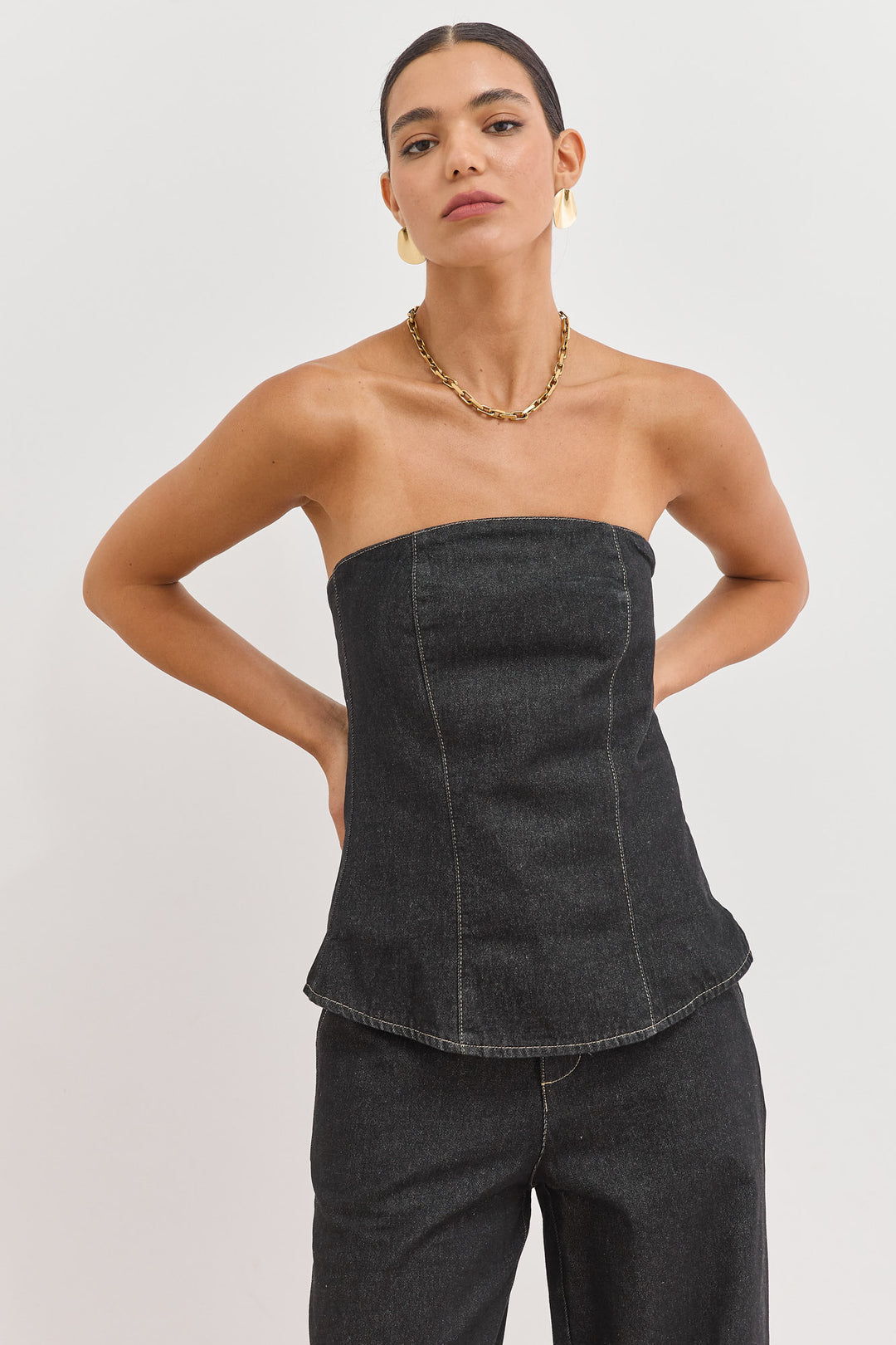 טופ סטרפלס הנסון בד דנים | ג'ינס כהה
