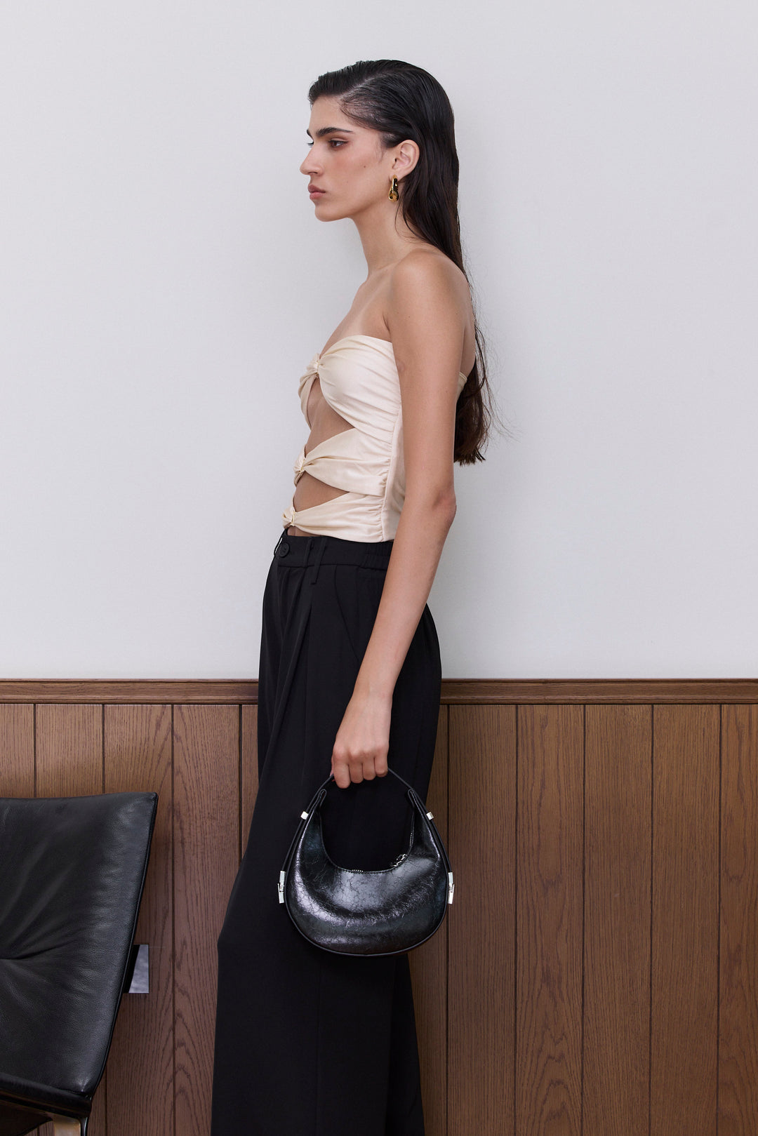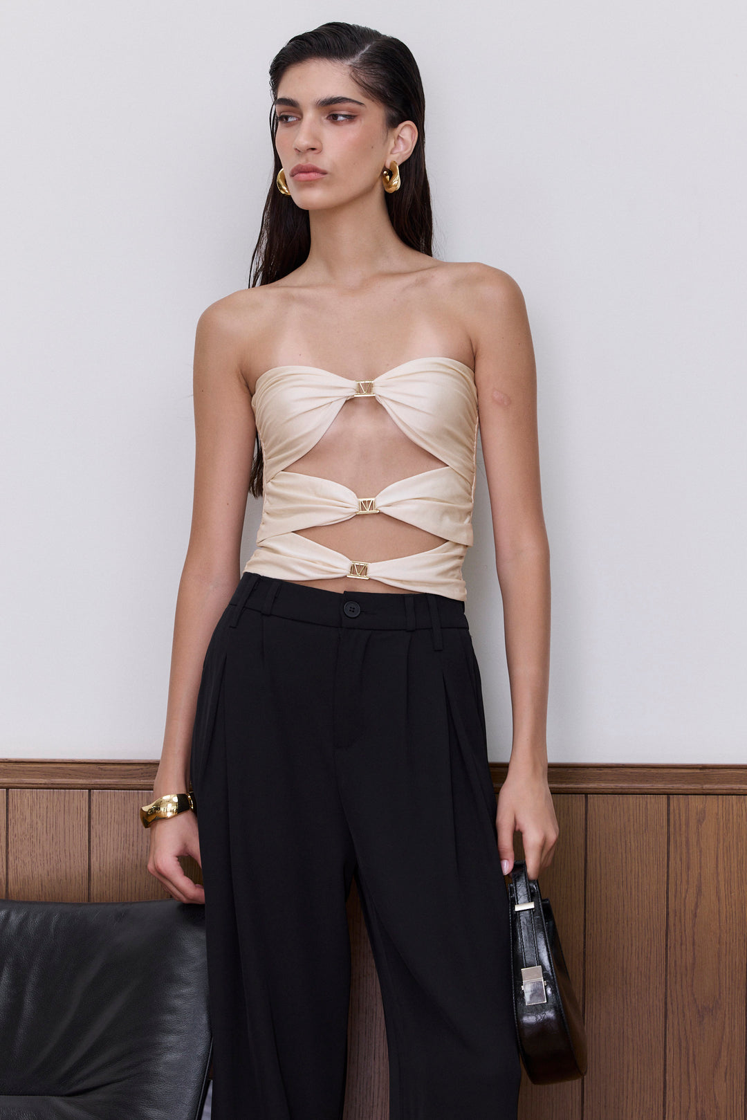 טופ סטרפלס מוניקה קאט אאוטס קדמי | שחור