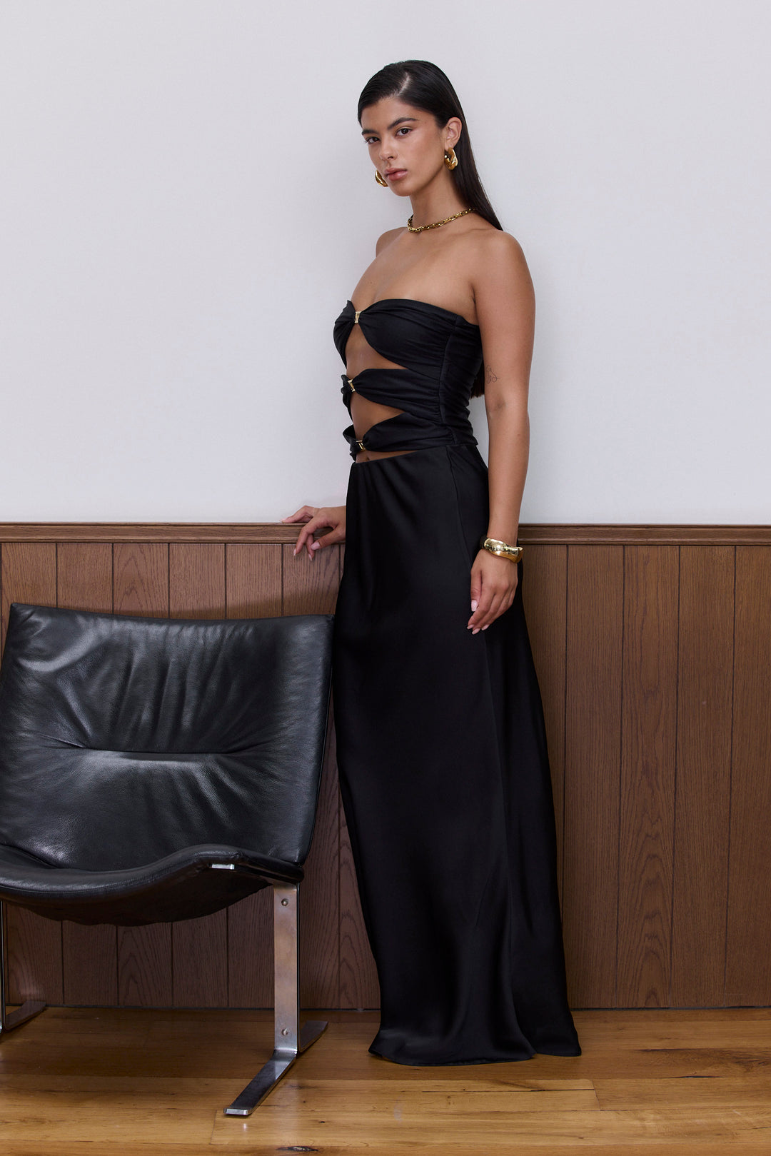 שמלת מקסי פרנסיס קאט אאוט | שחור
