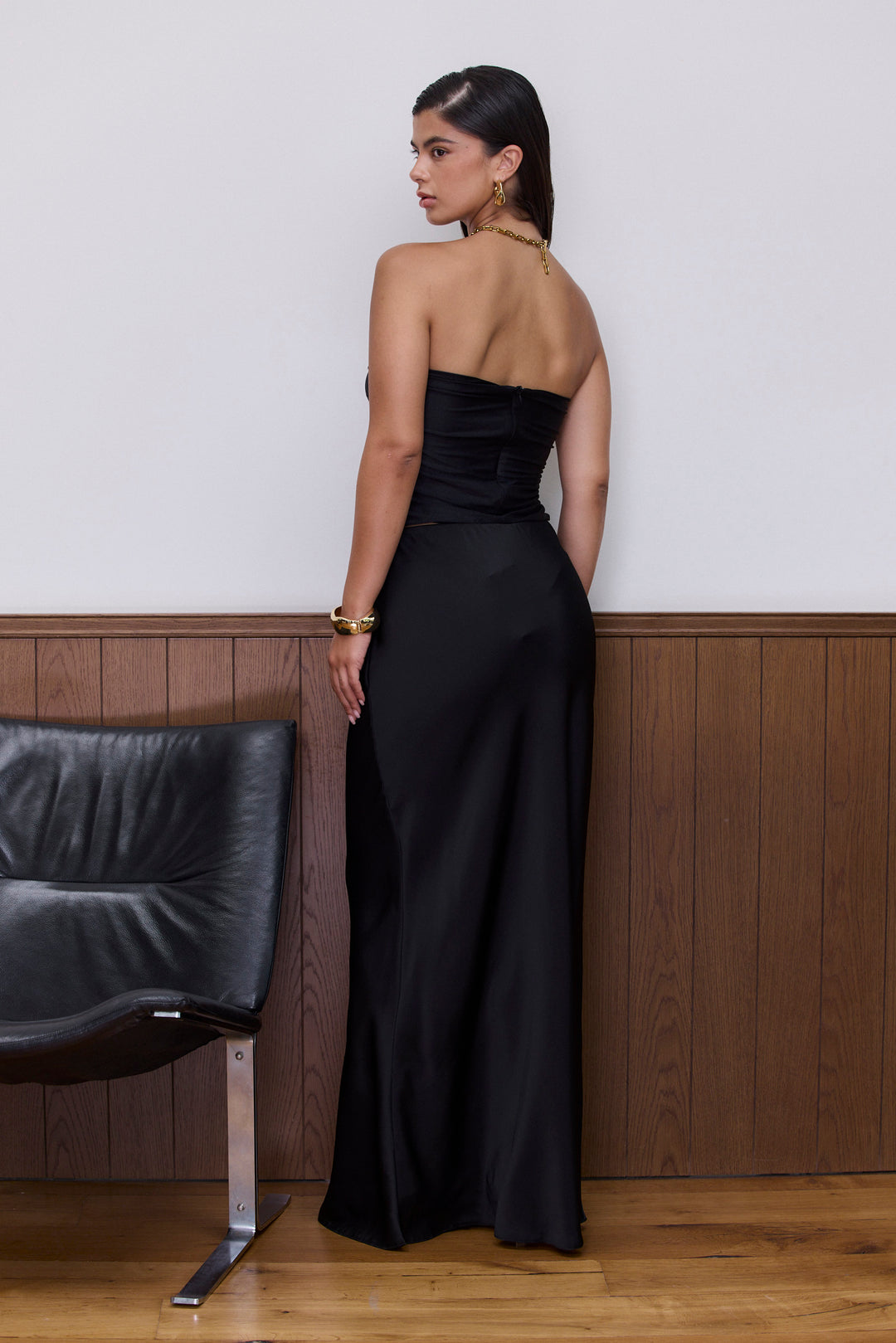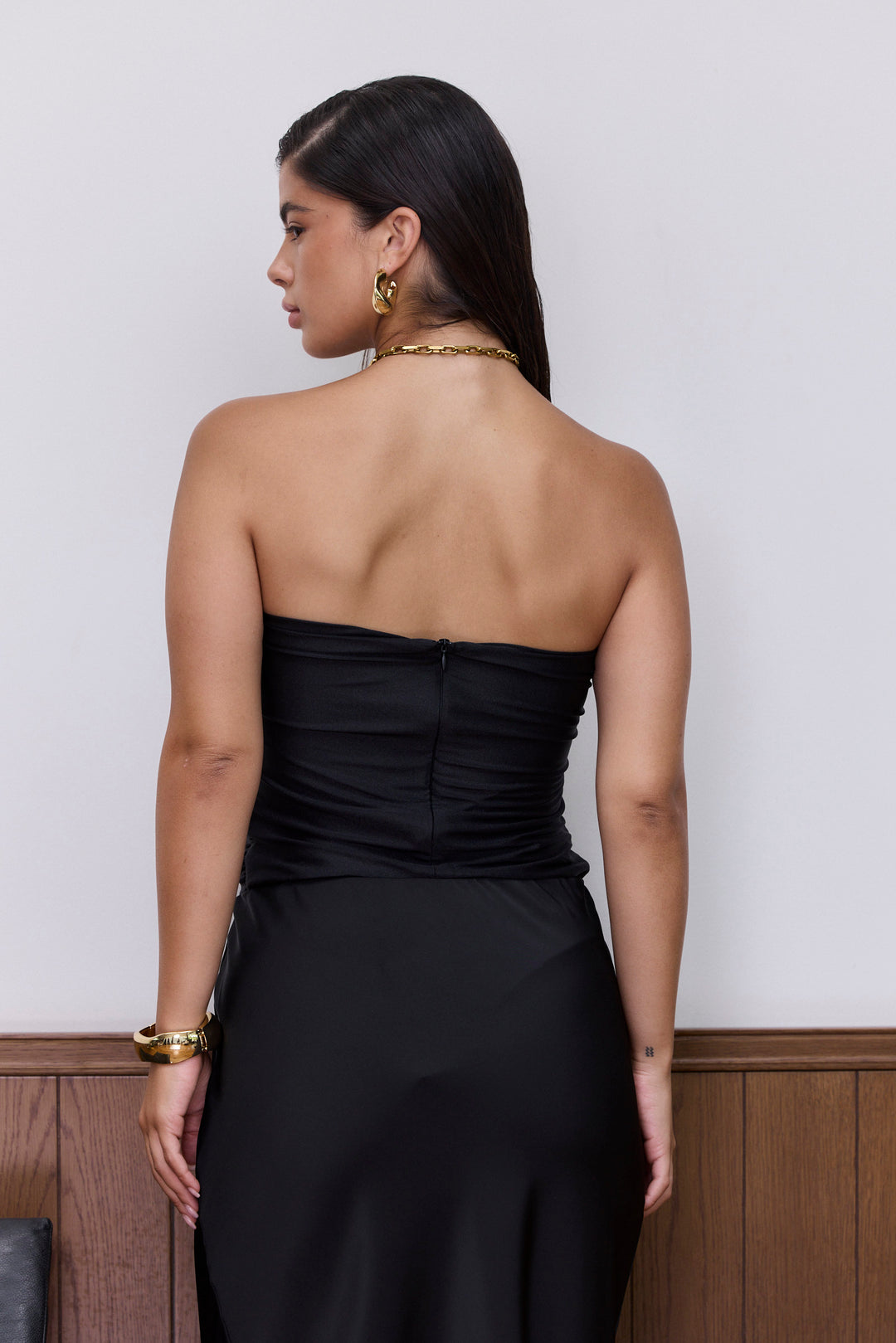 טופ סטרפלס כריסטה בשילוב קפלים | שחור