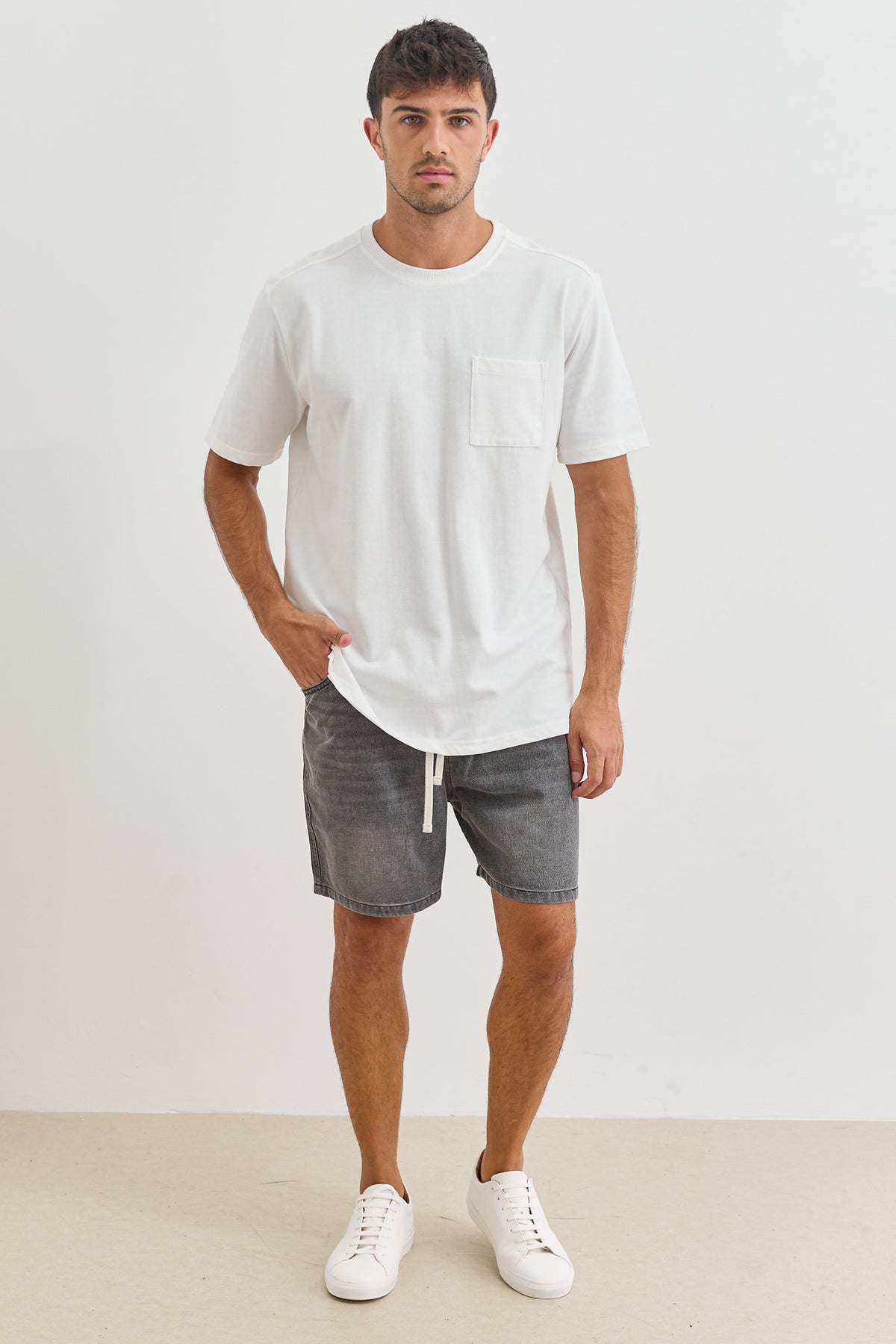 טי שירט עם שרוולים קצרים ופרינט בגב בשילוב כיס קדמי ותפר מובלט בגב