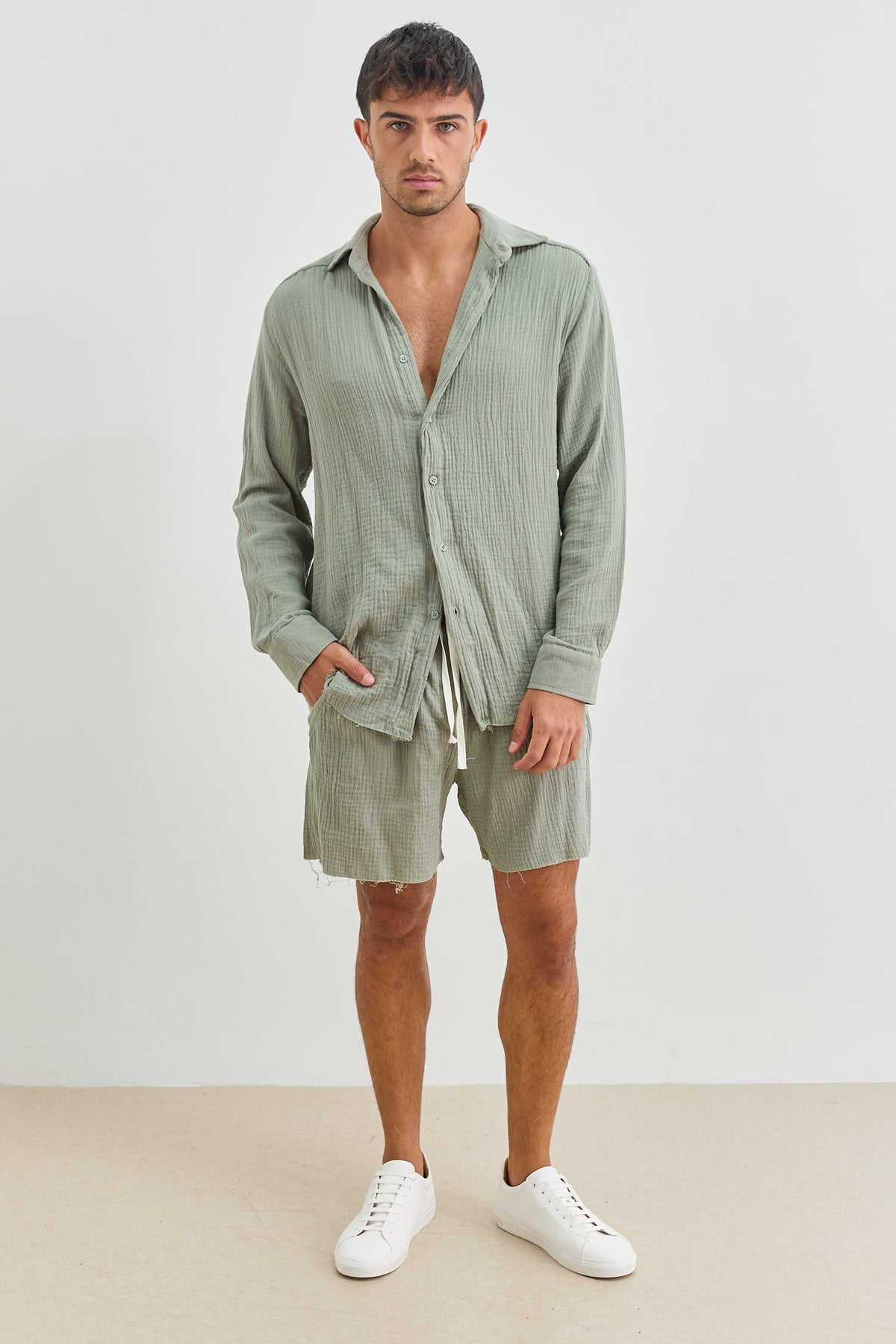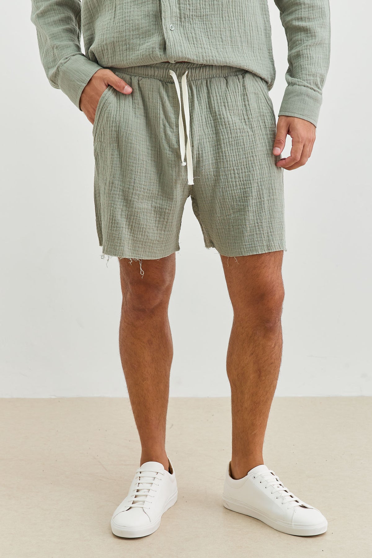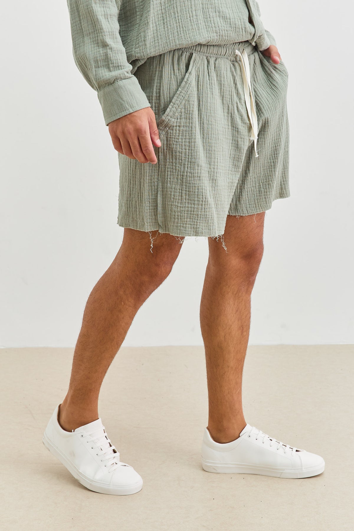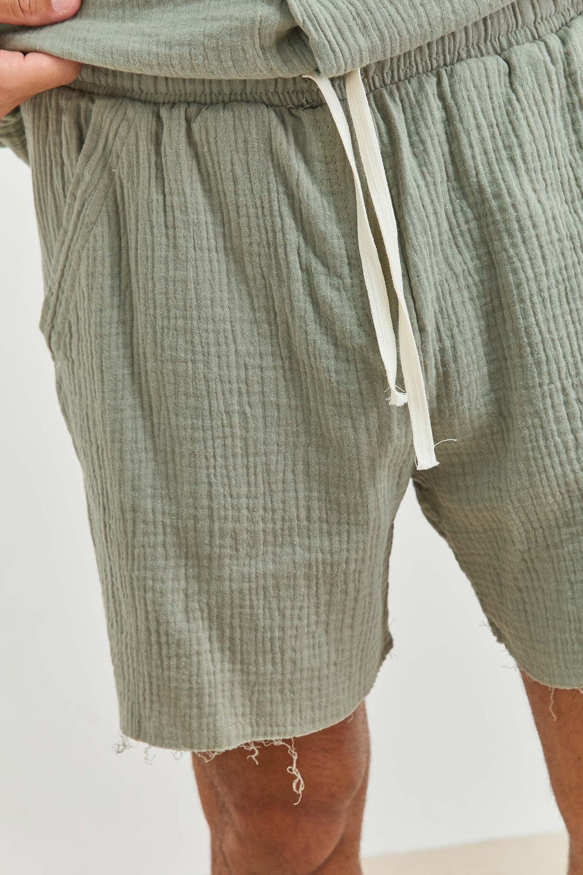 מכנסיים קצרים מבד טטרה עם כיסים, גומי במותן, שרוך וכיס אחורי