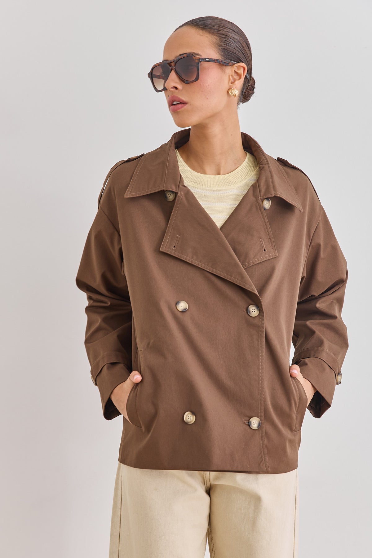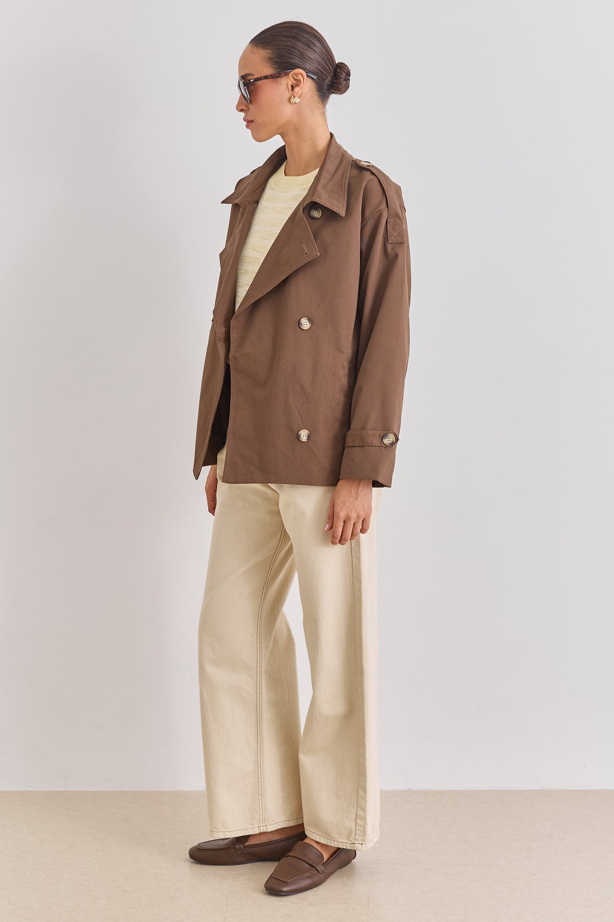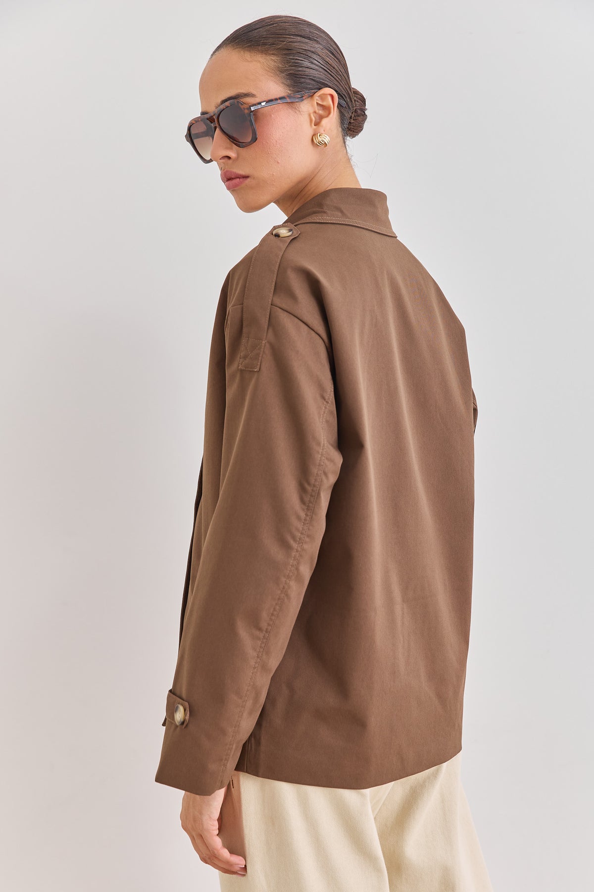 מעיל טראנץ' אורך מותן עם צווארון וכפתורים מנומרים