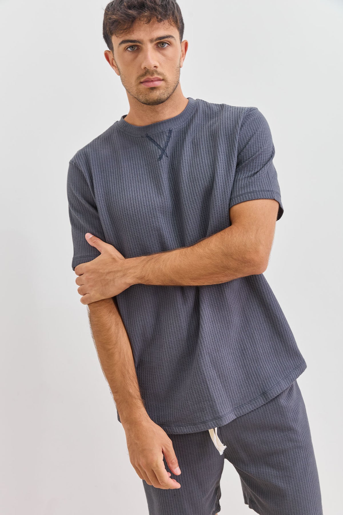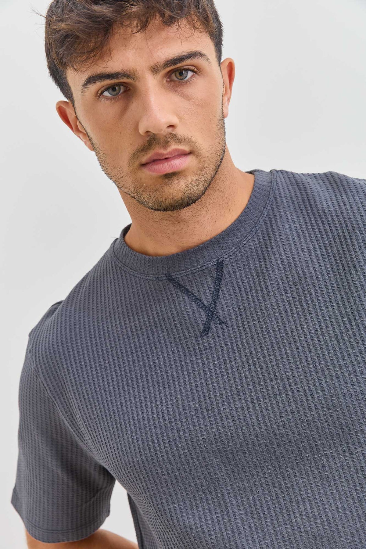 חולצת וופל אנדרו צווארון ניקי | אפור כהה