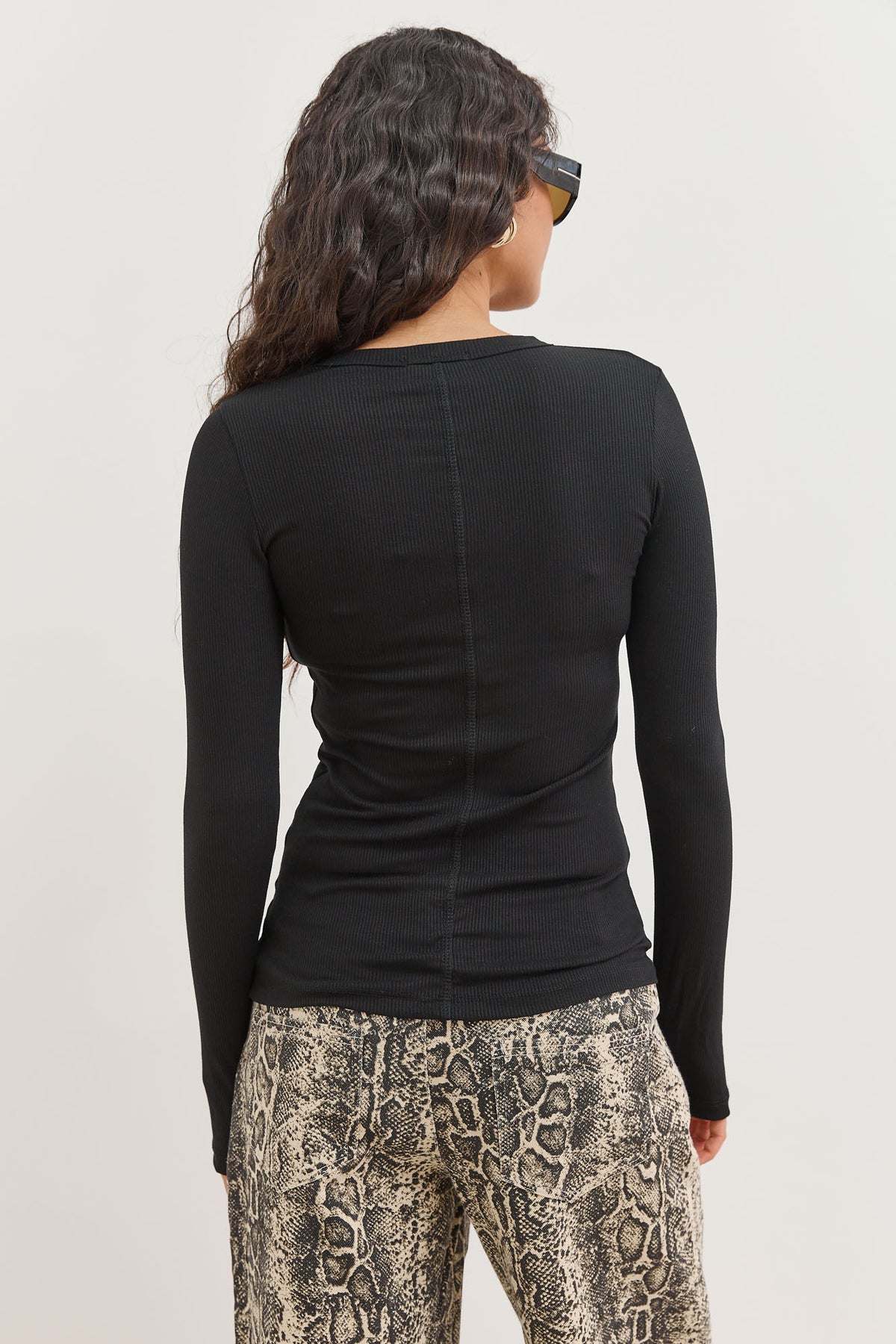 חולצת ריב אנג'י שרוולי כפפה | שחור