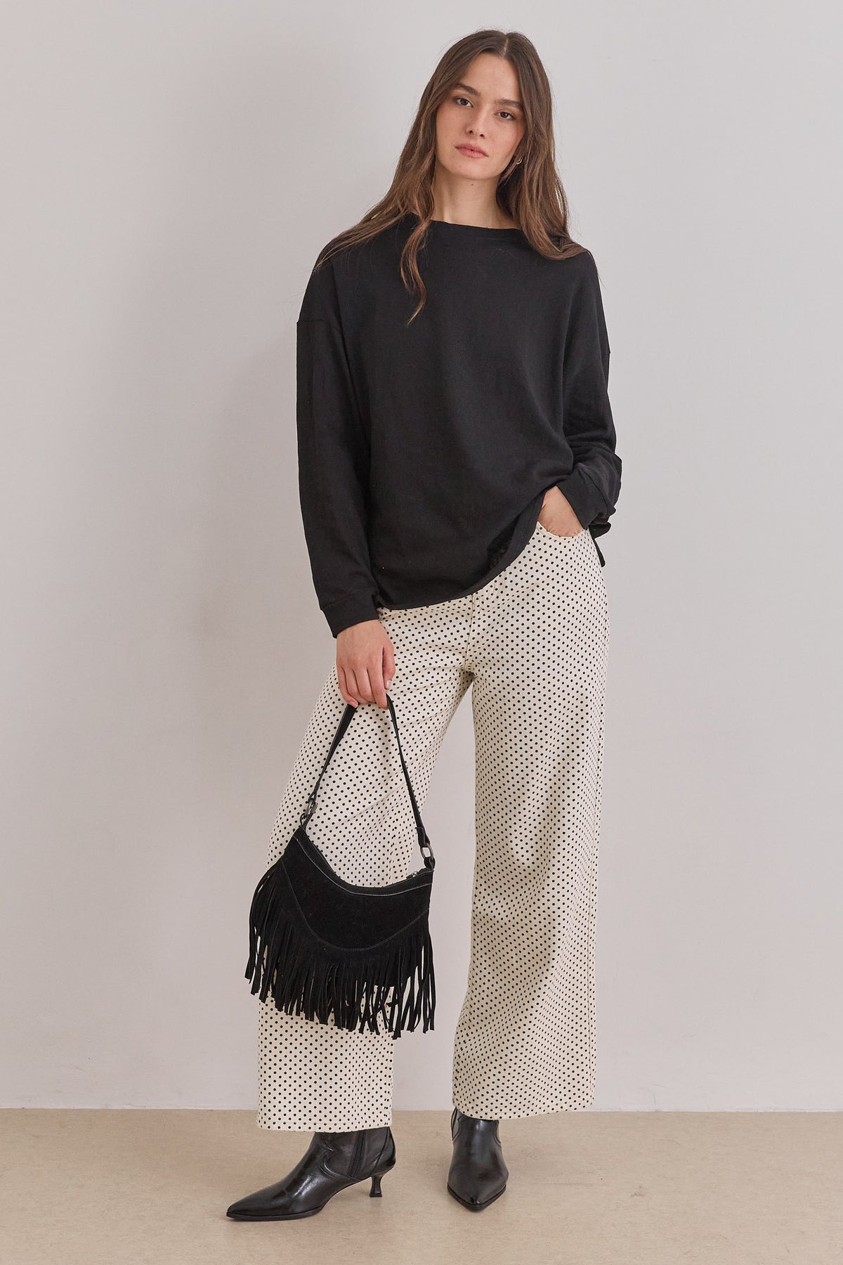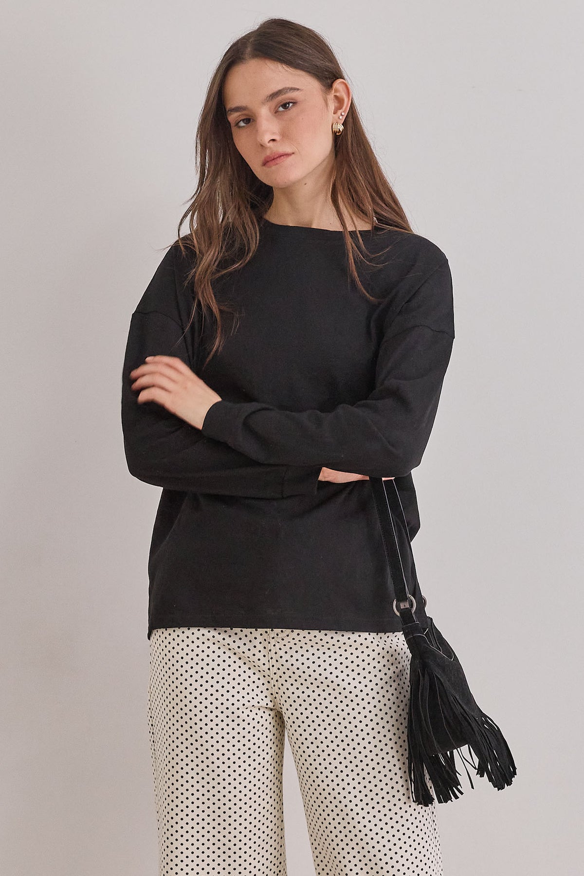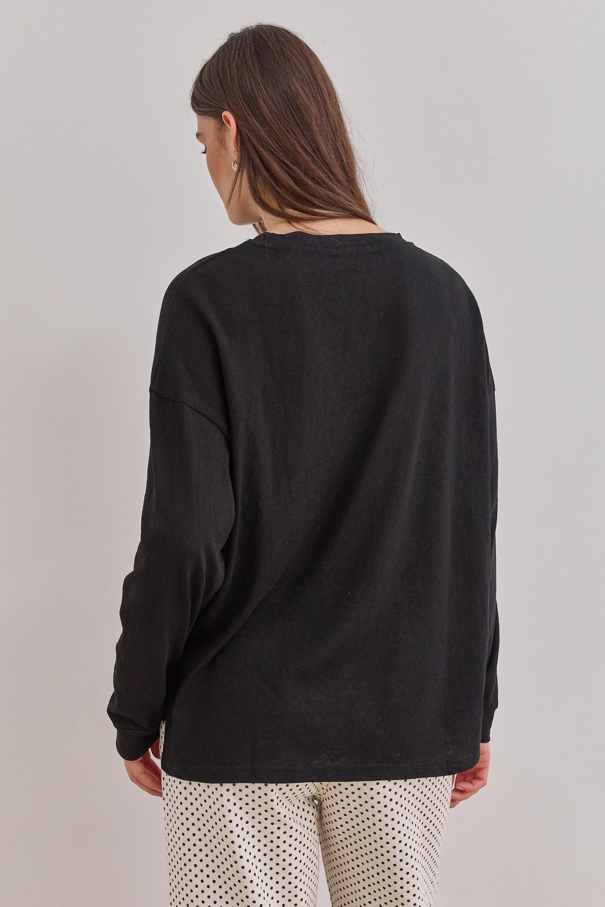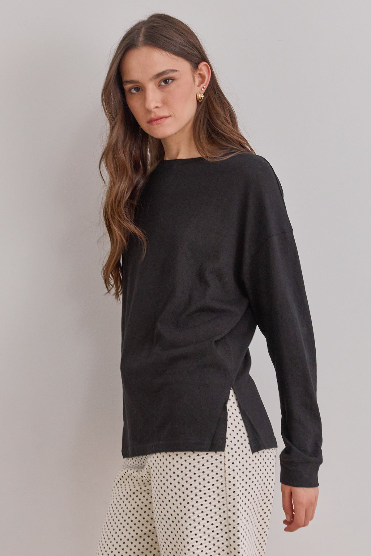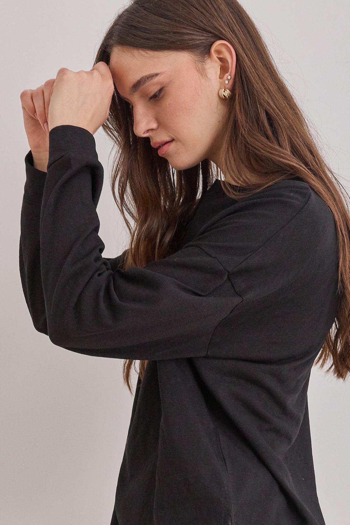 טי שירט מושלמת עם שרוולים ארוכים מבד קליל ומעט שקפקף, שתתאים לכל אאוטפיט אפשרי.