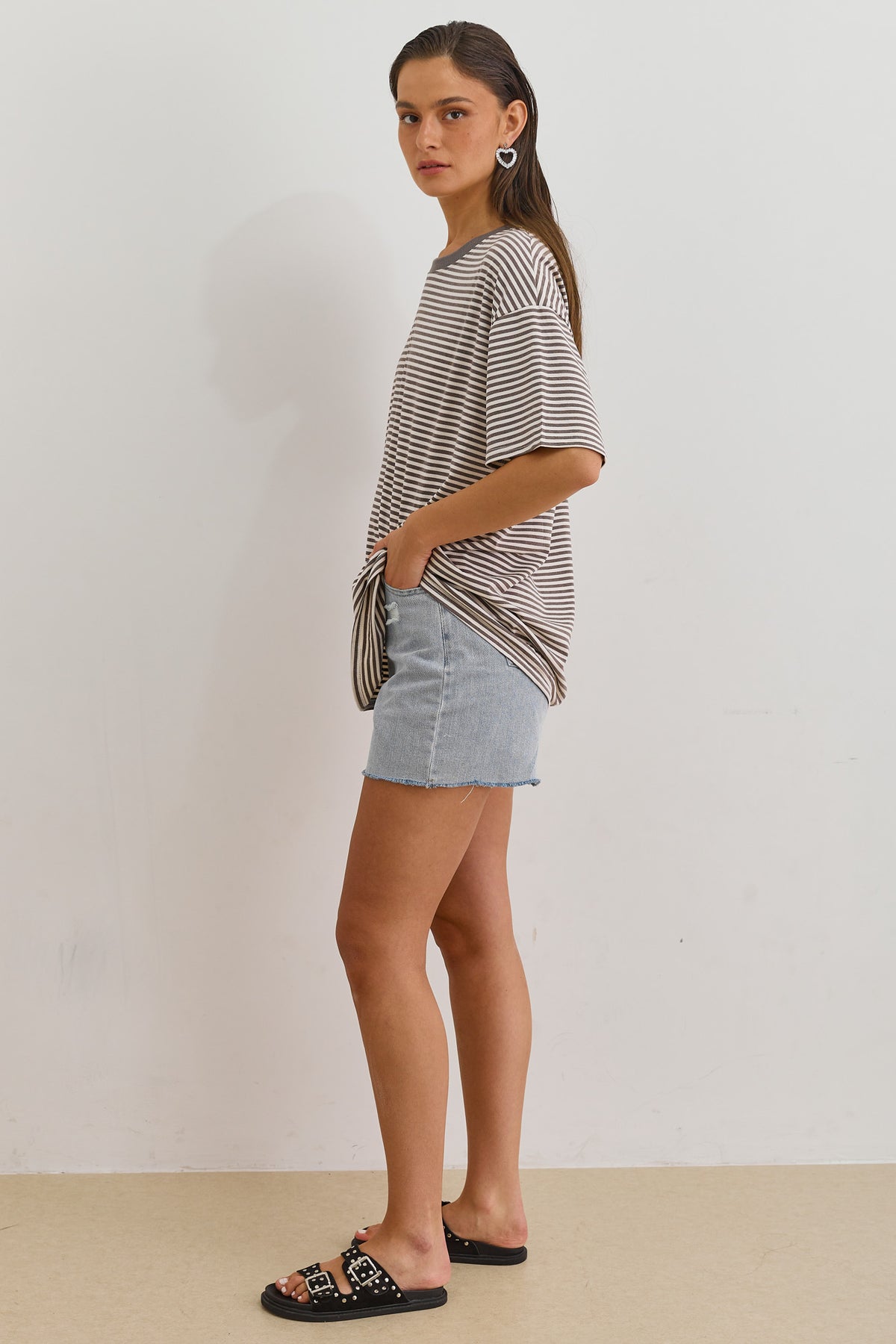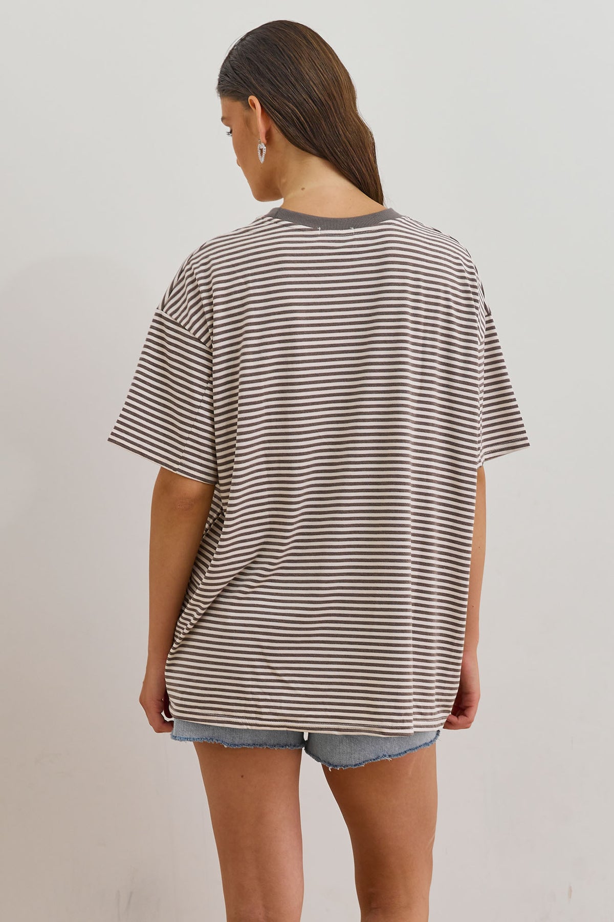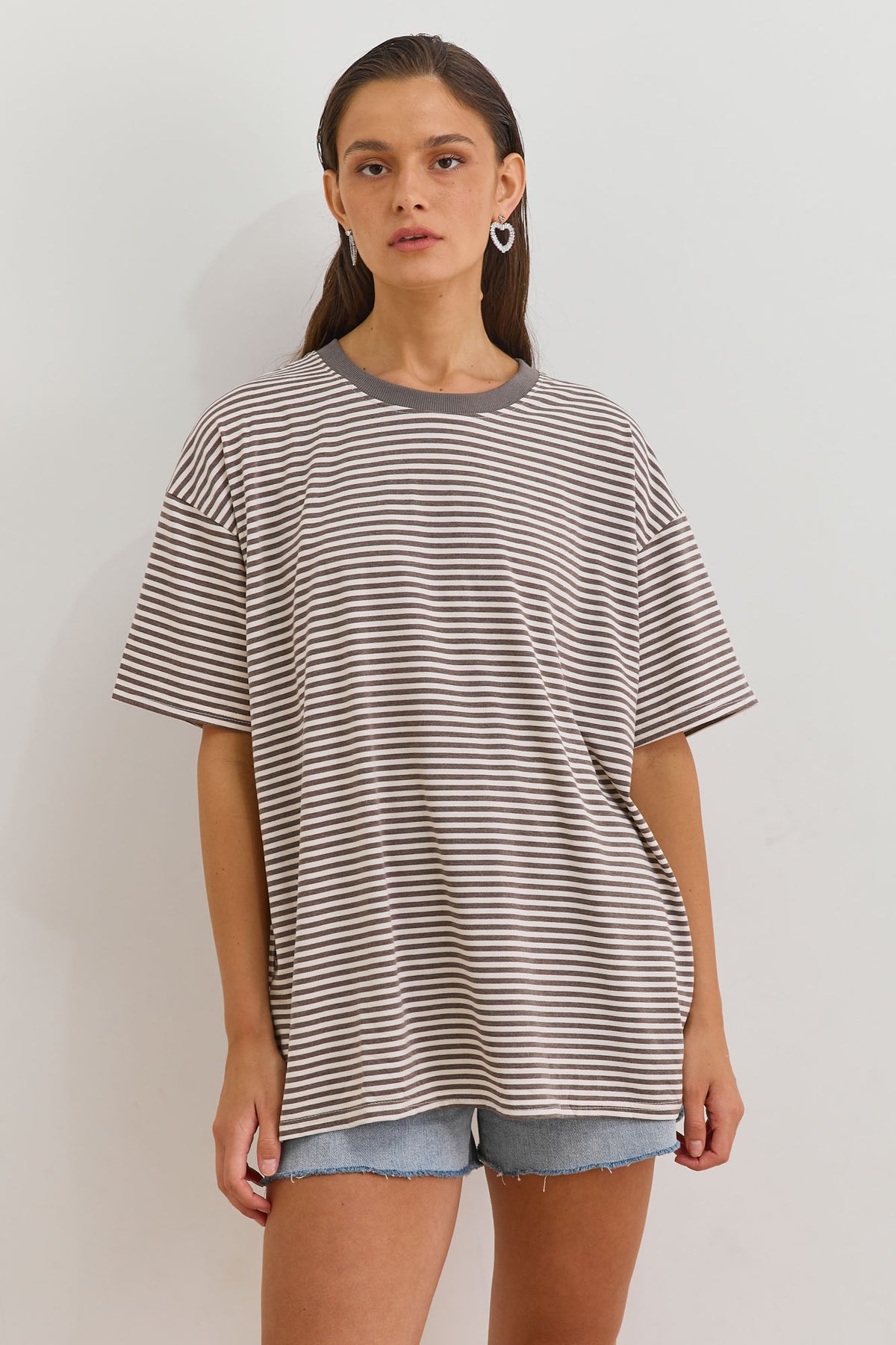 טי שירט אתנה סטרייפס גזרת אוברסייז | אפור/לבן
