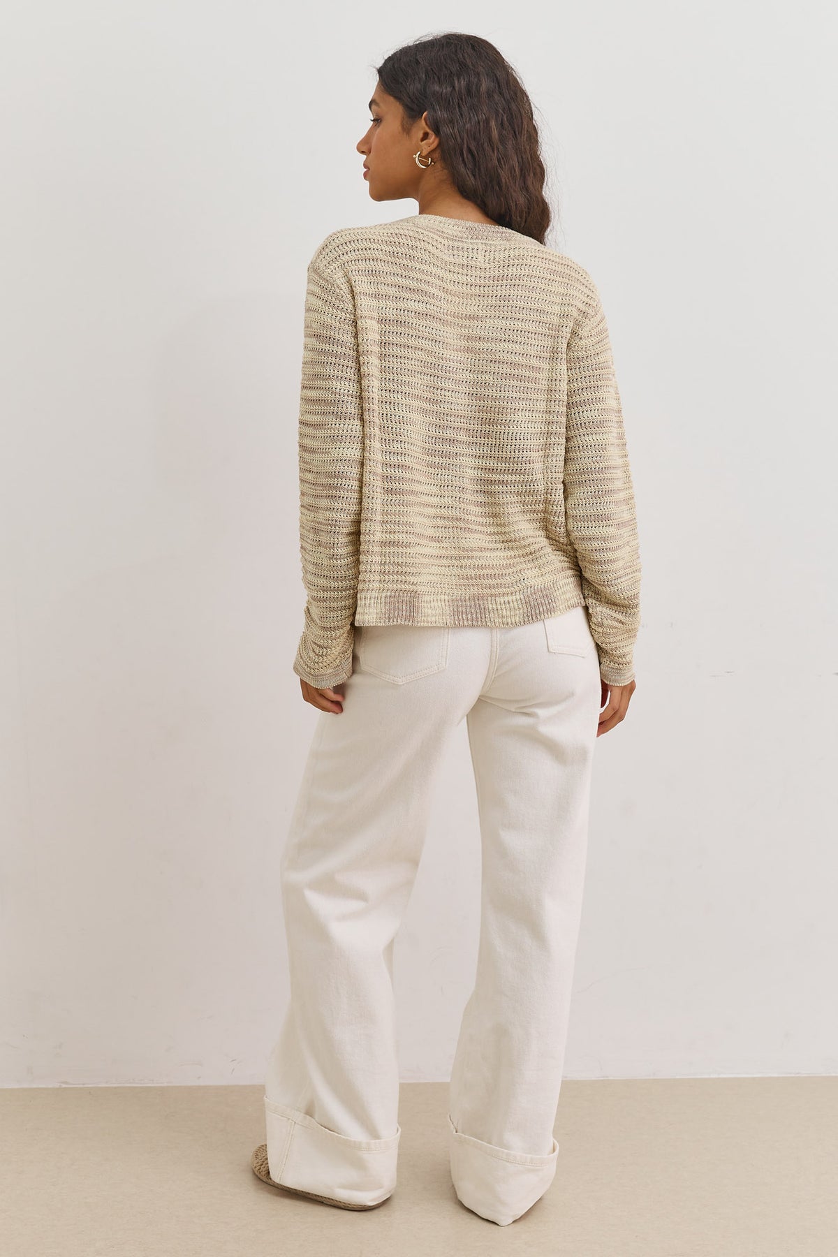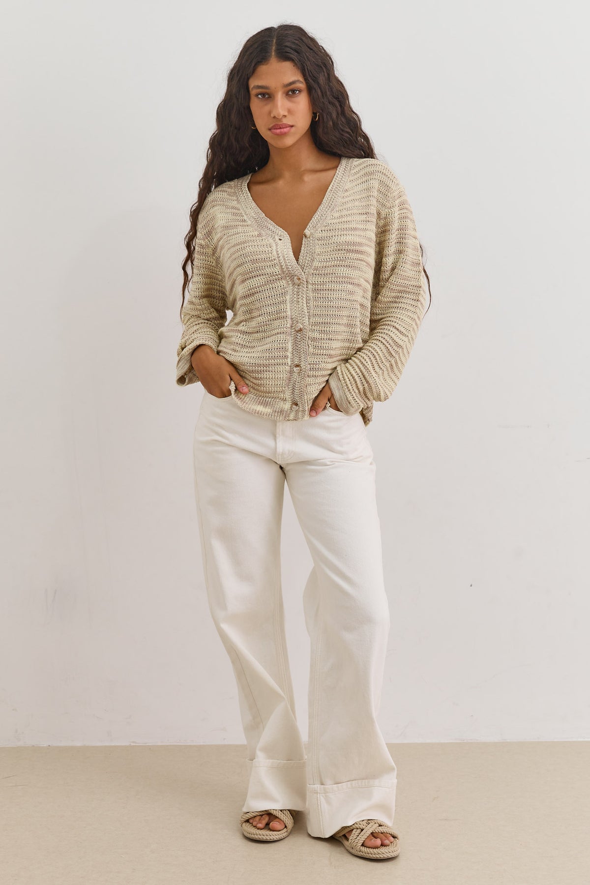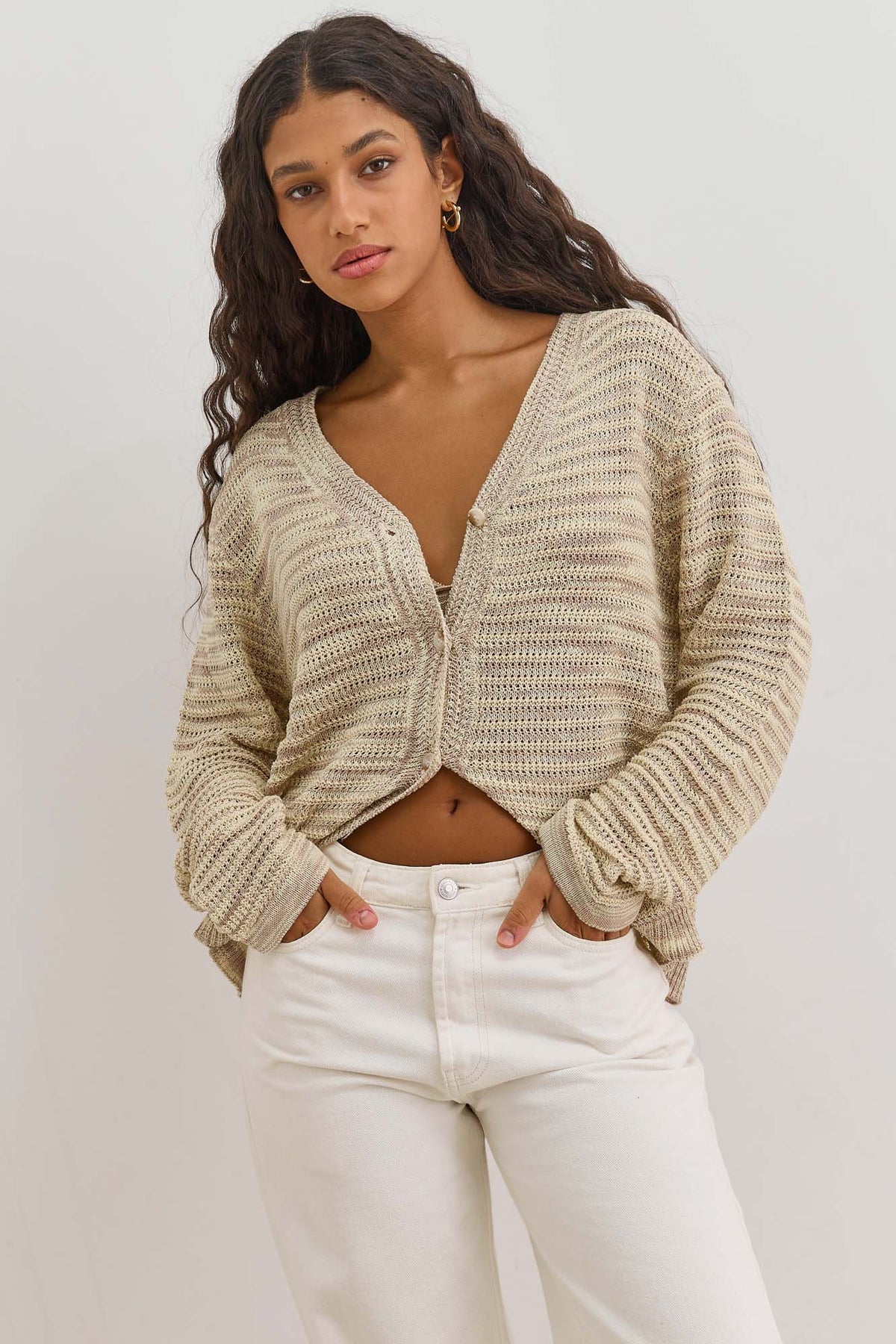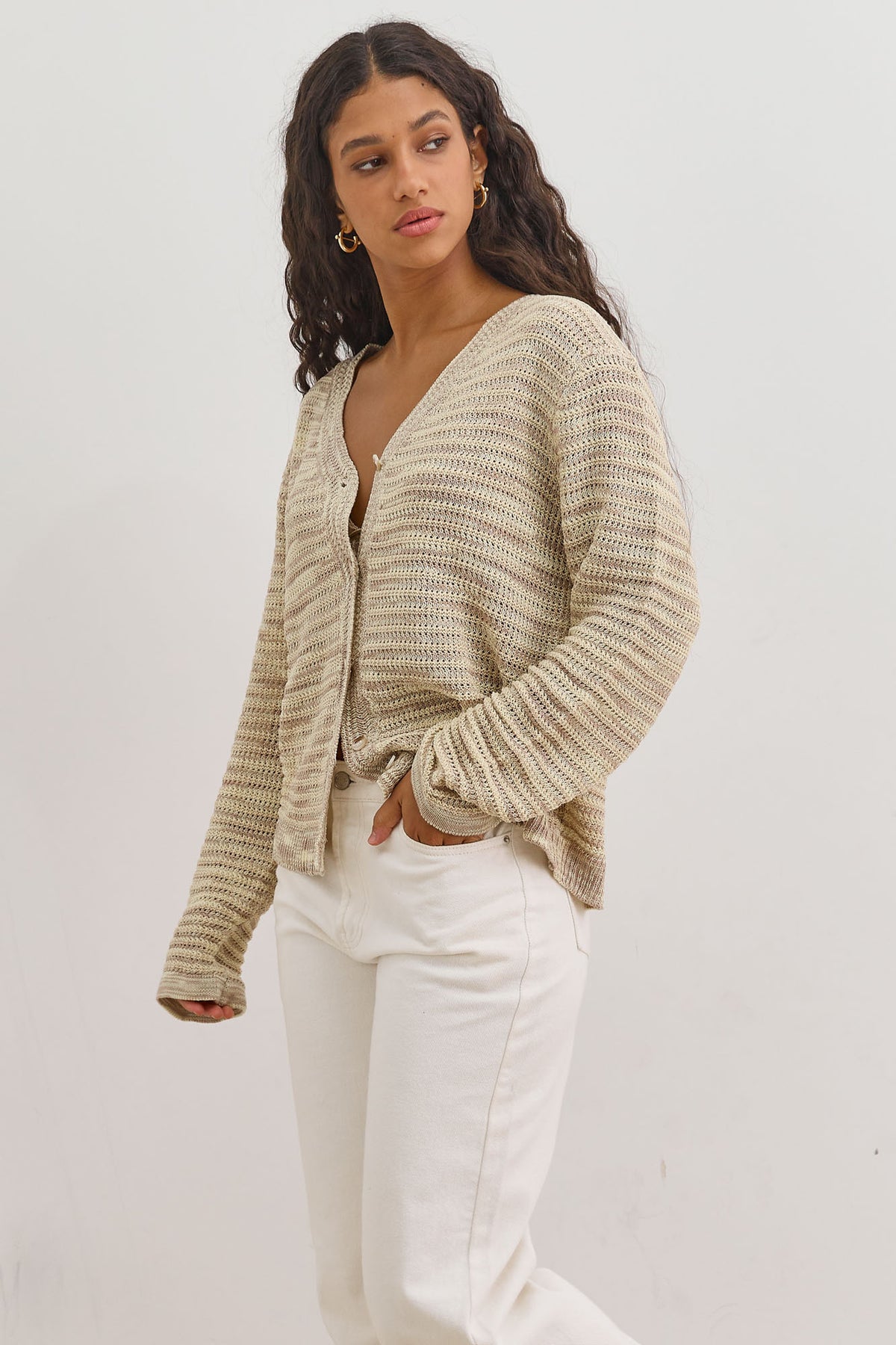 קרדיגן סריג בסריגת פסים בשילוב כפתורים