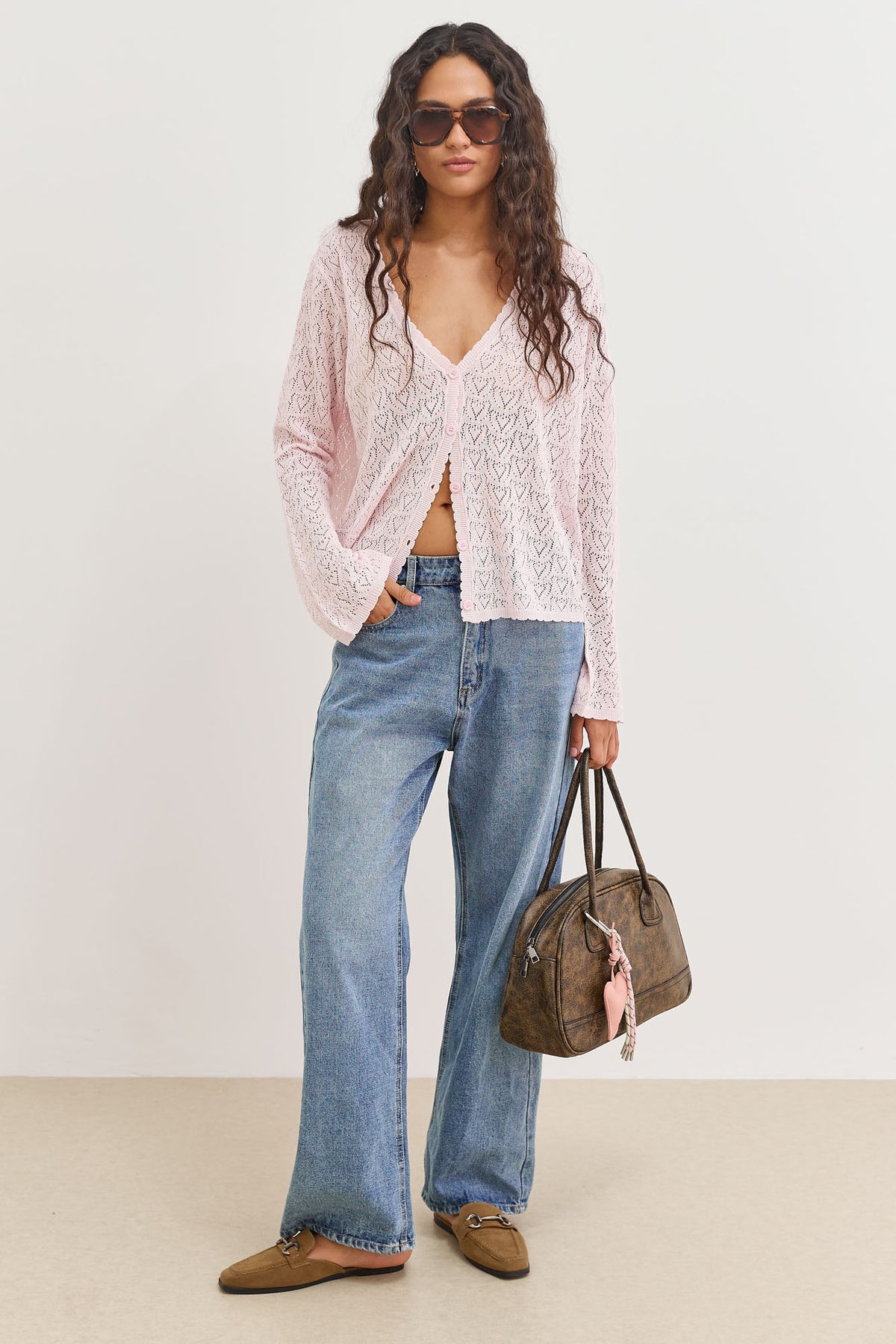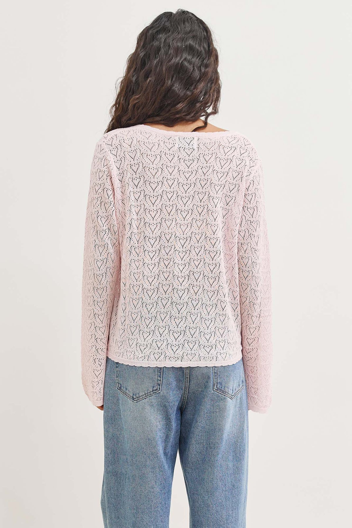 קרדיגן סריג טרייסי דוגמת לבבות | ורוד בהיר