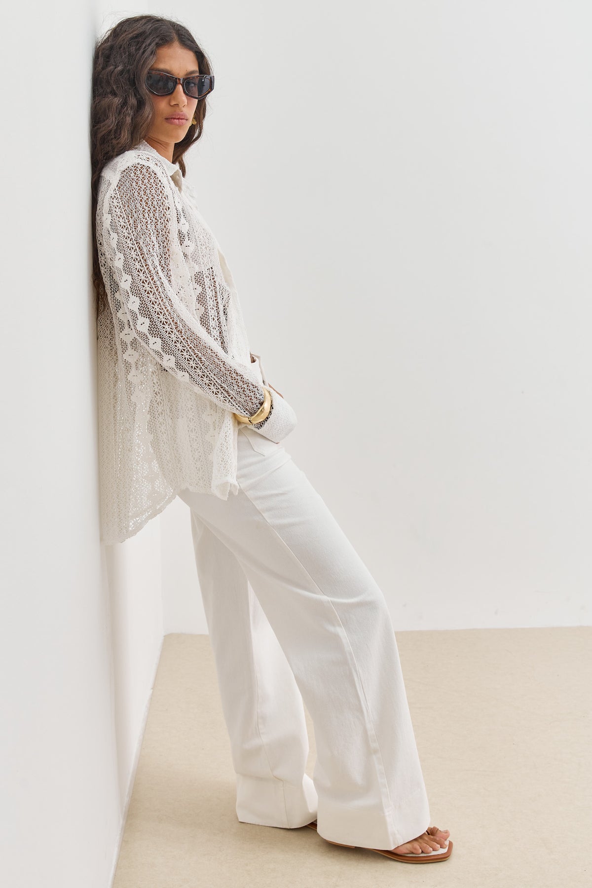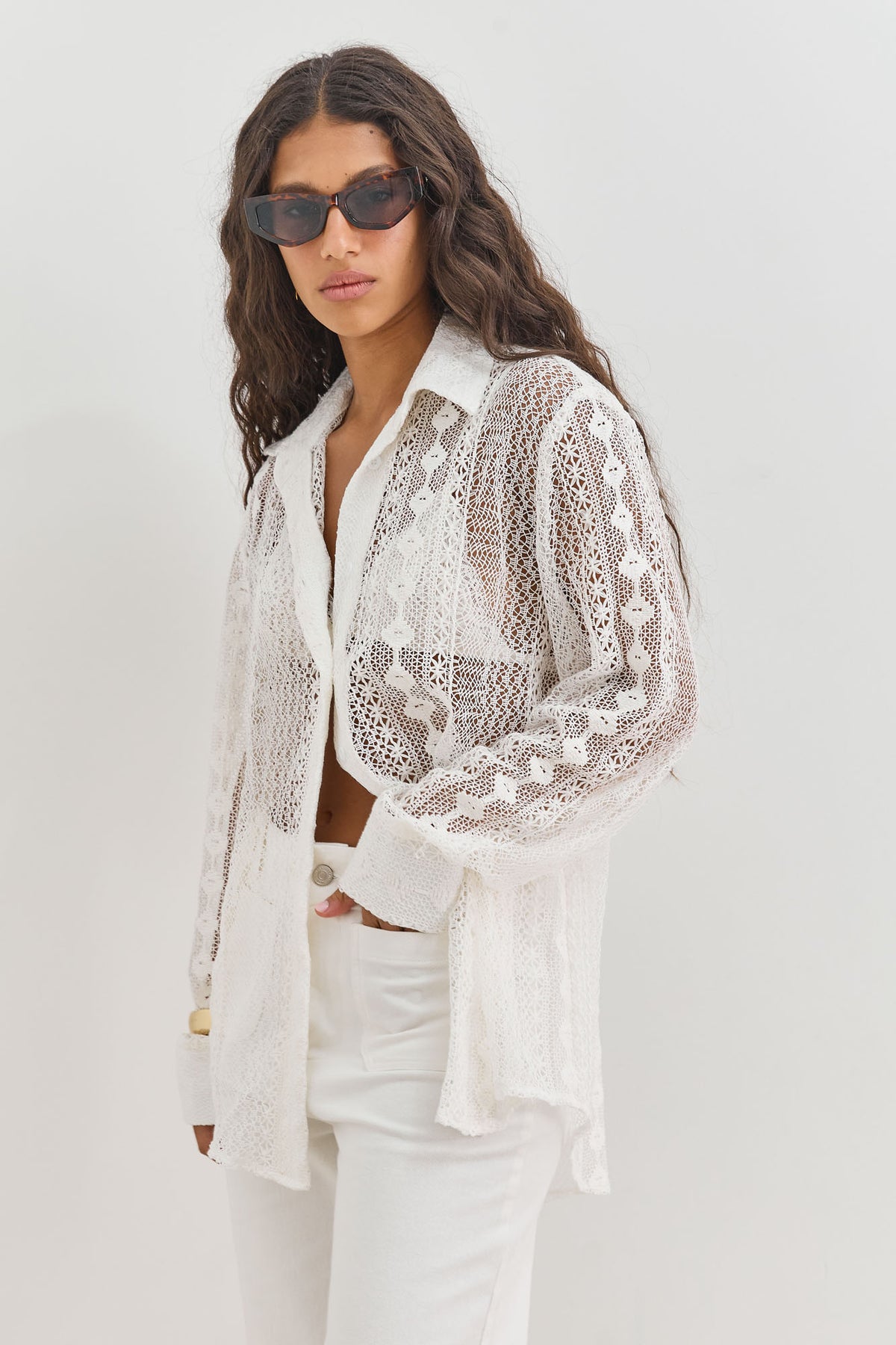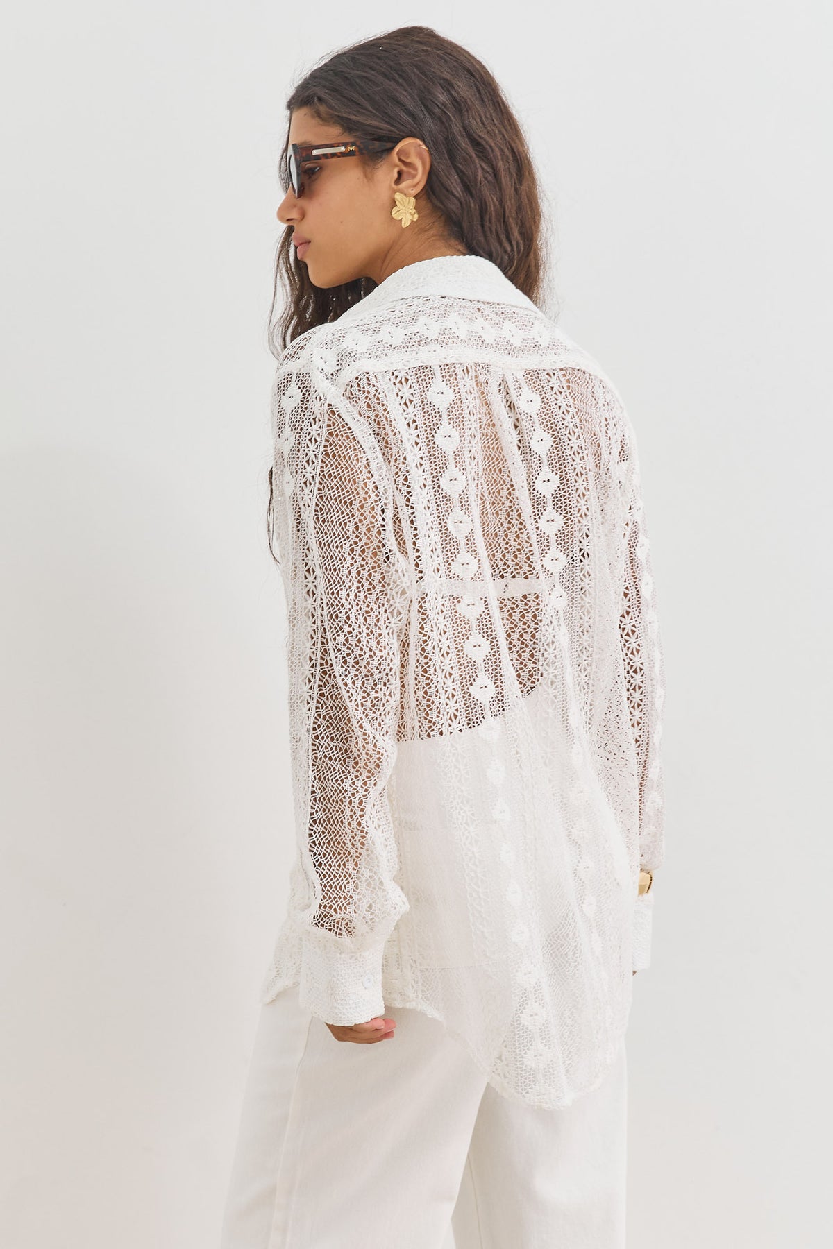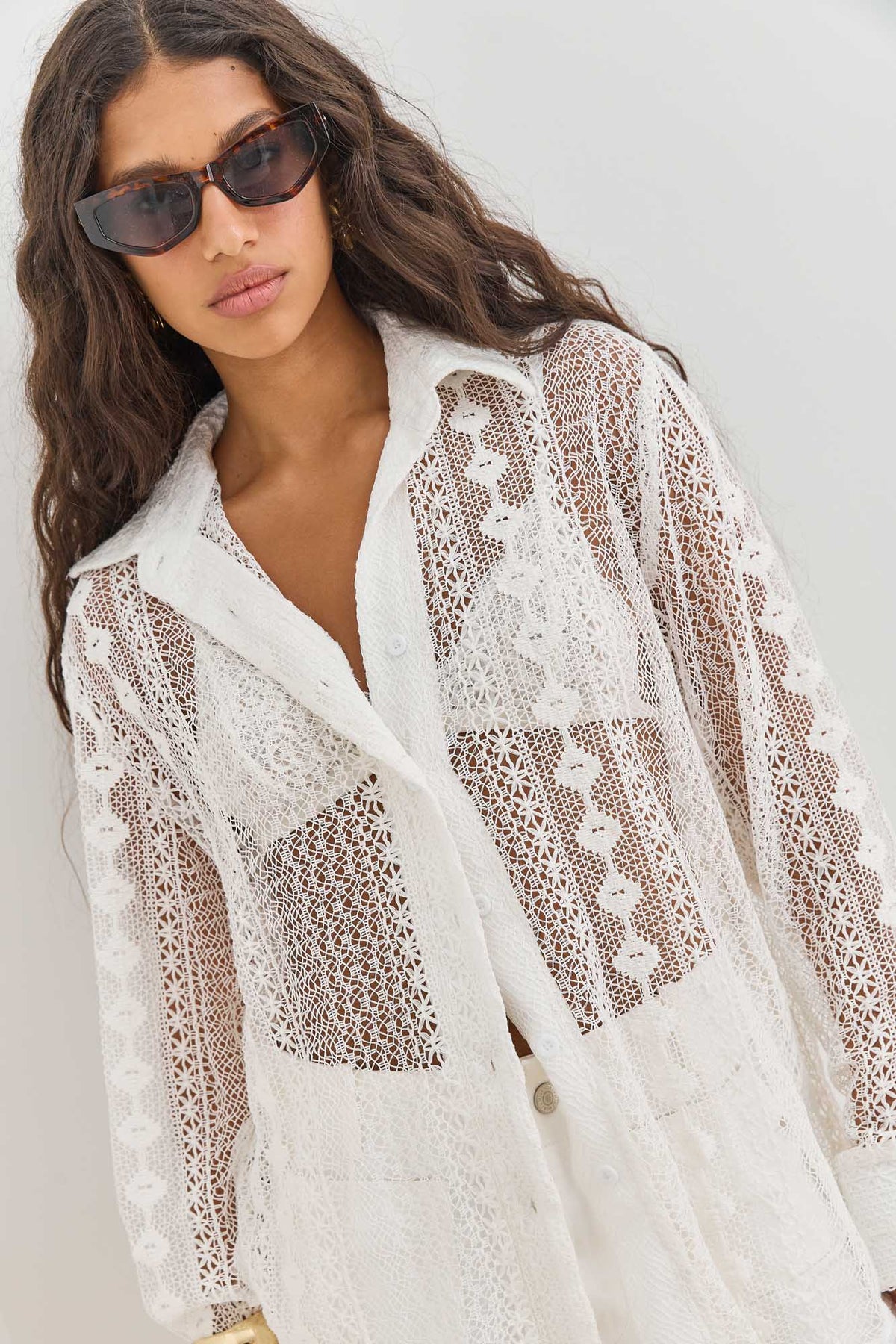 חולצה מכופתרת שקפקפה מבד תחרה עם עיטורים