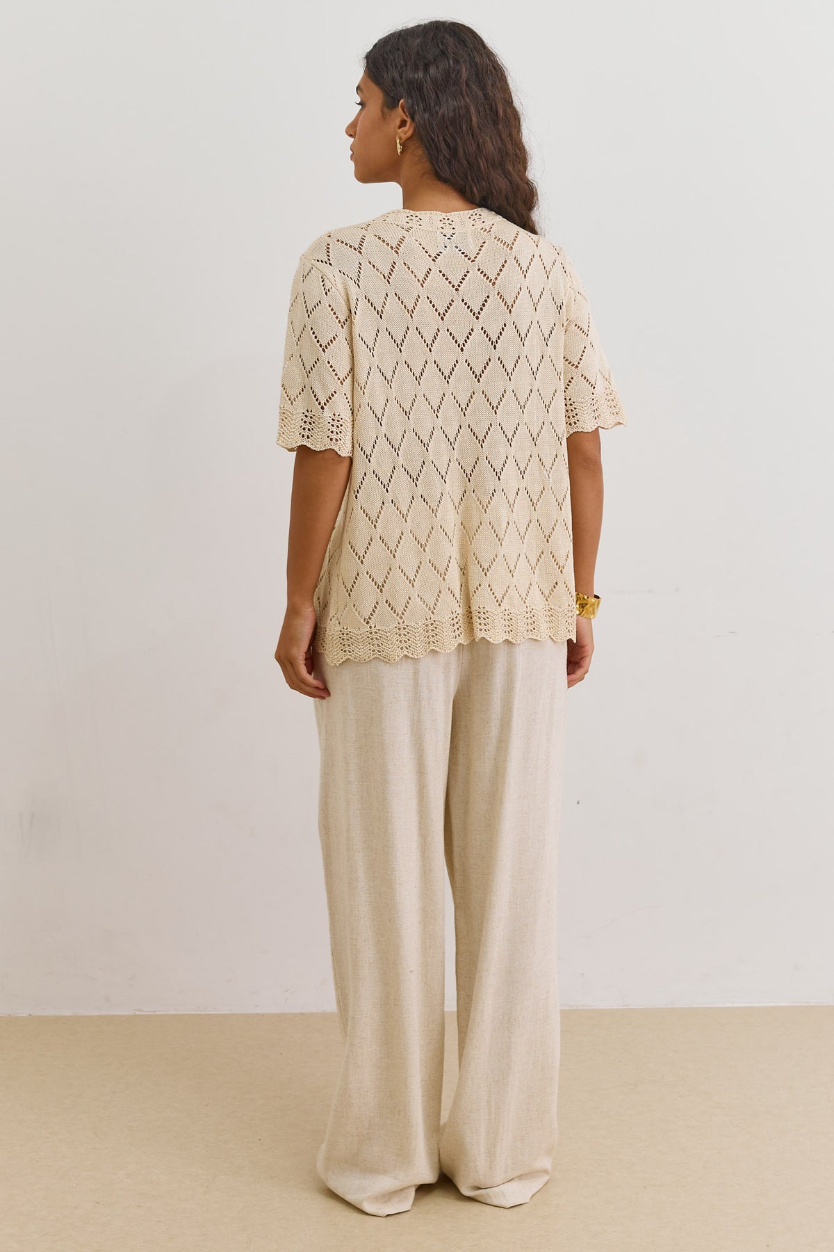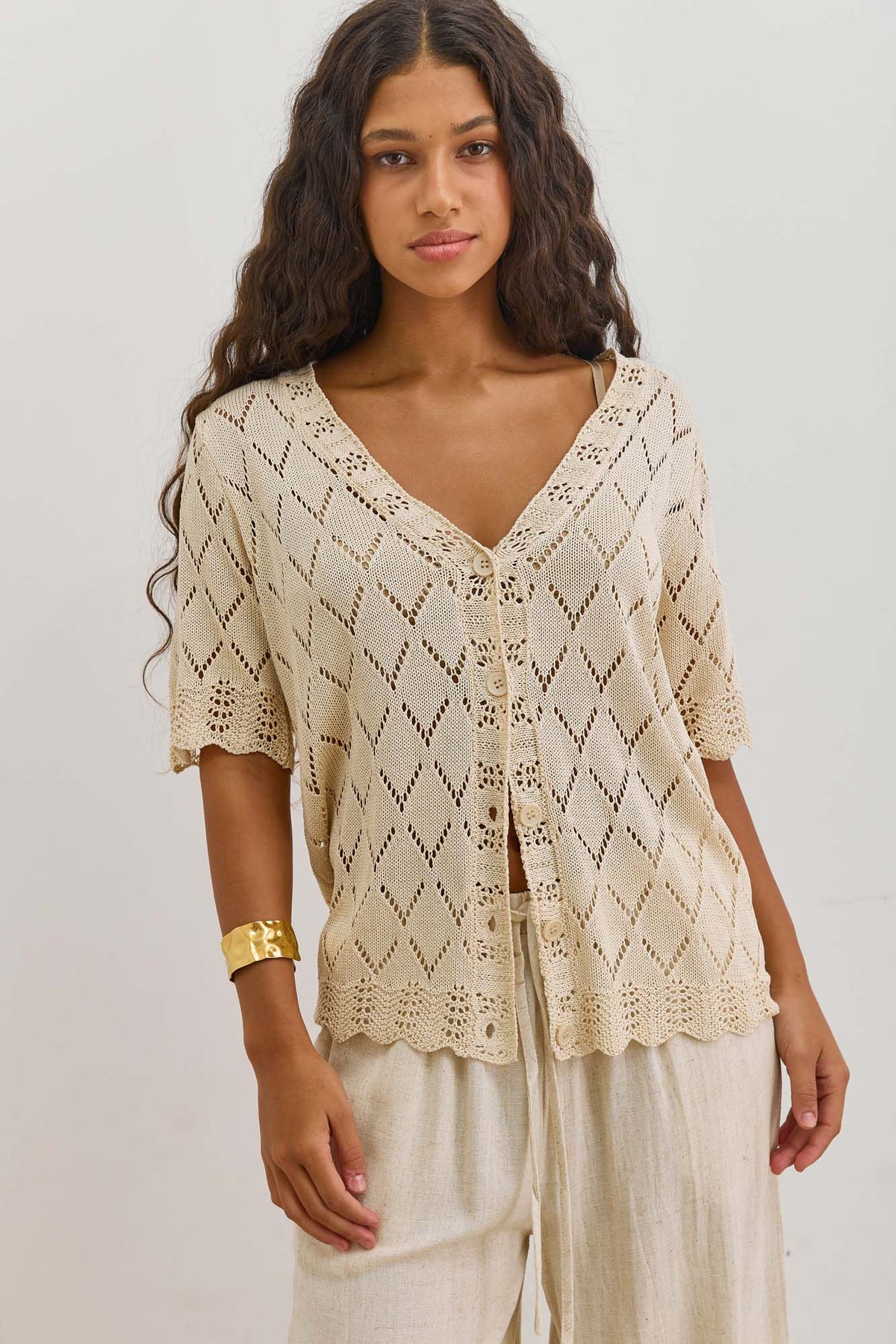 חולצה מבד סריג דק מחורר עם טקסטורה בשילוב סגירת כפתורים