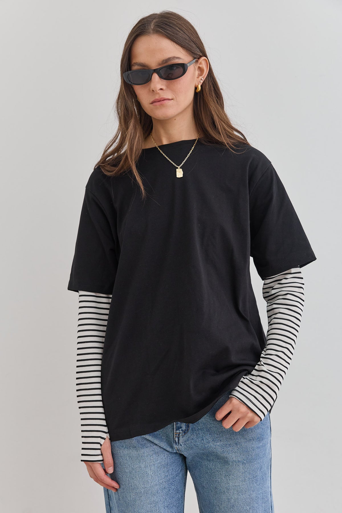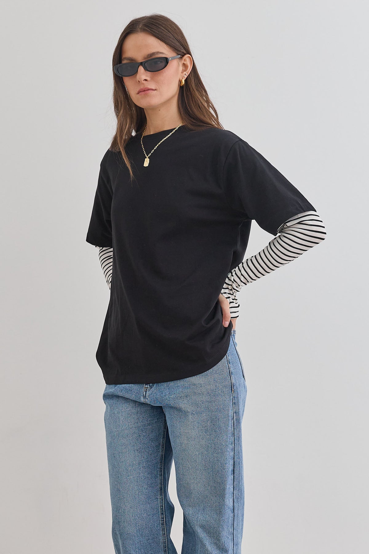 טי שירט שרוול כפול, ושרוולי כפפה ארוכים בהדפס פסים