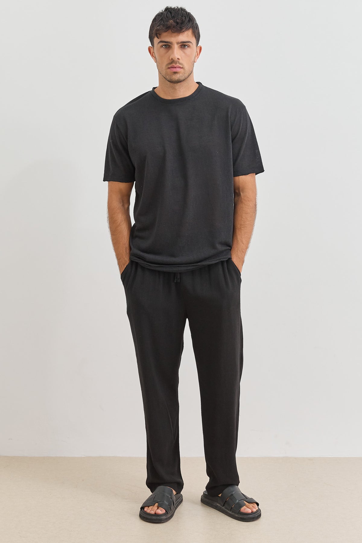 טי שירט מבד דמוי פשתן עם שרוולים קצרים בגזרה צרה