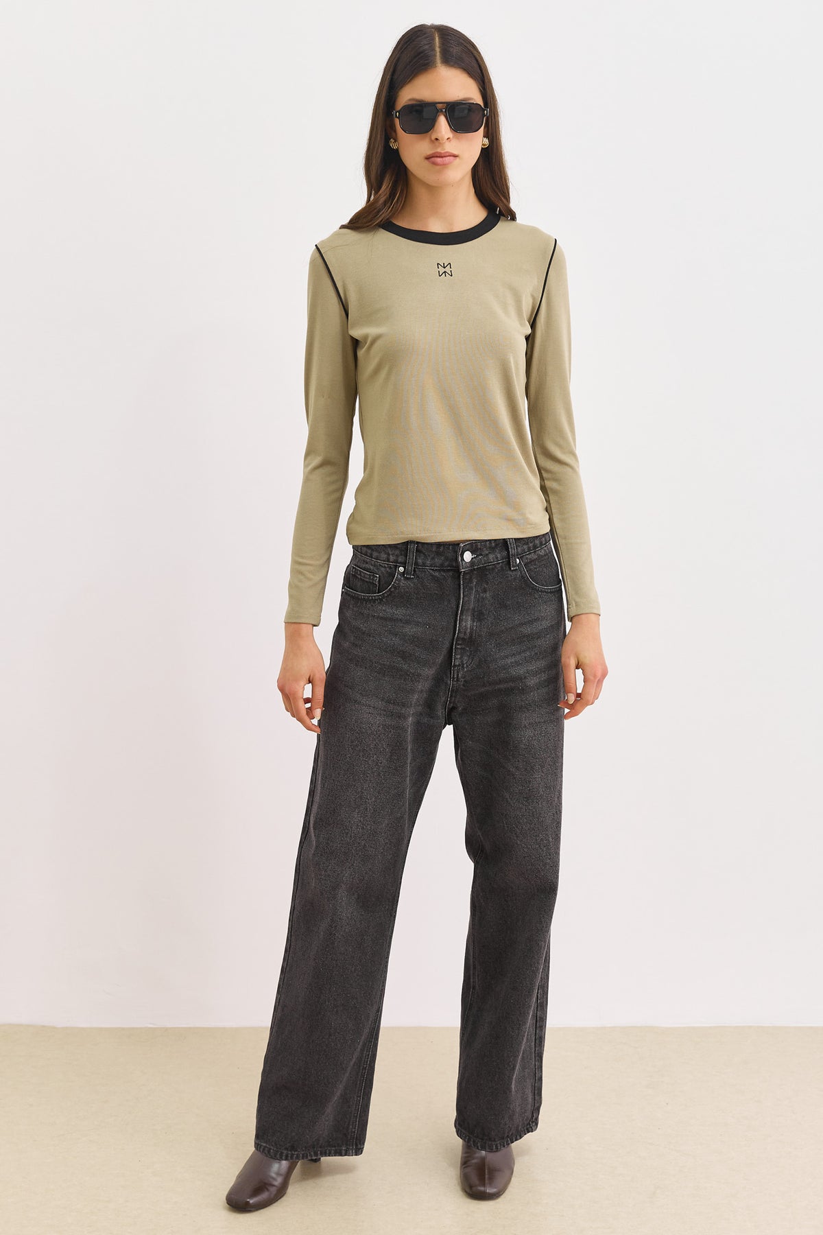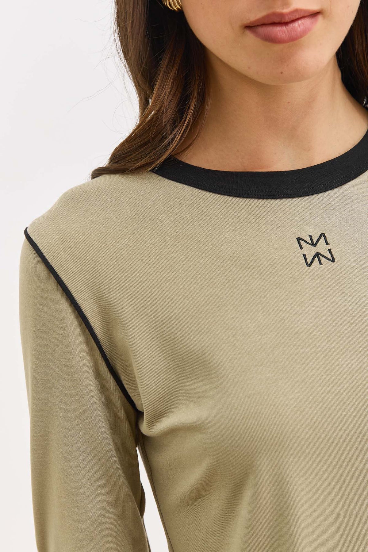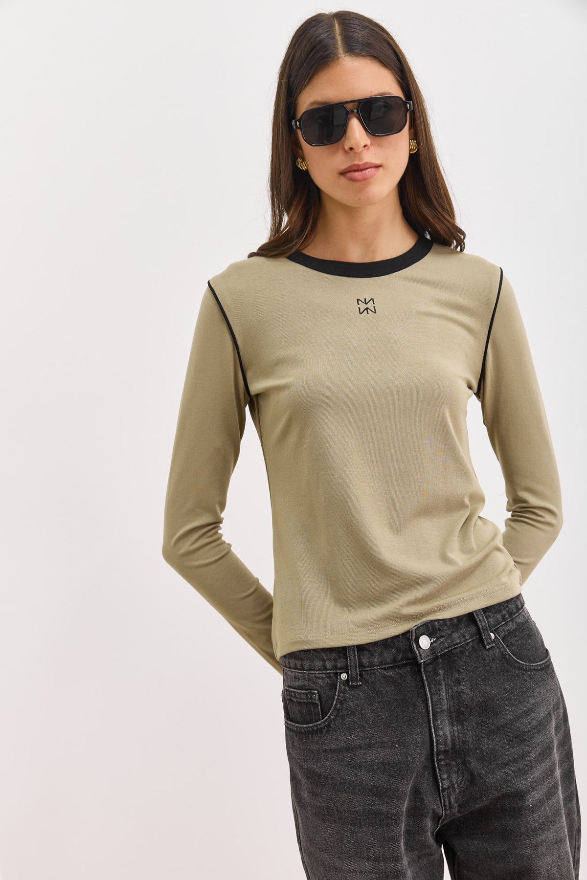 טי שירט דאבל לוגו בשילוב תיפורים בולטים | ירוק זית