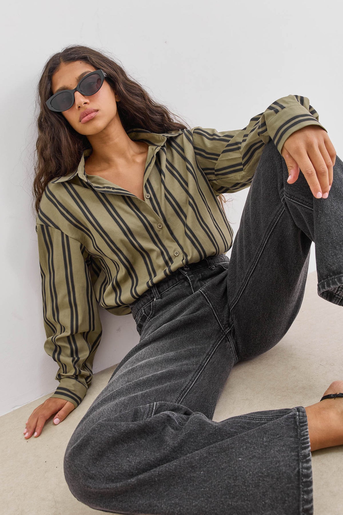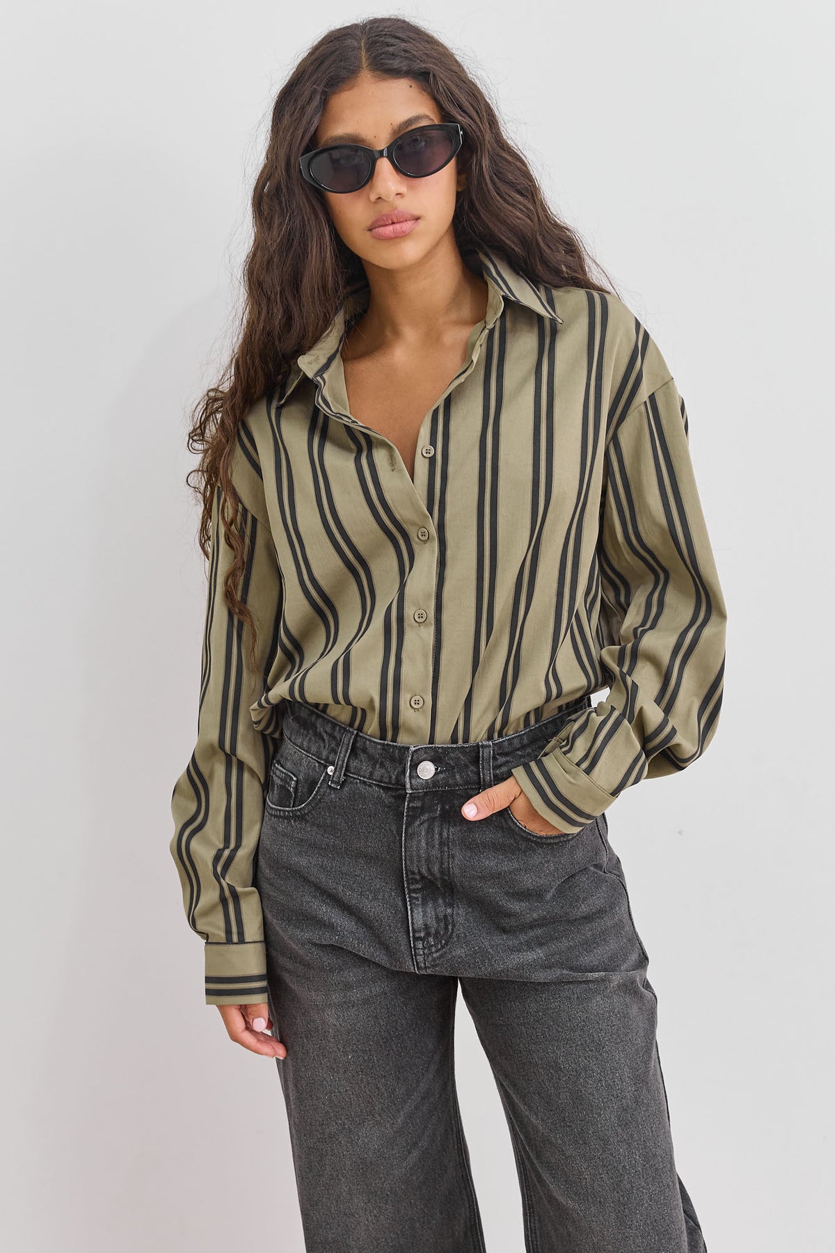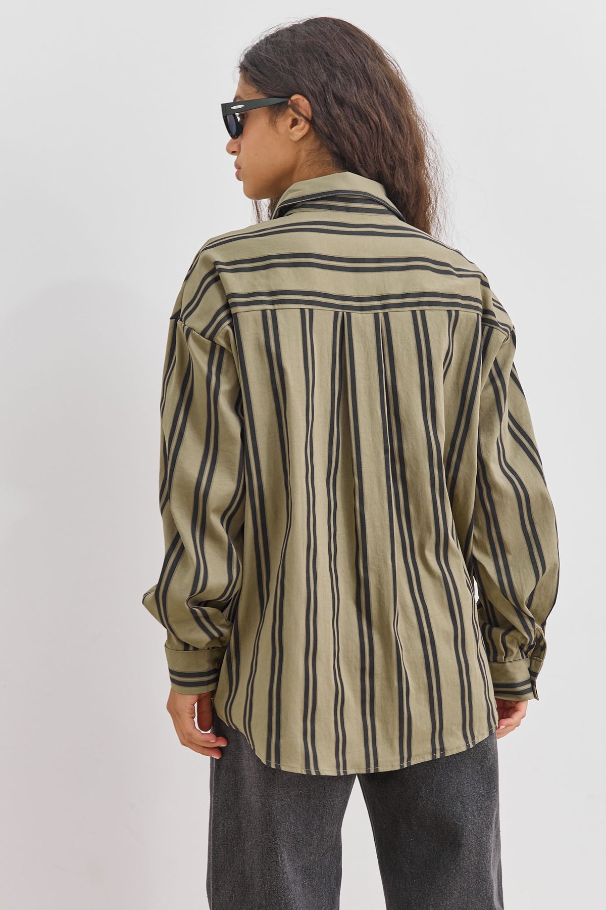 חולצה מכופתרת בגזרת אוברסייז עם הדפס פסים