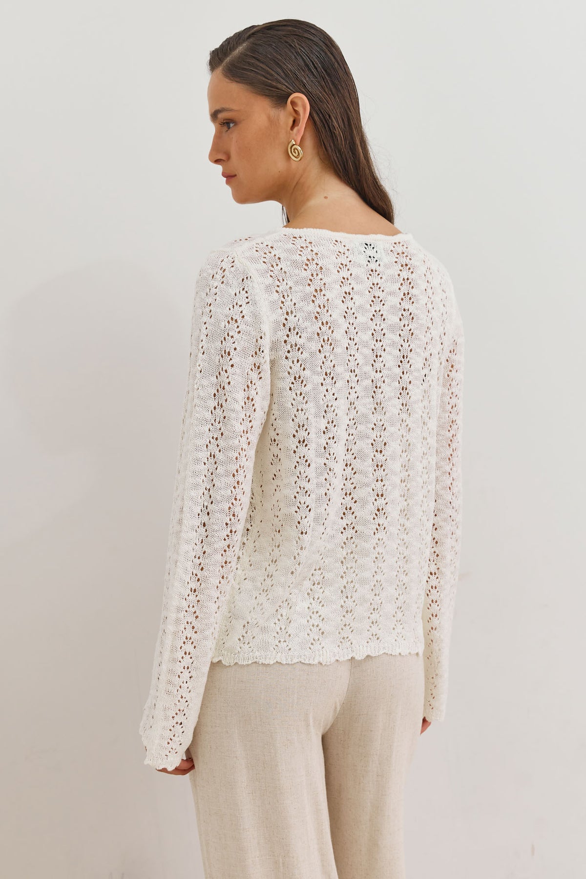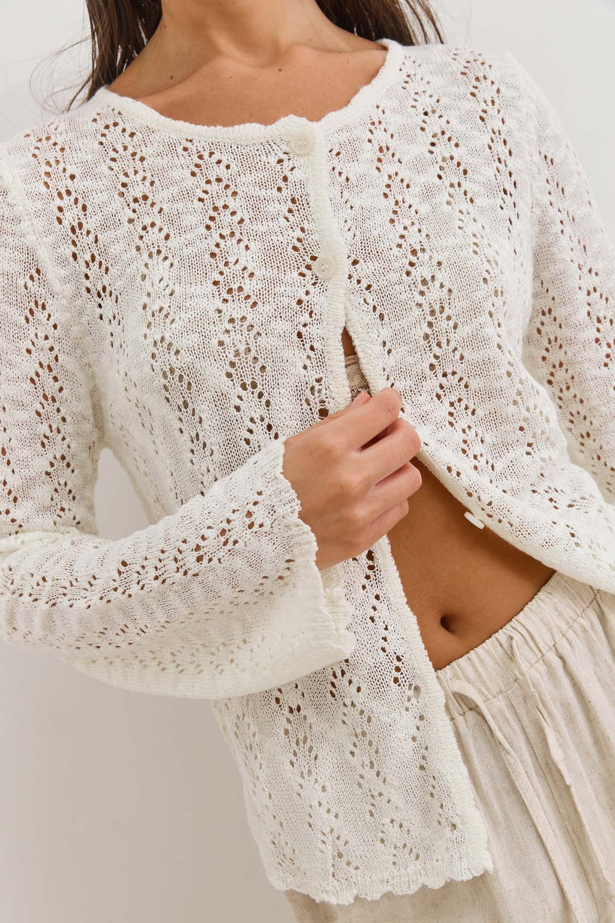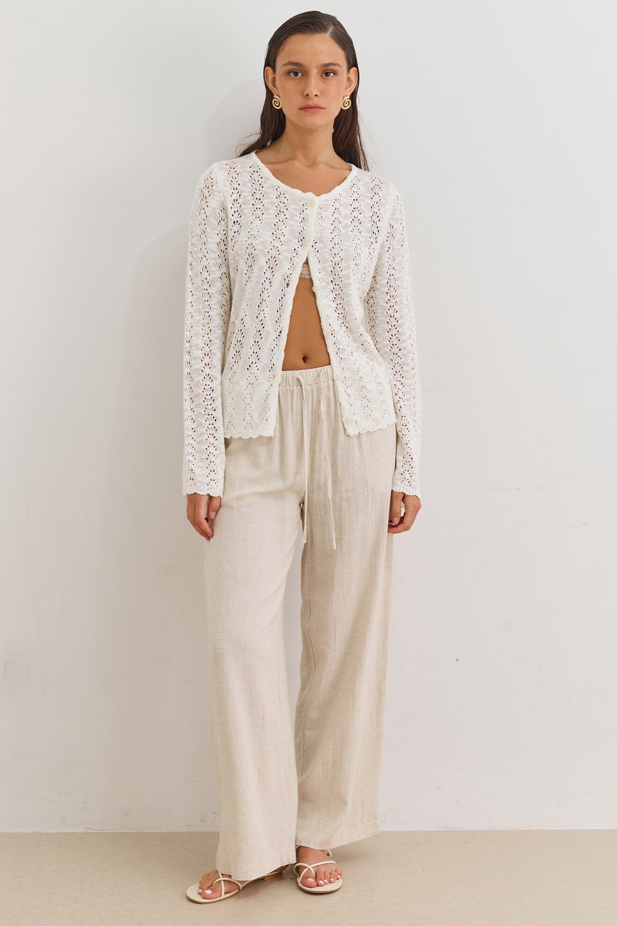 קרדיגן מבד סריג דק ושקפקף בסגירת כפתורים ובשילוב עיטורים