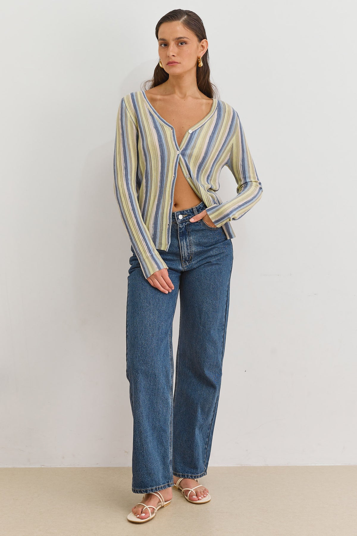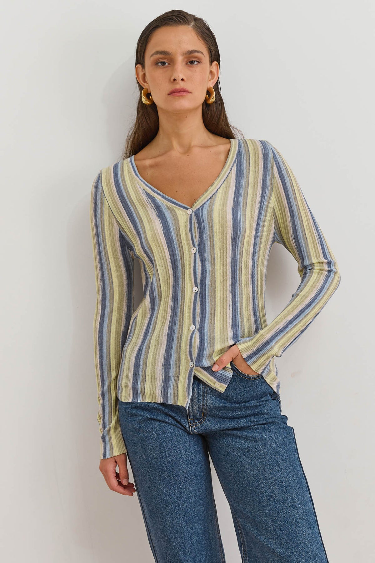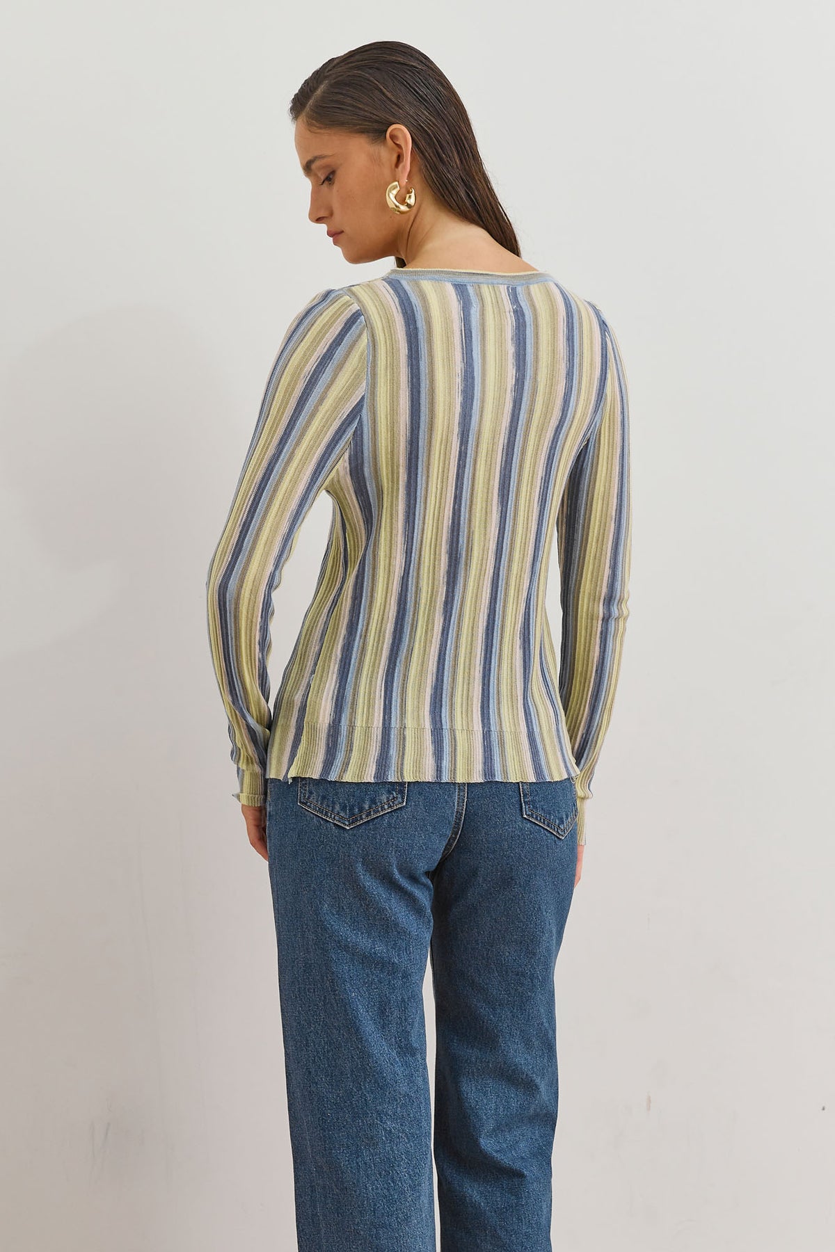PRE-ORDER חולצת סריג איזבלה סטרייפס | כחול/צהוב