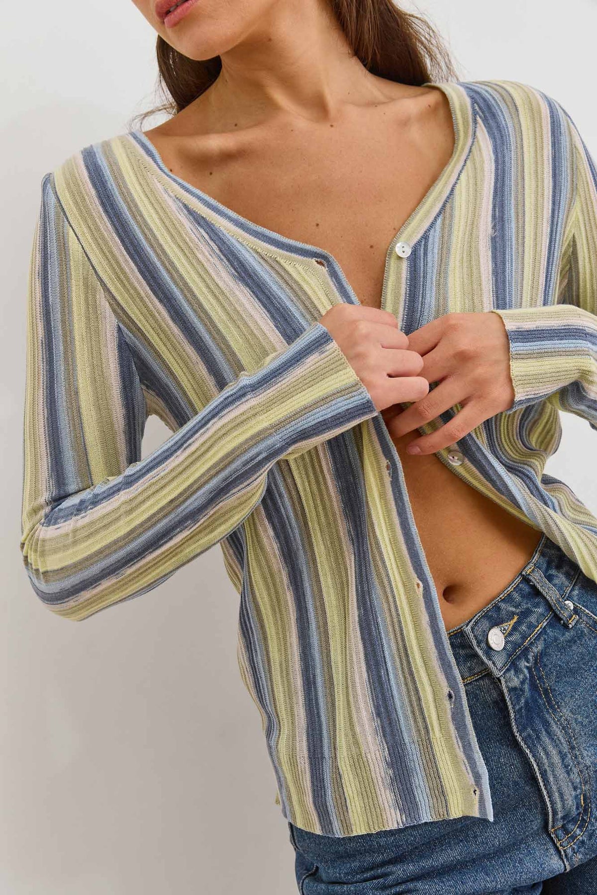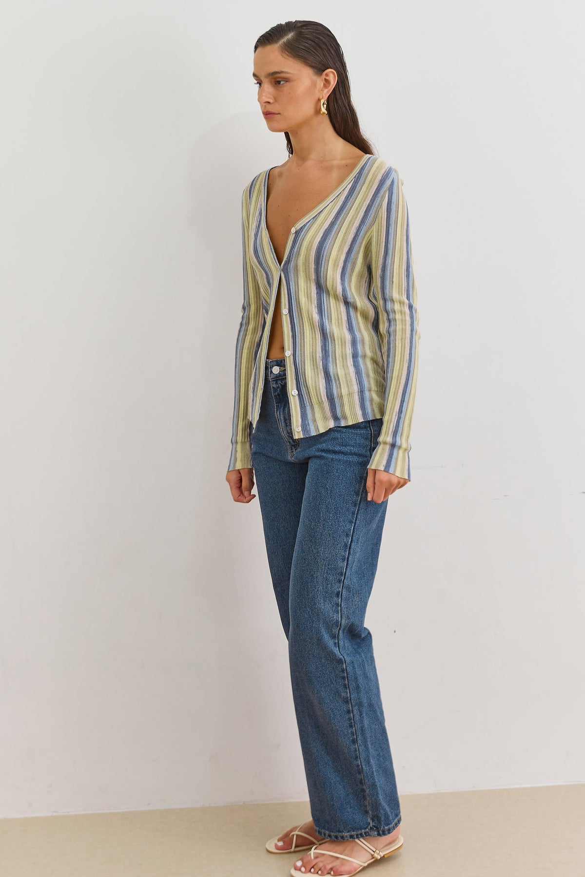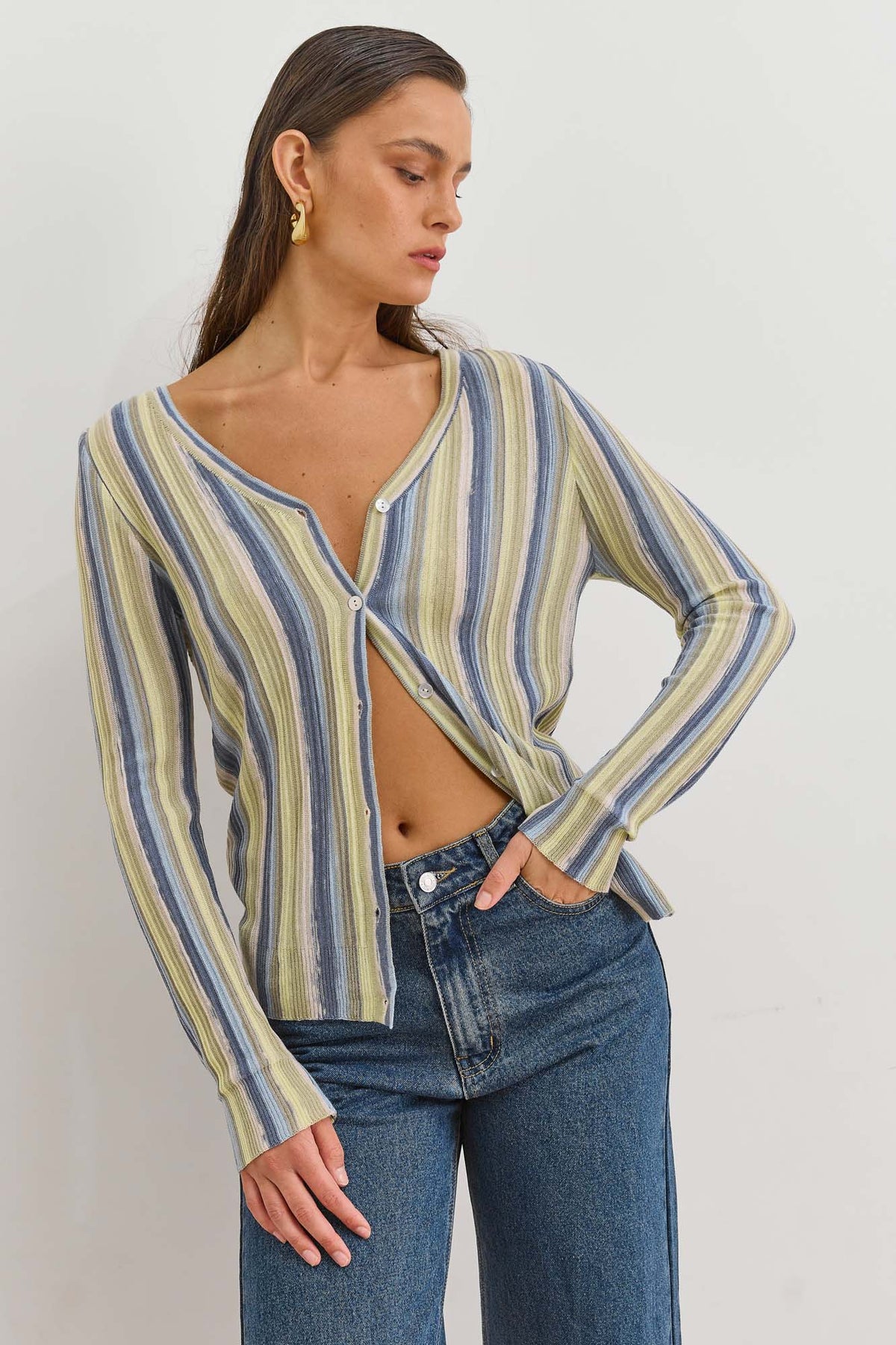 PRE-ORDER חולצת סריג איזבלה סטרייפס | כחול/צהוב