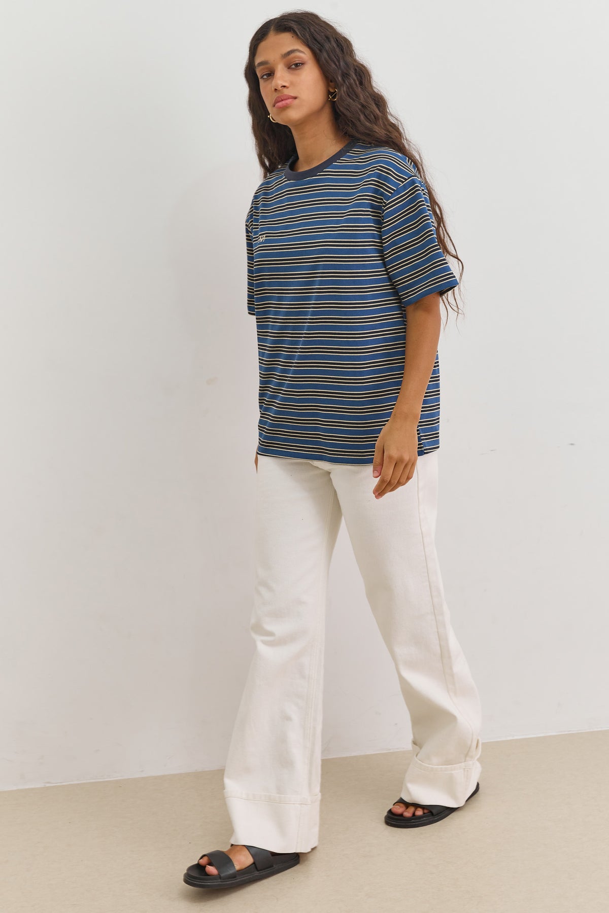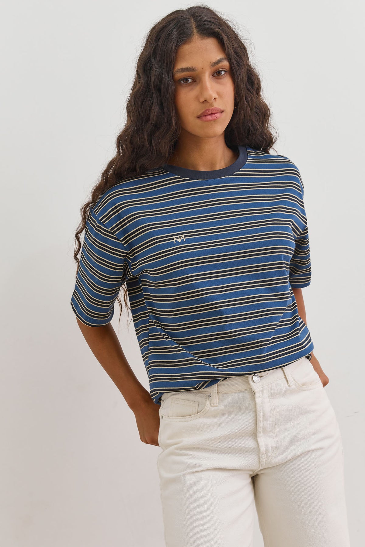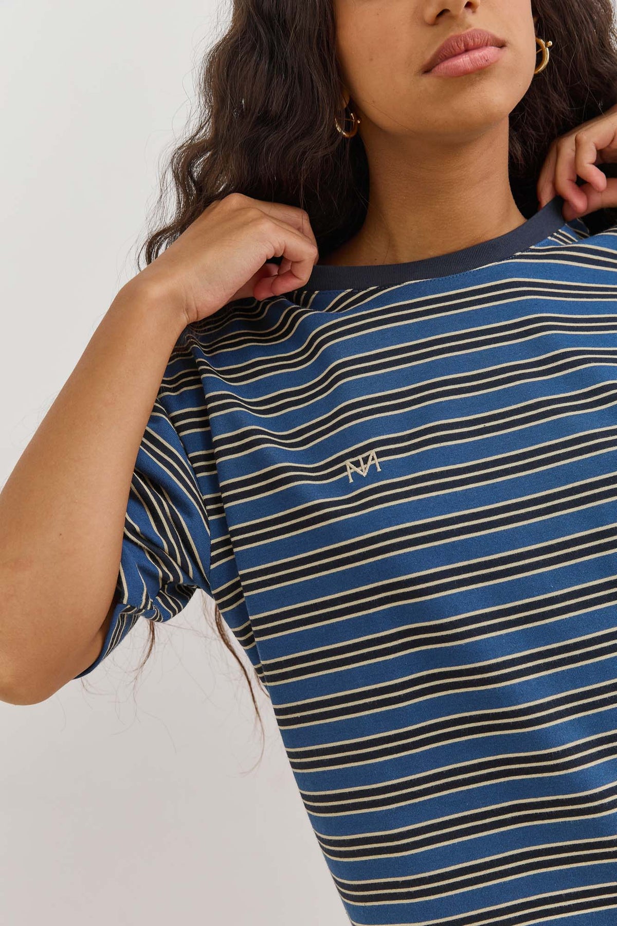 טי שירט עם שרוולים קצרים, צווארון ניקי, דוגמת פסים ורקמת לוגו