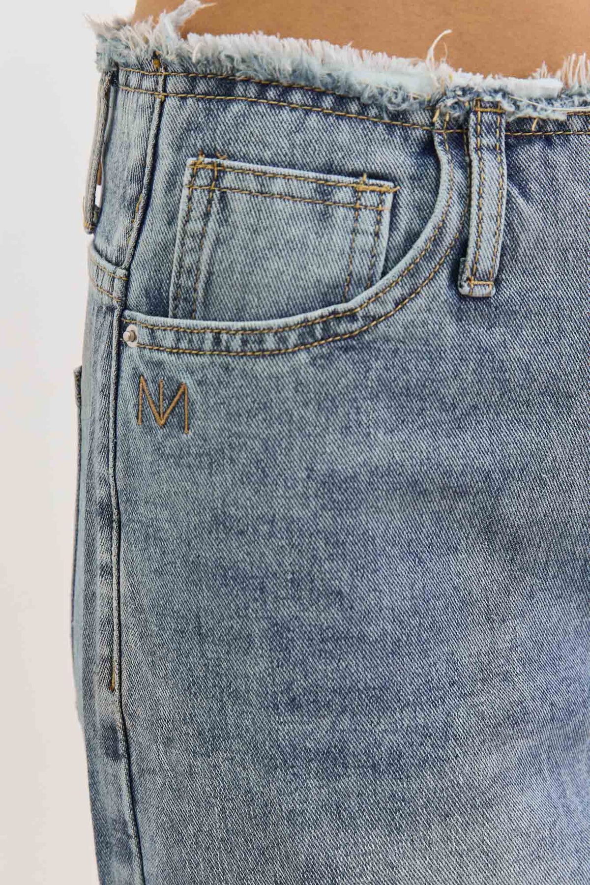 מכנסי דנים גבי בשילוב חגורה גזורה | ג&