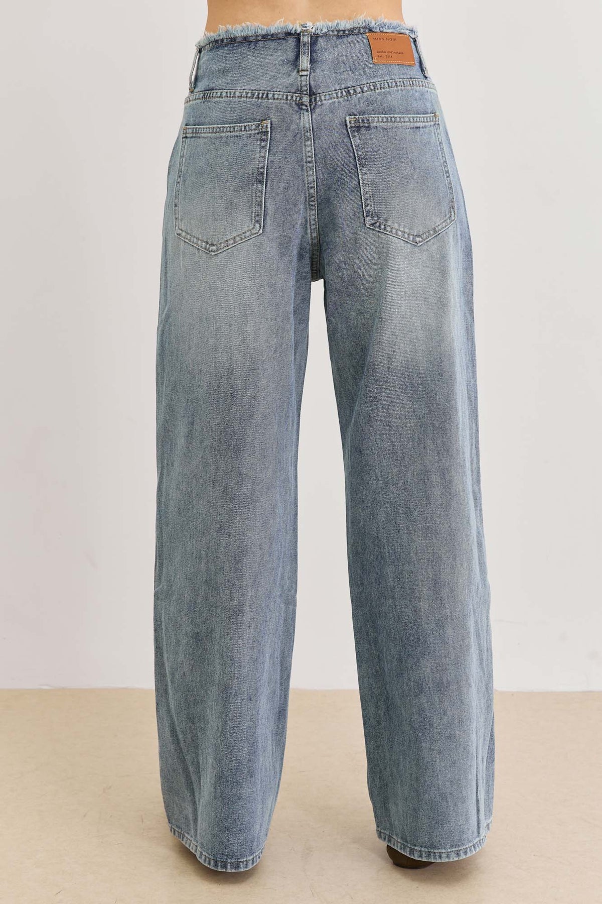 מכנסי דנים גבי בשילוב חגורה גזורה | ג'ינס