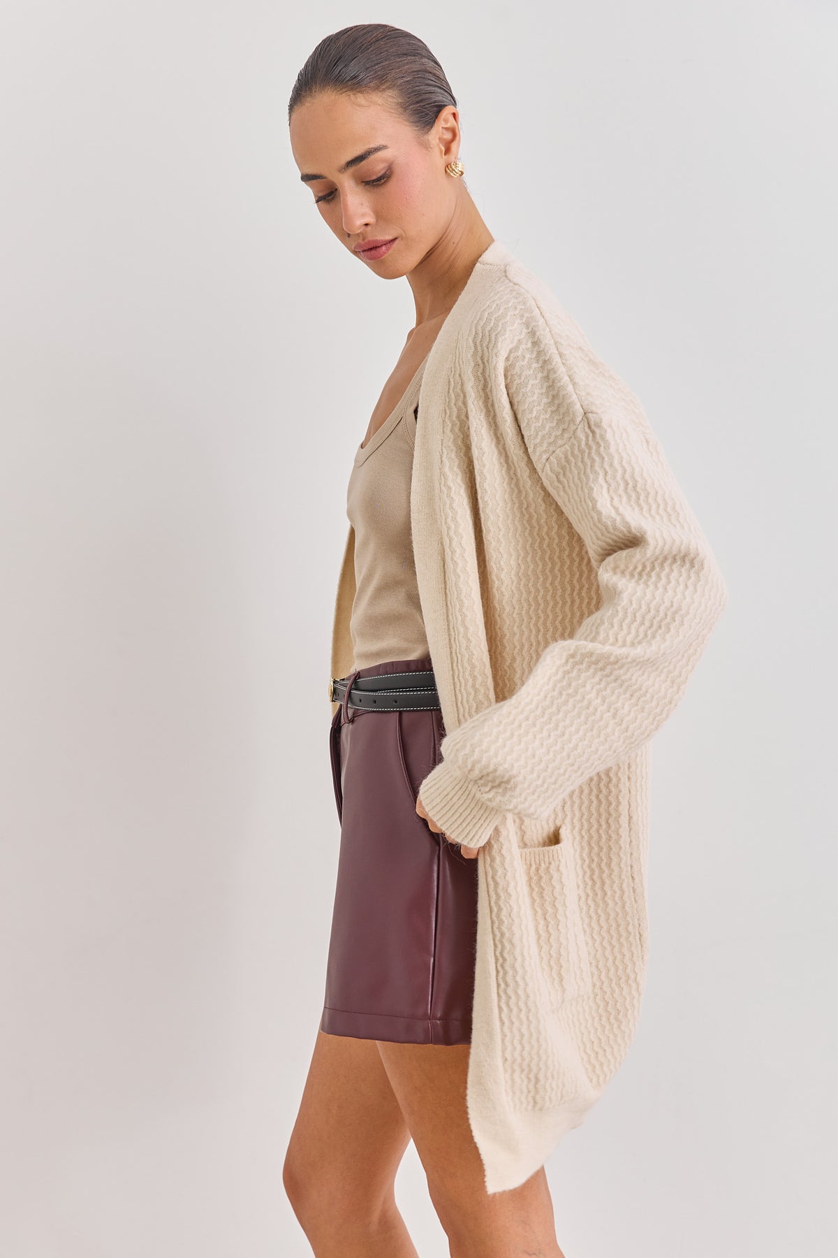 קרדיגן מבד סריג בגזרת אוברסייז בשילוב כיסים וטקסטורת זיג זג