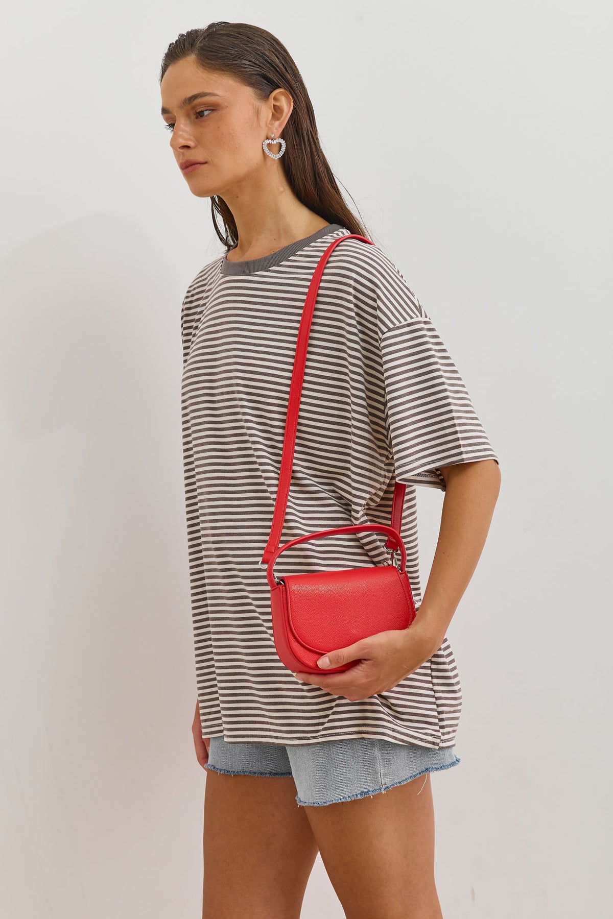 תיק קטן דמוי עור עם תא אחסון פנימי בסגירת כפתור מגנטי ורוכסן