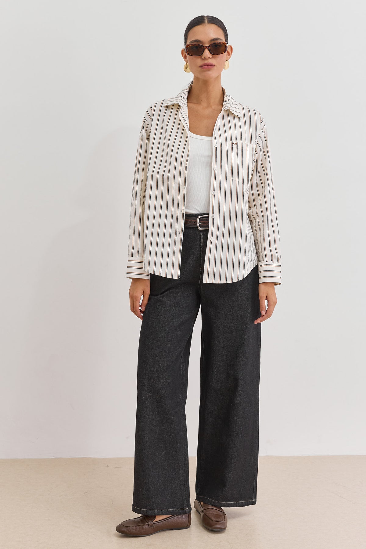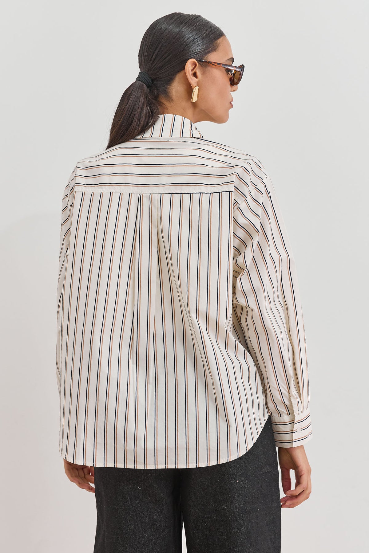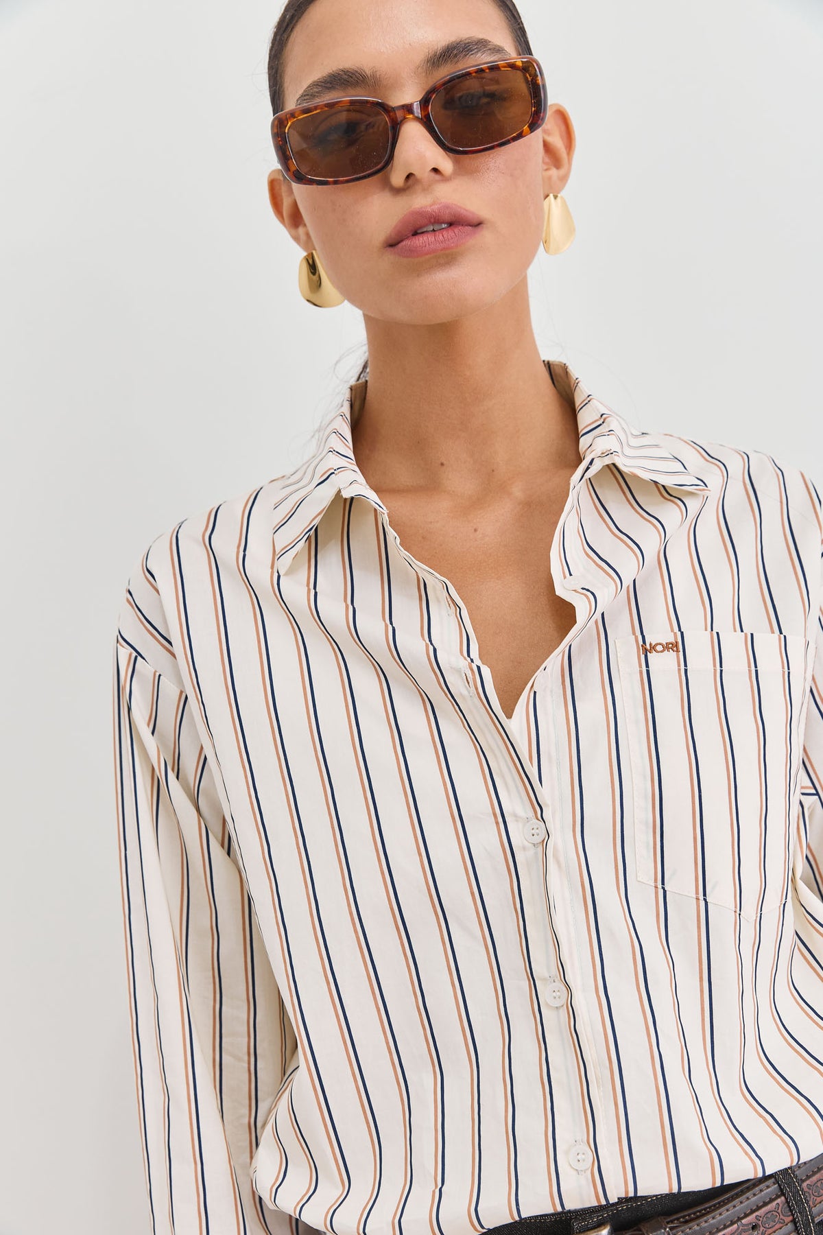 חולצה מכופתרת עם דוגמת פסים בשילוב לוגו