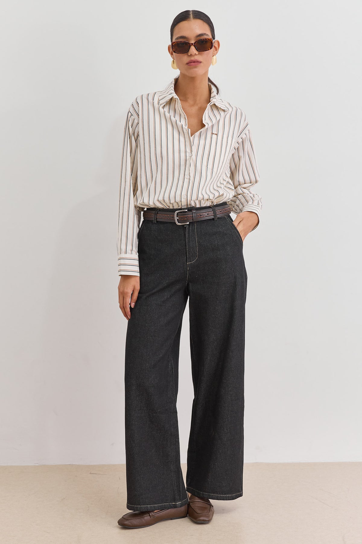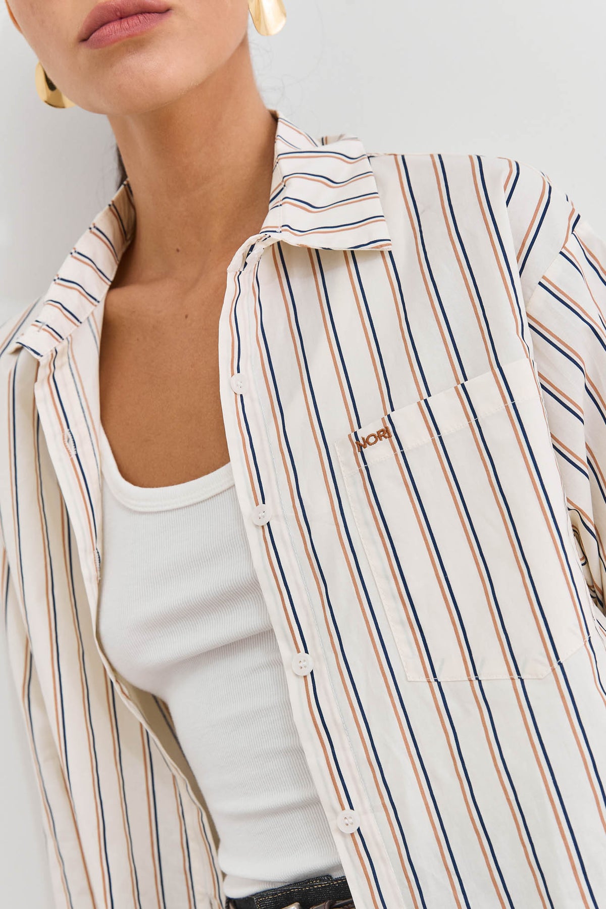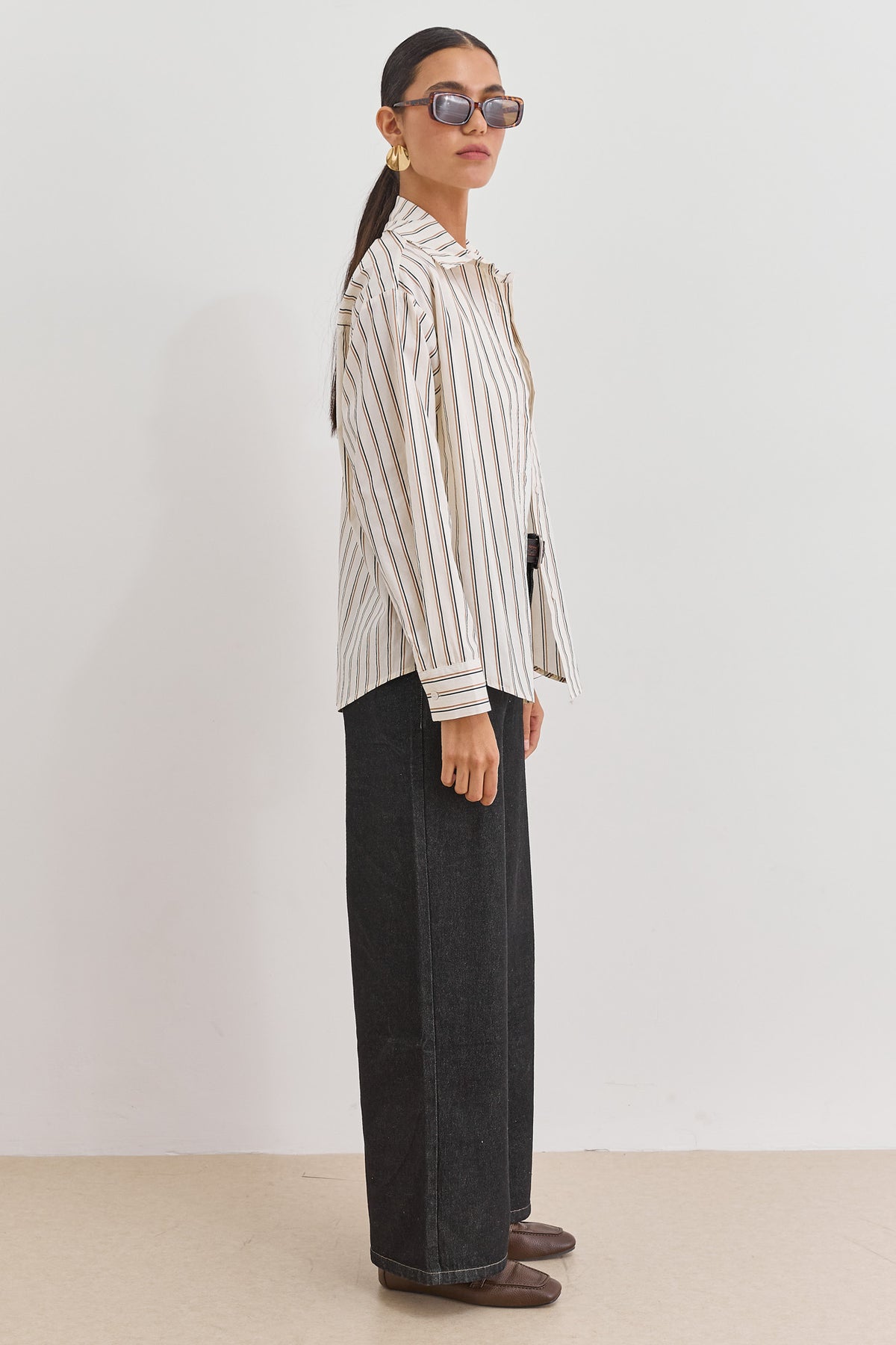 חולצה מכופתרת עם דוגמת פסים בשילוב לוגו