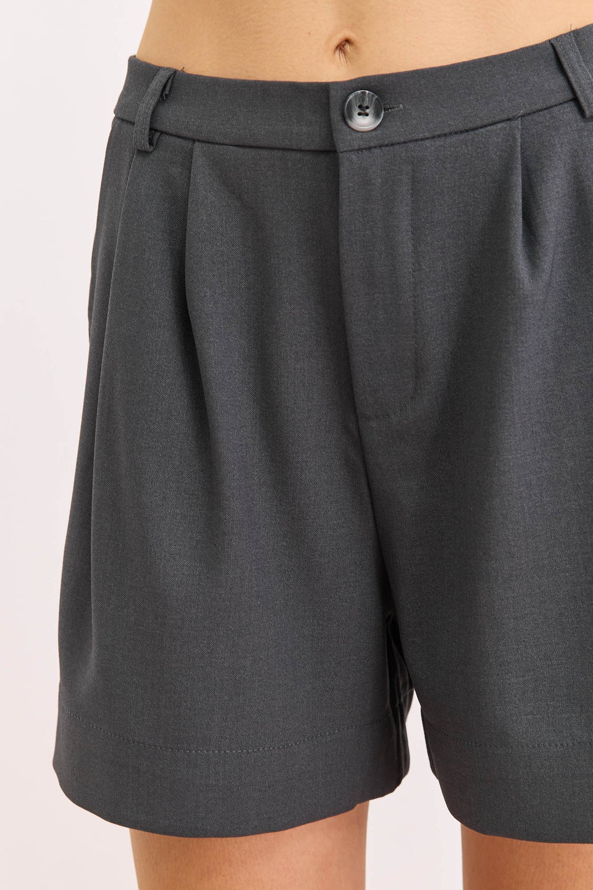 מכנסיים קצרים בגזרה מחויטת עם קפלים, כיסים וגומי במותן