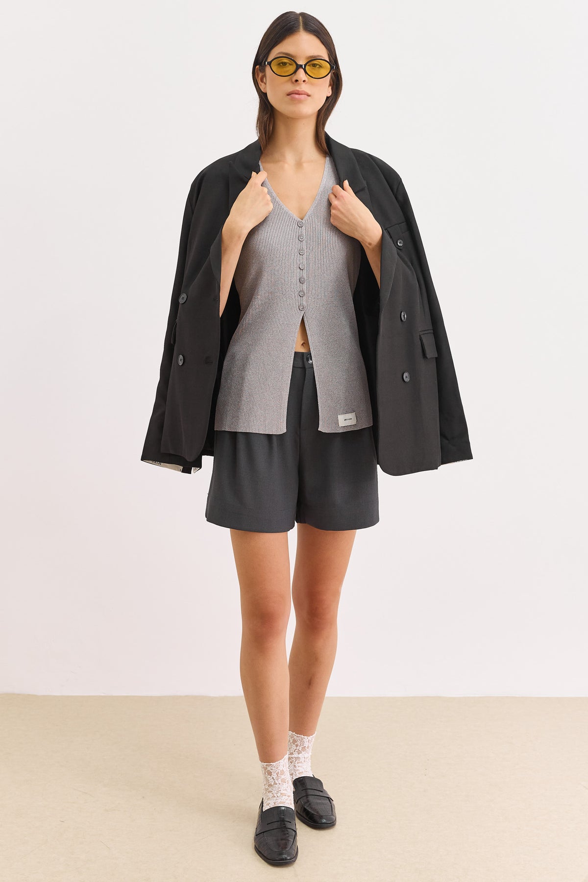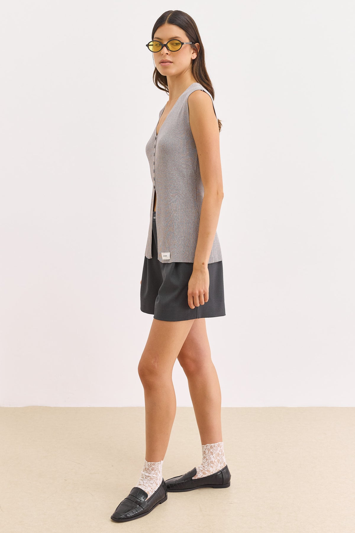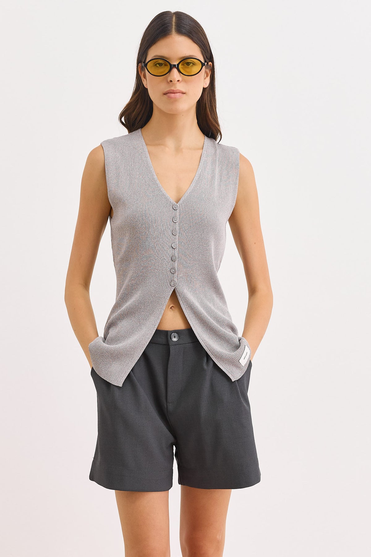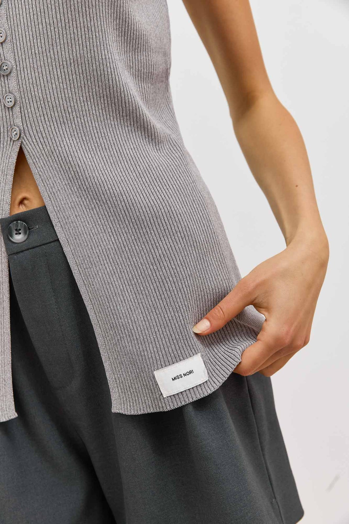 ווסט סריג קיטון בשילוב לייבל | אפור
