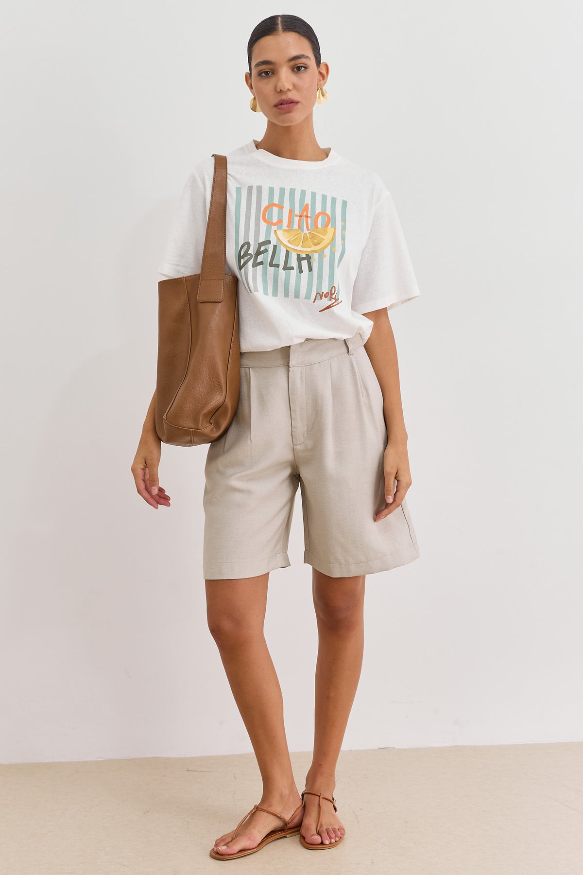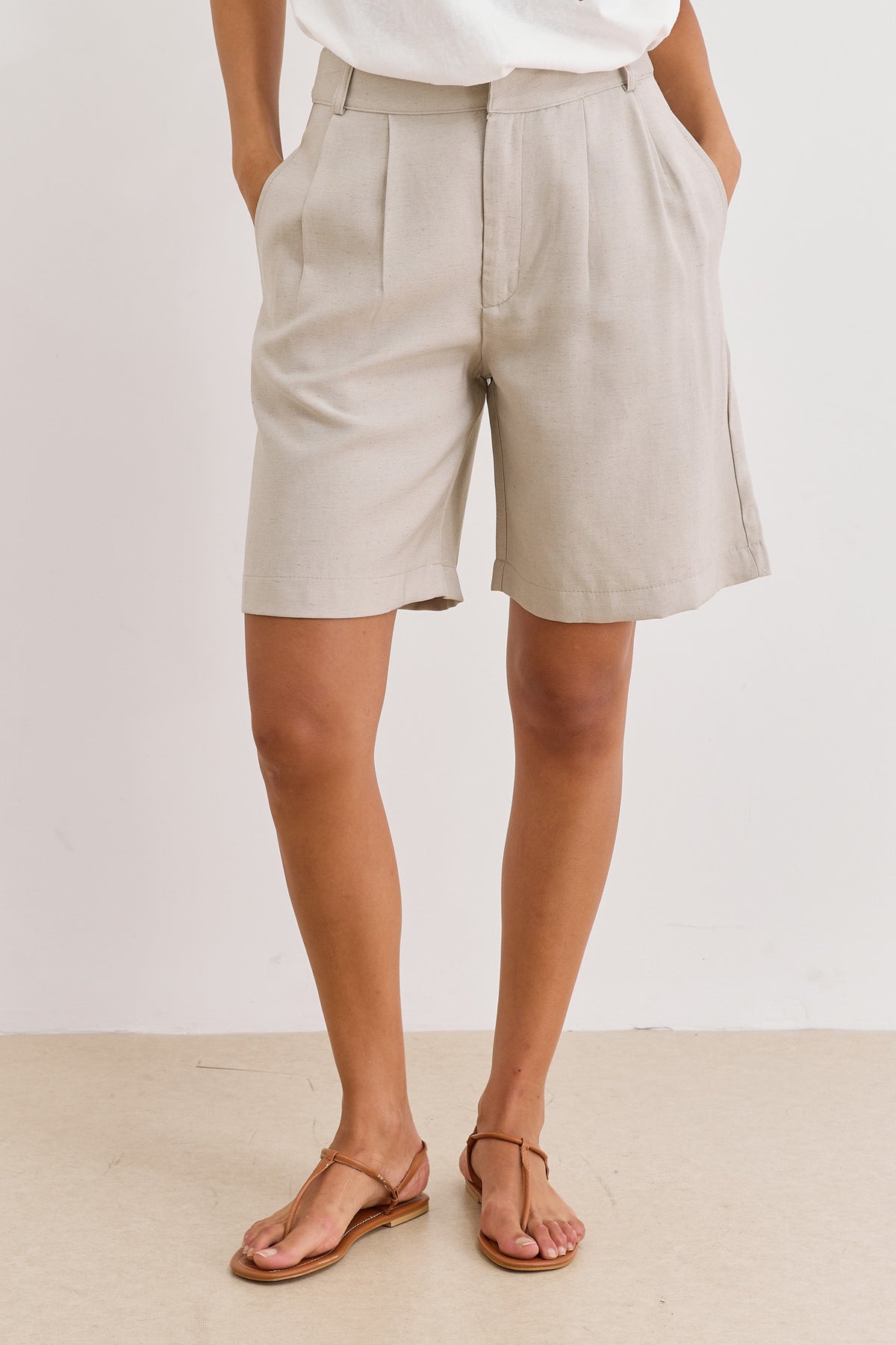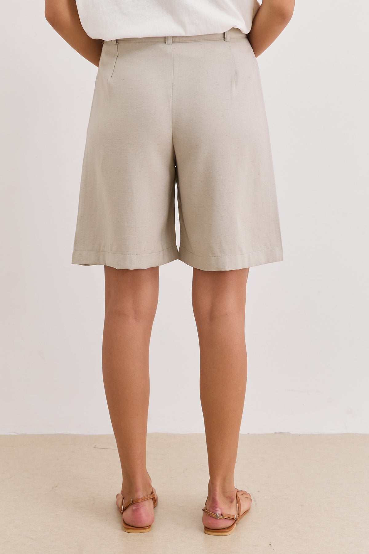 מכנסי ברמודה מבד דמוי פשתן בגזרה מחויטת עם קפלים וכיסים