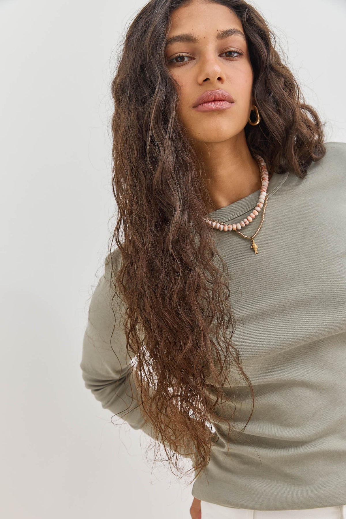 חולצת בייסיק בשילוב שרוול כפפה - שתשדרג לך את הלוק.