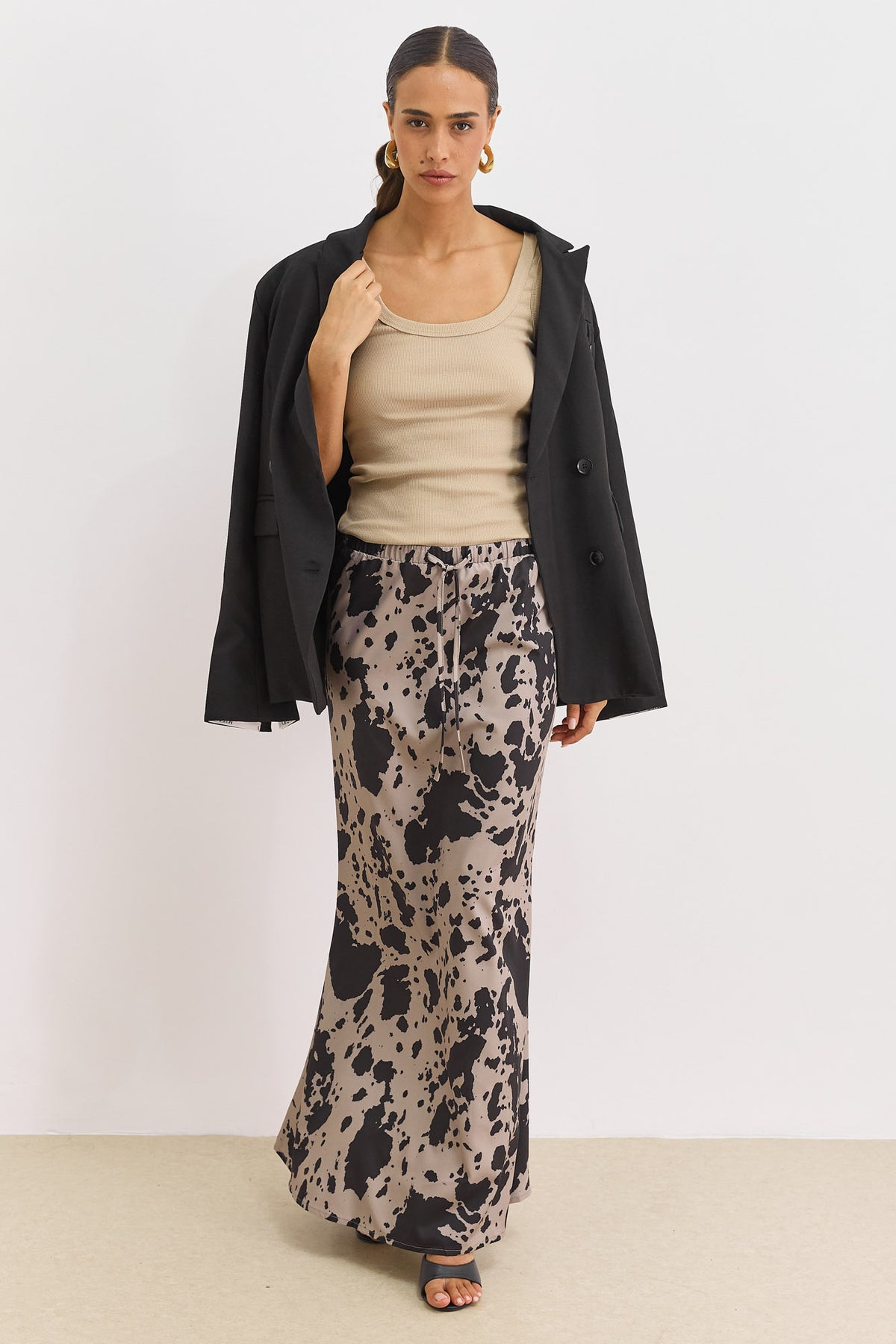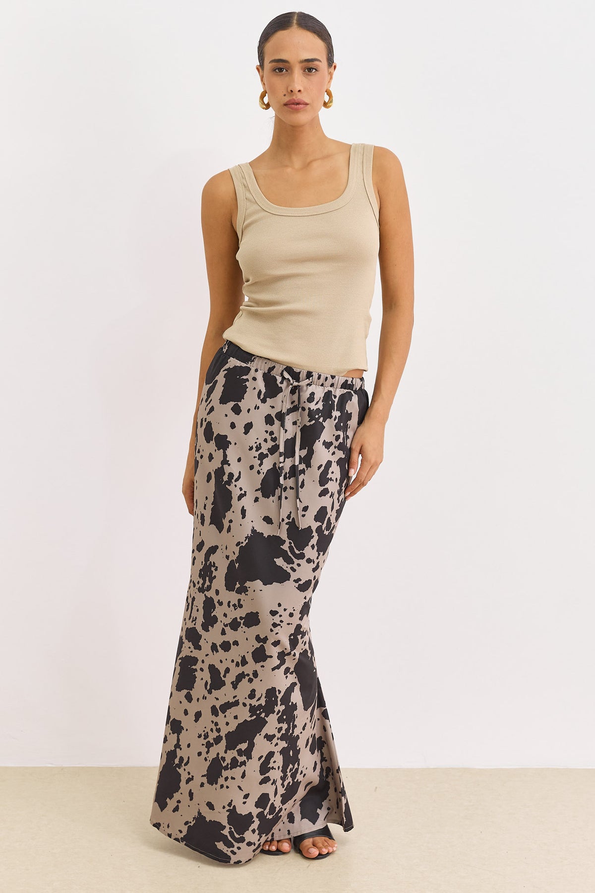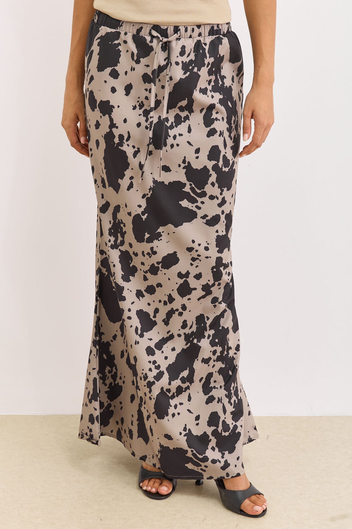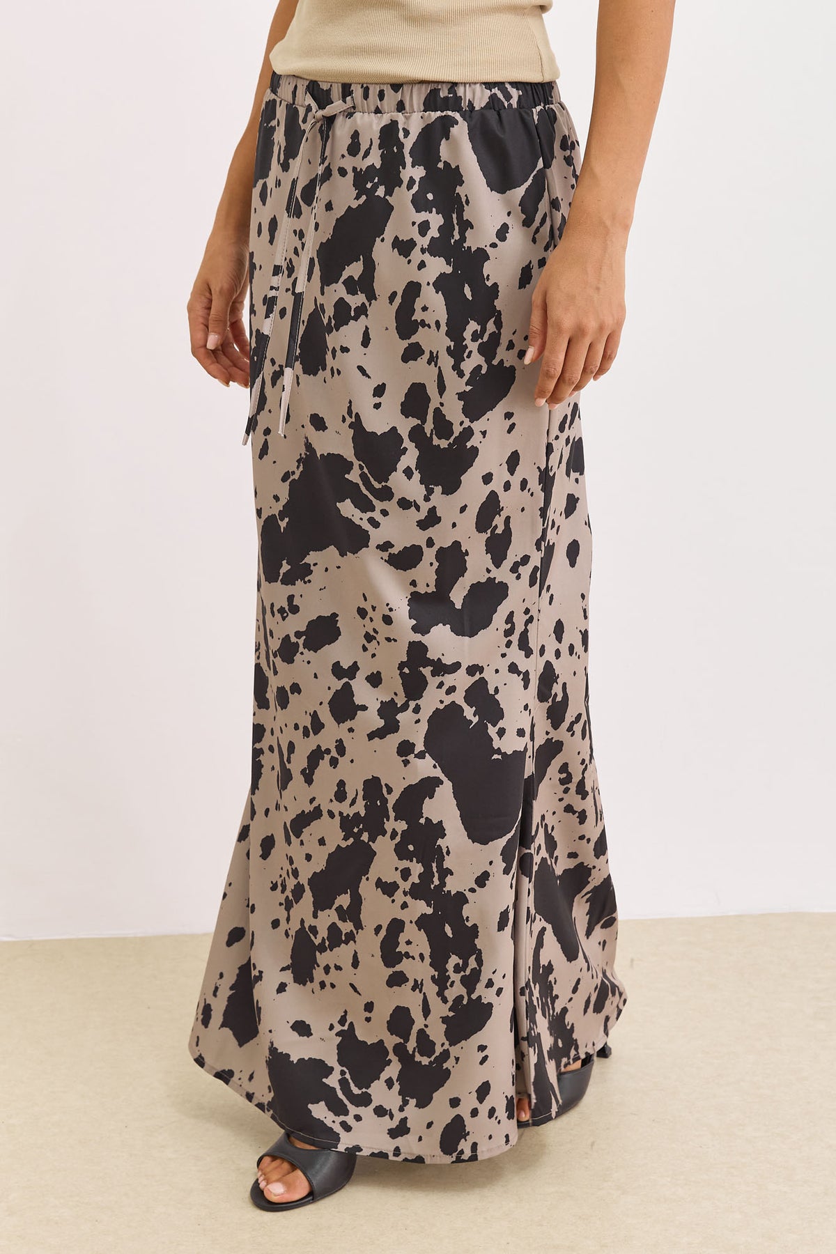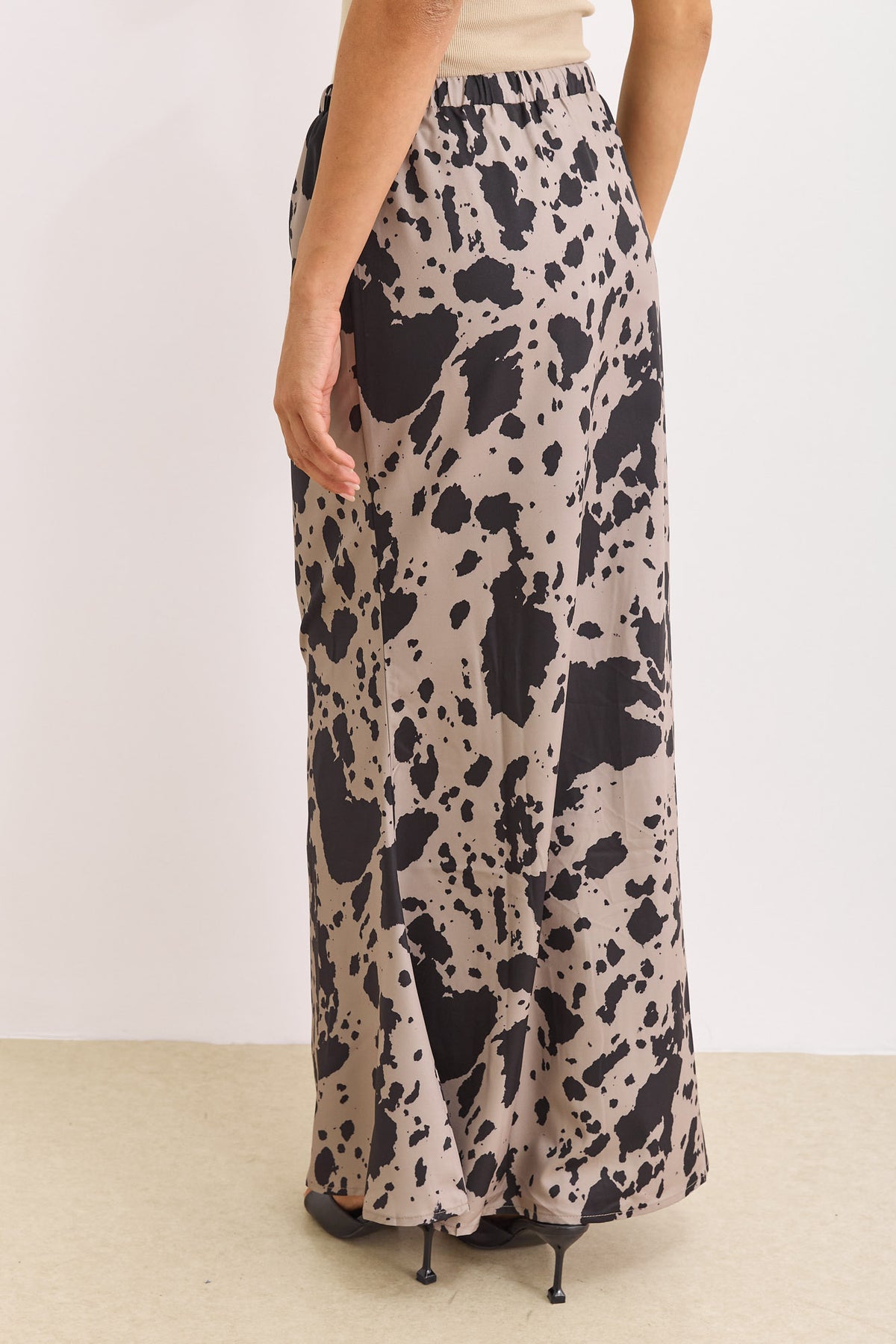 חצאית באורך מקסי בשילוב גומי במותן ופרינט פרה