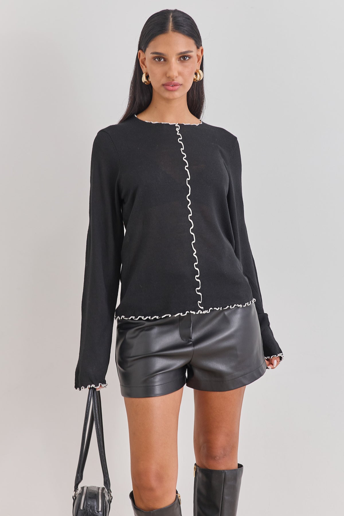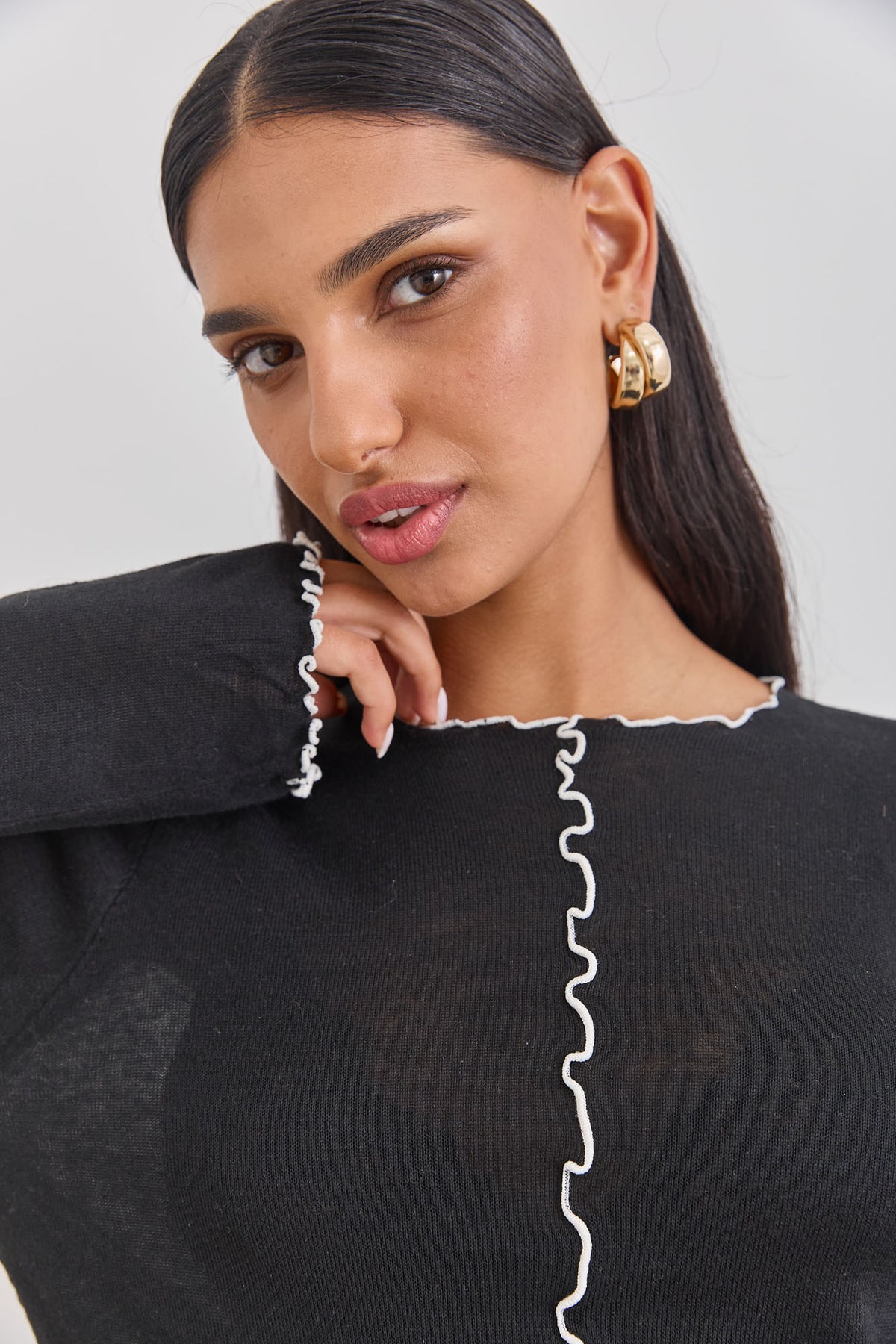 חולצת מדלן עם תיפורים בולטים | שחור/לבן